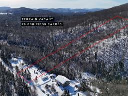 Vast vacant lot of over 76,000 sq. ft. located in Lac-Supérieur, on a quiet cul-de-sac ensuring peace and privacy. The property features mixed topography with a plateau ideal for construction near the road and mountainous terrain at the rear, creating a spectacular natural setting. A stream runs through the property, adding unique charm. Flexible zoning allows for various residential, commercial, or other projects. Located just minutes from the Mont-Blanc ski slopes. GST/QST must be added to the asking price (50995405)