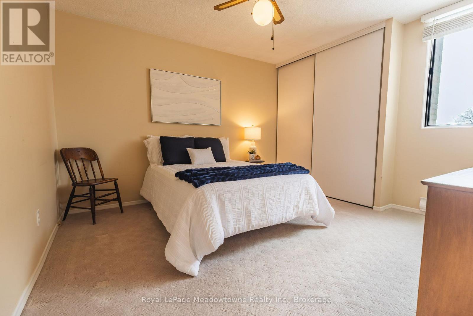 Welcome to 81 Millside Drive. This spacious and bright corner-unit condo on the 6th floor, offers over 1,090 sq. ft. of comfortable living space, ideally located just steps from Milton's vibrant downtown core and the scenic walking trails of Mill Pond. Situated on a quiet, mature street, this well-appointed 3-bedroom, 2-bathroom suite provides exceptional walkability to restaurants, shopping, street festivals, the farmers' market, and parks. The open-concept living and dining area is ideal for entertaining family and friends. The primary bedroom features a private 2-piece ensuite, while two additional generously sized bedrooms offer flexible living space. Enjoy outdoor living on the oversized balcony with stunning sunset and Escarpment views. A separate laundry room provides excellent additional storage and includes a chest freezer. The maintenance fee covers hydro, heat, water, sewage, building insurance and general maintenance. Pet-friendly building with a warm friendly community feel. Amenities include a party and games room. The unit includes one undercover parking space (exclusive use #35) and there is ample visitor and common use parking. This well-maintained building offers easy commuting with quick access to GO Transit and highways 401, 407, and QEW. Recent building upgrades include parking garage renovations (2025), generator and plumbing drain repairs (2025), and balcony railing and roof replacement (2023). (42114116)