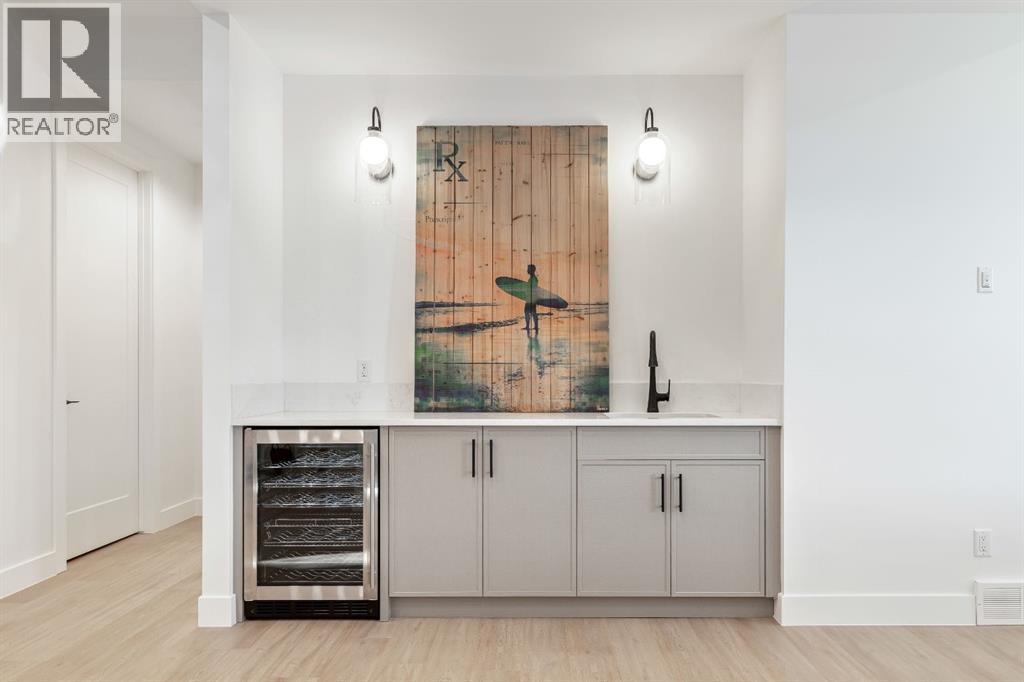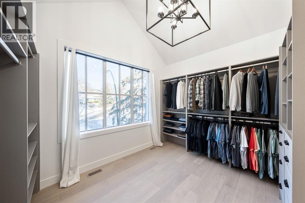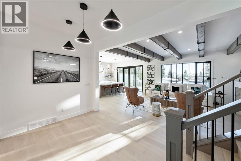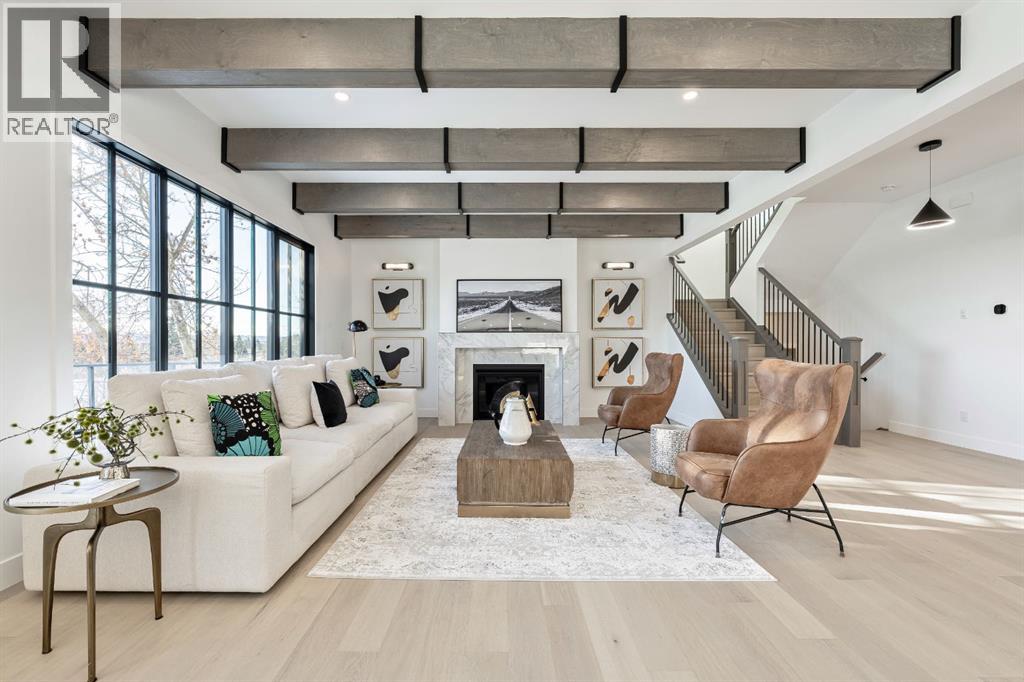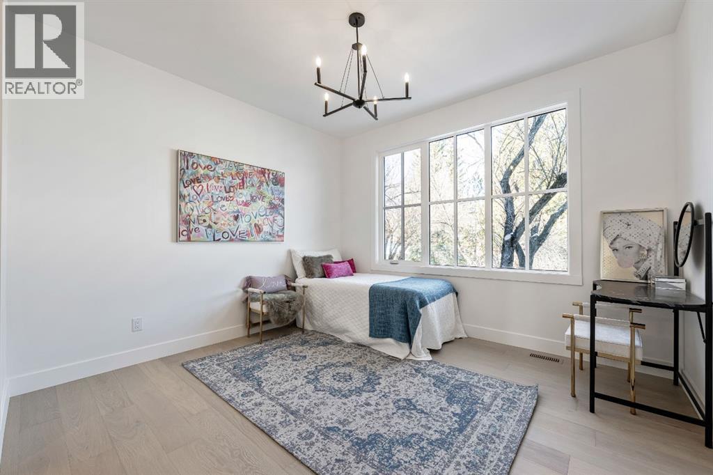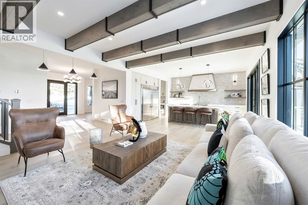 Stunning and unique best describes this modern masterpiece built by Elite Urban Concepts that draws inspirations from the wineries of California with a modern flair that checks all the boxes on one’s wish list. With over 4800 square feet of developed space and a fully finished walkout basement, there is plenty of room for a family, entertaining, working from home or relaxing on the weekends. With an open floor concept, you are immediately welcomed with hardwood floors that are complimented with the tall ceilings adorned with open beams in the living room and, tons of natural light from the abundant black cased windows. A large chef inspired kitchen that features beautiful hood fan as the centerpiece, accented with stainless-steel appliances, a separate butler pantry and, large custom wood cabinets that opens to a massive upper deck overlooking the backyard with a mountain view. Upstairs is perfect for family living with a bonus room that is central to an upper laundry room, two bedrooms and, a primary bedroom all of which have their own ensuites. Yes, you read that right, each upstairs bedroom has its own private ensuite. The primary bedroom is enormous with tons of natural light, vaulted ceilings with open beams, a view of the mountains and, a custom walk-in closet that will accommodate anyone’s needs. The beautifully crafted master ensuite features a spa like experience with large tile, wood accents, a soaker tub and a twinned shower that rivals a high-end hotel. The walkout basement is custom built for entertainment with tall ceilings accented with open beams, a custom-built stylish bar and a huge family room that has double French doors to the lower covered patio and fenced backyard, for that indoor outdoor flow. The additional open style room allows for your home gym that will take advantage of the natural light. The basement mudroom has an abundant amount of storage that leads out to the attached garage. The triple garage is large enough for your vehicles and toys. This beautiful gem in the heart of Charleswood is the perfect location, across from a park overlooked by Nose Hill Park, the location is perfect. (31621869)