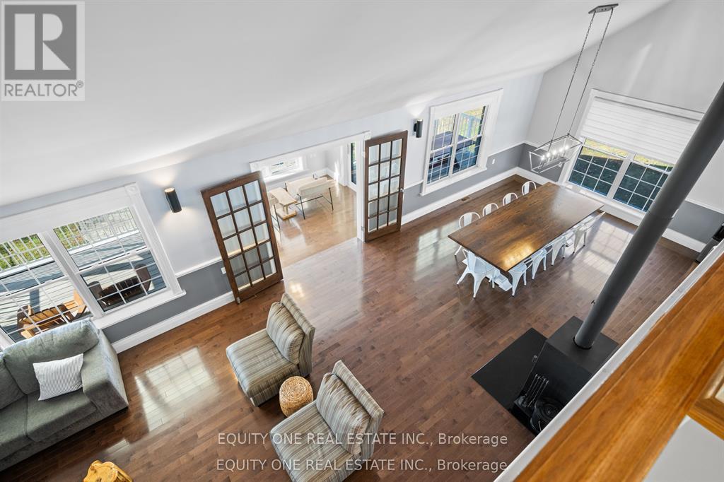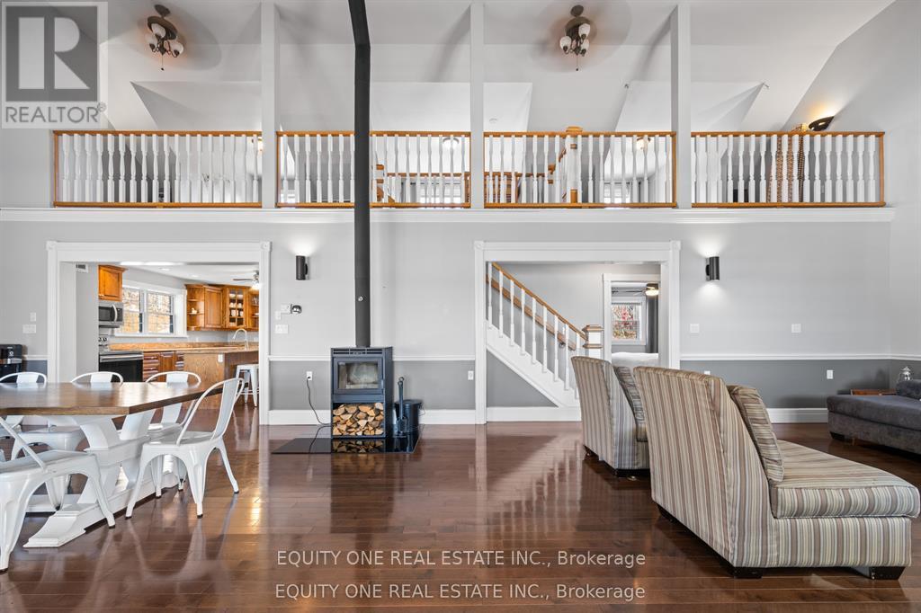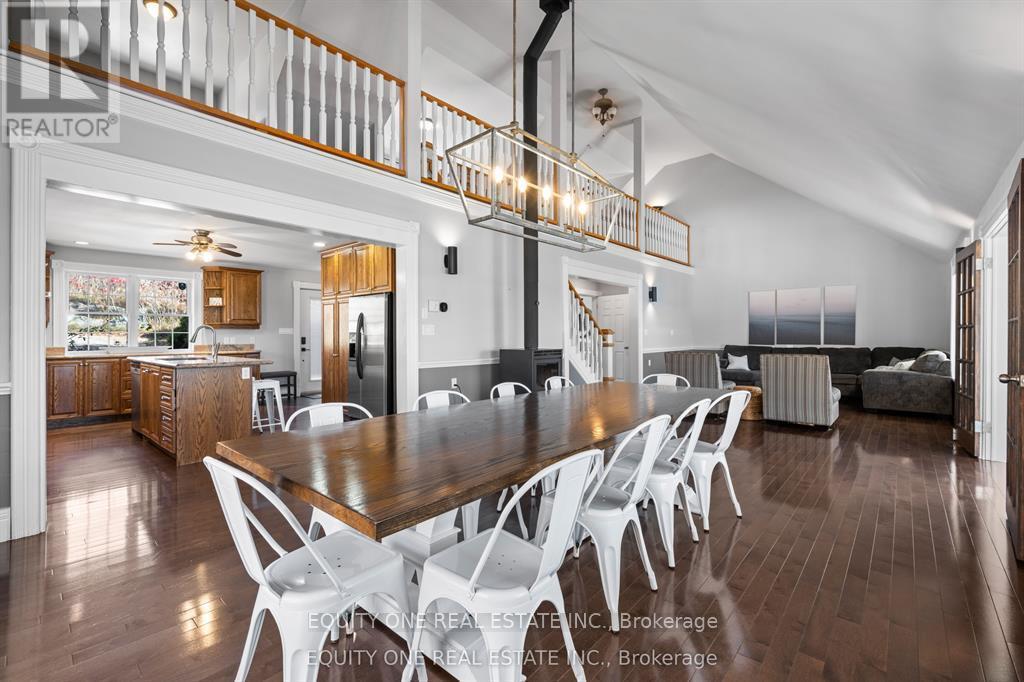 Waterfront retreat with full walk out basement on beautiful Sharbot Lake! Nestled on a 2.9-acre lot, this gorgeous 1 1/2 storey detached home offers the perfect blend of cottage comfort and modern living-with breathtaking panoramic lake views from the back of the house. The main floor features a large kitchen with island, plenty of counter space, and ample cabinetry. The kitchen opens to the dining and living area with soaring ceilings and a high-efficiency wood-burning stove, perfect for cozy winter nights. A main floor primary bedroom and full bathroom provide convenience, while the sunroom overlooking the lake offers the perfect spot to unwind and enjoy the view. Upstairs, the loft includes three semi-private sleeping areas separated by partition walls and overlooking the living area-ideal for guests or family stays.The walk-out lower level features a second kitchen, full bathroom, two bright bedrooms, a family room with gas fireplace, and ample storage. Step outside to the heated inground saltwater pool or head down to the shoreline to swim, paddle, or simply relax by the water. Located just 1 1/2 hours from Ottawa, this property is the perfect year-round retreat-ideal for family gatherings, peaceful getaways, or earning supplemental rental income when you're not there. Working from the lake is also a breeze with high speed fibre Internet. Experience lakeside living at its finest on sought-after Sharbot Lake! Private road fee of $250 per year. (42114165)