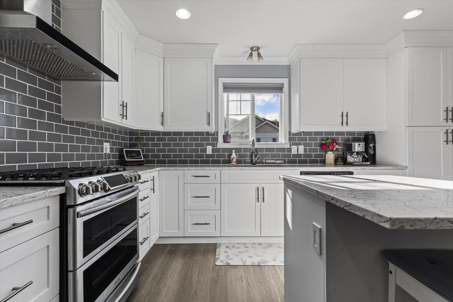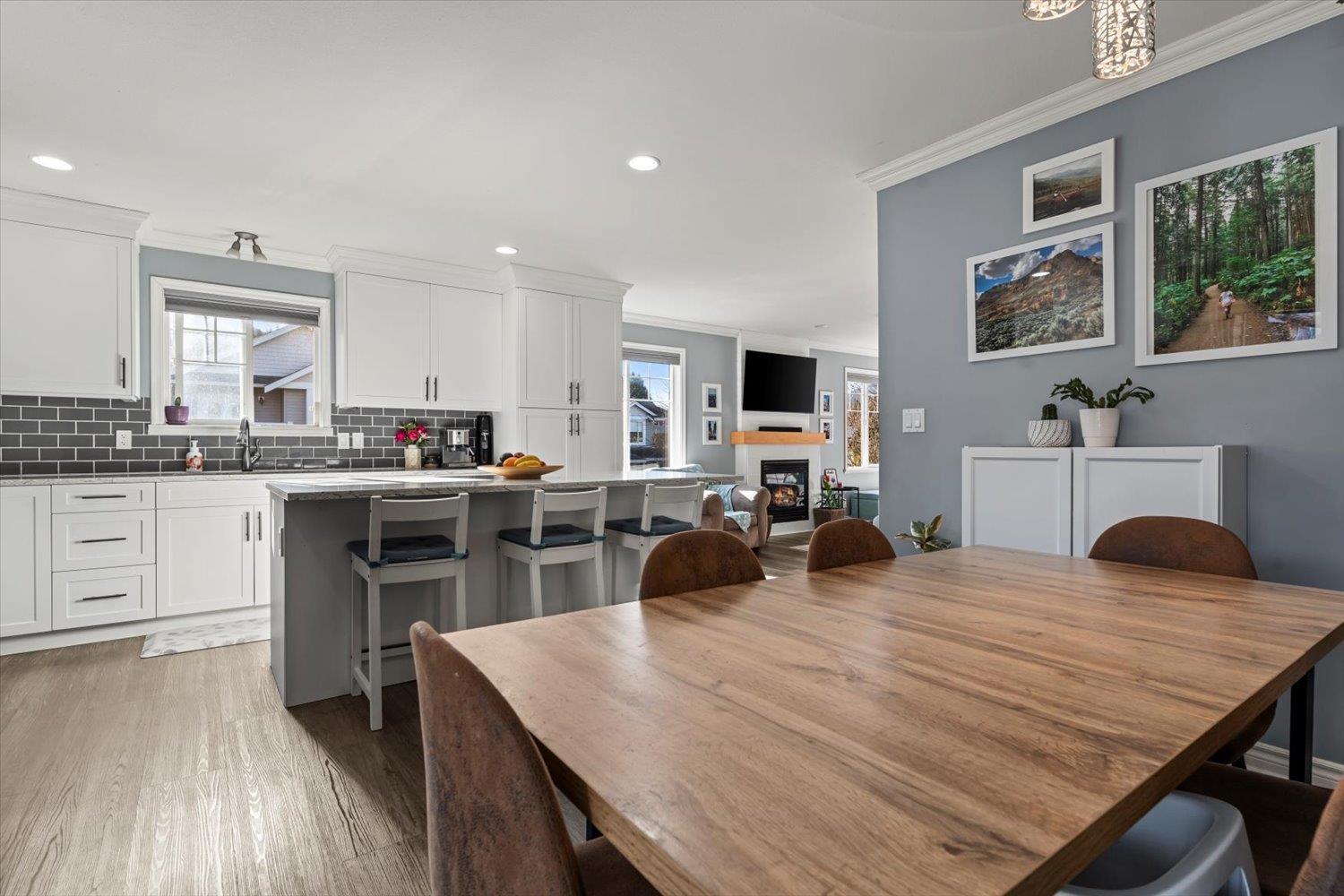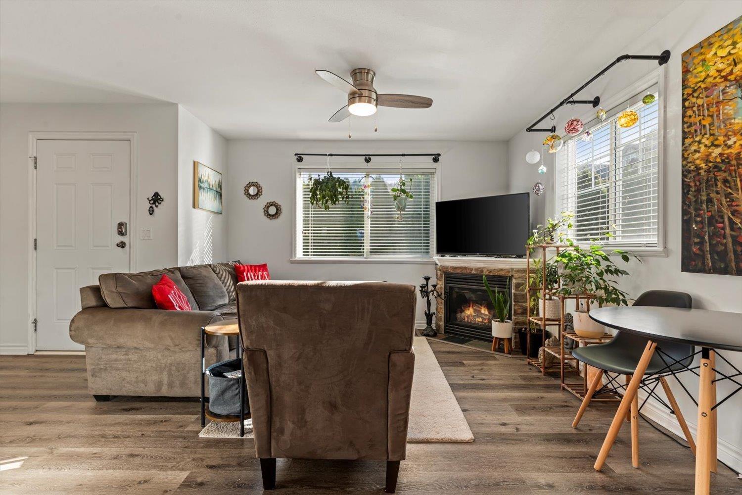 Lovely detached home with ground-level 2 bdrm suite in a quiet, family-friendly neighbourhood. This well cared for home offers thoughtful updates over the years including a newer roof. Upstairs features open concept living, w/ a cozy N/G fireplace and custom mantle, 3 bdrms & 2 full baths. Enjoy the high-end kitchen w/ updated cabinets, large eat-up island, Quartz countertops, SS appliances with a N/G stove, renovated bathrooms, and central A/C. Desirable corner lot with South & East exposure and a functional, wrap around yard"-great for families! Fully self contained 2 bdrm suite, w/ separate entry and warm N/G fireplace, great for in-laws or mortgage helper. Exceptional storage w/ 5ft crawl space. Excellent location close to schools, daycare, amenities & outdoor recreation. (32429258)