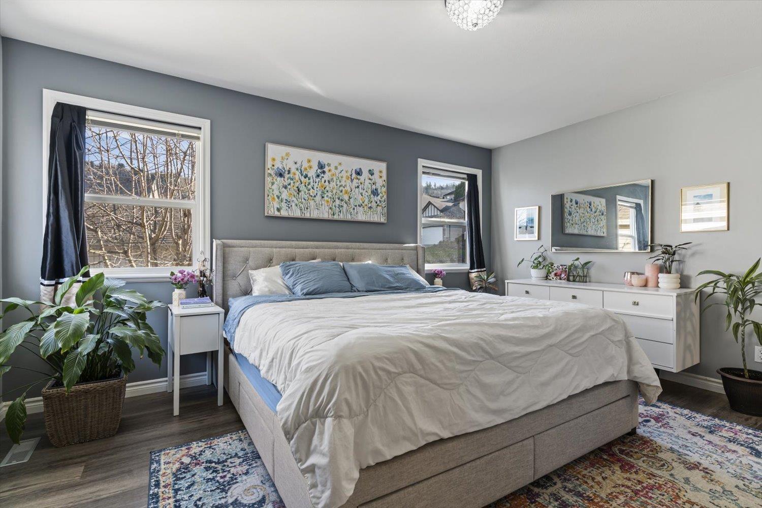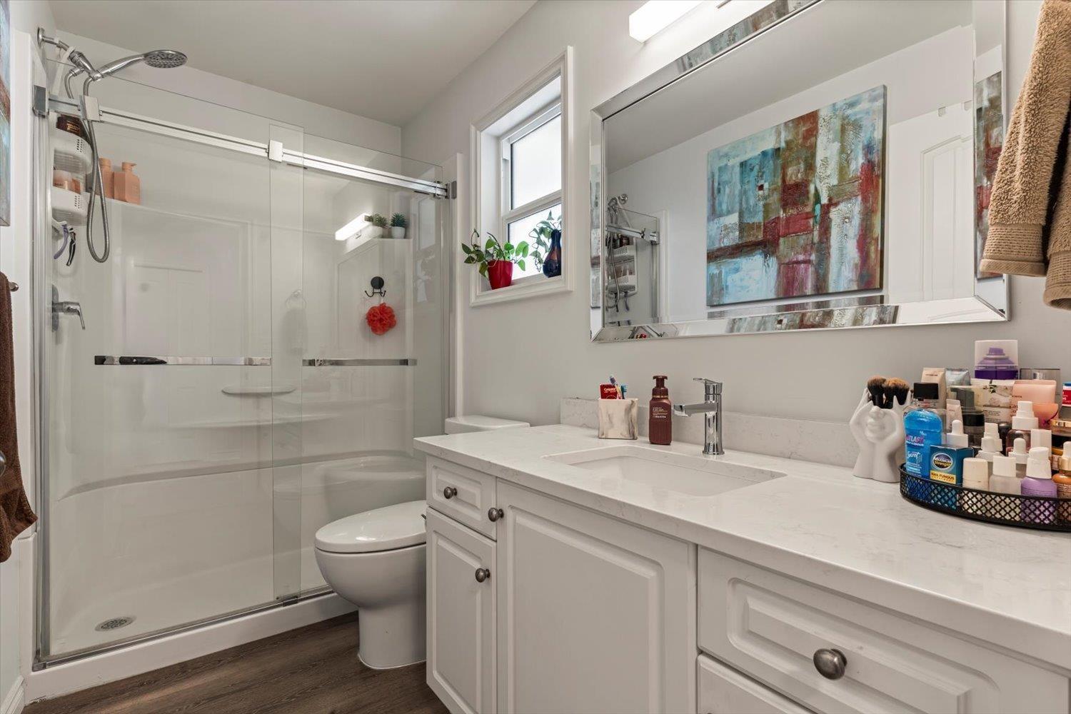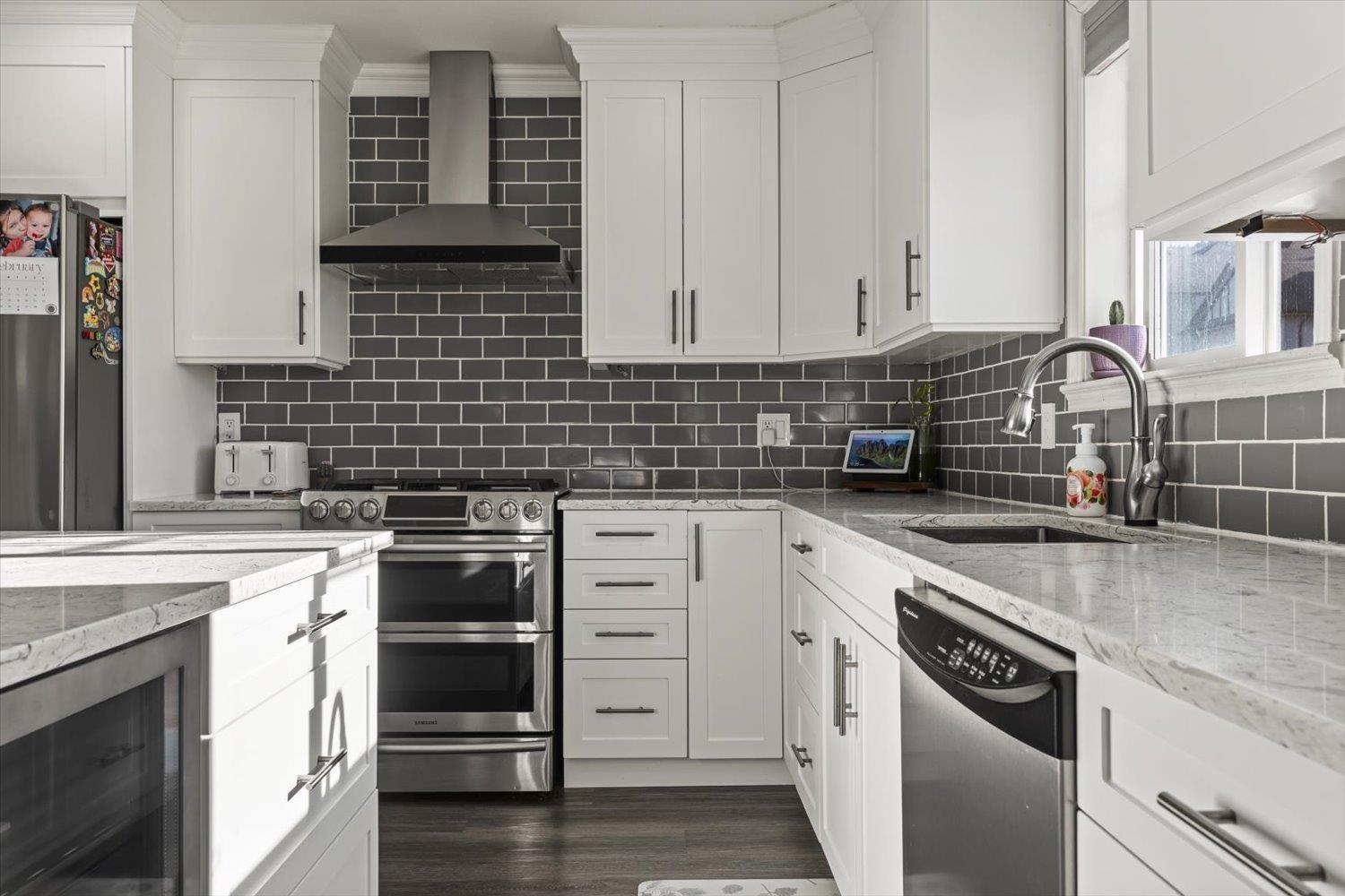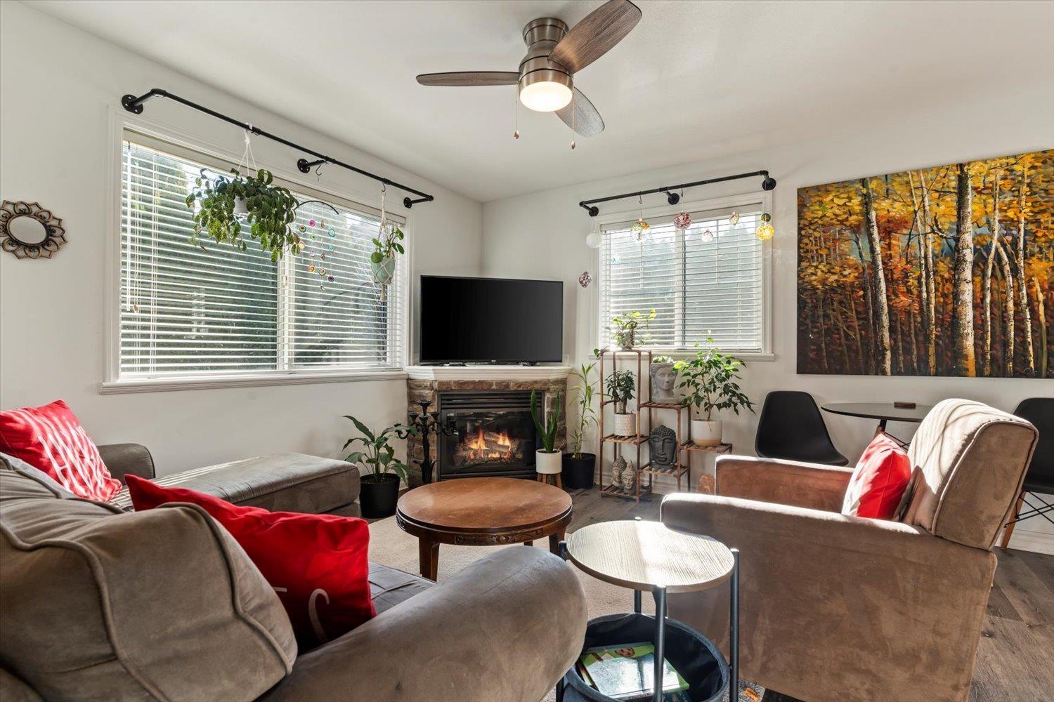 Lovely detached home with ground-level 2 bdrm suite in a quiet, family-friendly neighbourhood. This well cared for home offers thoughtful updates over the years including a newer roof. Upstairs features open concept living, w/ a cozy N/G fireplace and custom mantle, 3 bdrms & 2 full baths. Enjoy the high-end kitchen w/ updated cabinets, large eat-up island, Quartz countertops, SS appliances with a N/G stove, renovated bathrooms, and central A/C. Desirable corner lot with South & East exposure and a functional, wrap around yard"-great for families! Fully self contained 2 bdrm suite, w/ separate entry and warm N/G fireplace, great for in-laws or mortgage helper. Exceptional storage w/ 5ft crawl space. Excellent location close to schools, daycare, amenities & outdoor recreation. (32429258)