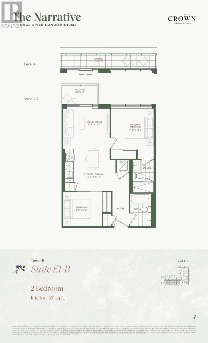 Welcome to The Narrative Condos, located in the highly sought-after Rouge community of Toronto. Presenting the stunning E1B model: a brand new 651 sq. ft. 2-bedroom, 2-bathroom condo complete with parking and a storage locker, right in the heart of Rouge!Your quest for the ideal combination of city convenience and natural beauty ends here. This modern luxury suite offers an upscale living experience, surrounded by serene ravines, lush parks, scenic nature trails, and the beautiful shores of Lake Ontario-all while being just minutes away from Highways 401 and 407, TTC and GO Transit, as well as vibrant shopping areas, banks, healthcare facilities, and everyday necessities.Enjoy exceptional building amenities, including a wellness center with weight and cardio equipment, a yoga studio, a children's play area, a party room, a games room, and an outdoor terrace equipped with BBQs (42114193)
