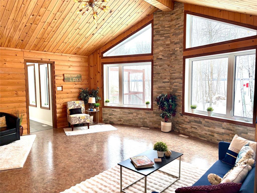 R28//Lac Du Bonnet RM/Waterfront living on the scenic Lee River! This 1510 sqft custom-built, 4-season home (2016) sits on a beautifully landscaped 0.54-acre lot with 130 of water frontage and stunning sunrise views. Quality construction throughout with R60 attic insulation, ICF crawlspace, triple-pane windows, solid doors, and 2x6 walls. Bright open-concept layout features pine vaulted ceilings, log accents, quartz rock feature wall, and a chef s kitchen with Kitchen Craft cabinetry, pantry, and Jenn-Air convection range with island downdraft venting. Primary suite offers walk-in closet and ensuite bath. Includes a private guest mini-suite with separate entrance, deck, living area, bedroom, and bath perfect for family or guests. Enjoy two expansive river-view decks, fire pit, garden beds, 30A RV plug, shed, and gentle slope to the water. Concrete piled foundation, low-maintenance exterior, central air, HRV, high-efficiency furnace, and fresh updates make this a move-in-ready riverside retreat! View now with the 360 Tour! Quick Possession Available (231943968)