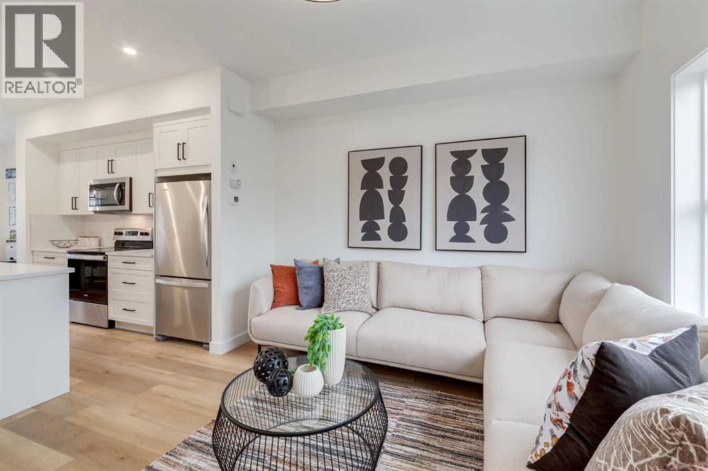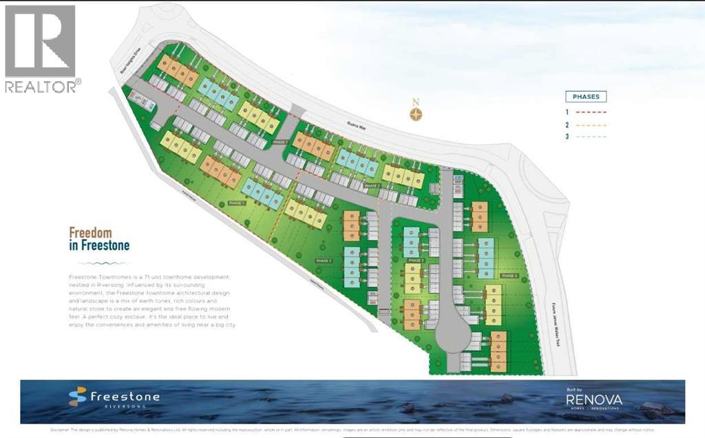WALKOUT UNIT with BRIGHT SPRAWLING EAST VIEWS! NEW HOME WARRANTY INCLUDED and could offer a GST REBATE FOR QUALIFIED BUYERS. This walkout townhome unit offers BRIGHT SPRAWLING EAST VIEWS right from your FULL WIDTH back deck. Step inside to a bright, airy main floor featuring a MODERN OPEN-CONCEPT LAYOUT that is both stylish and functional. At the heart of the home is a SLEEK CONTEMPORARY KITCHEN with QUARTZ COUNTERTOPS, MATTE BLACK HARDWARE, WHIRLPOOL STAINLESS STEEL APPLIANCES, SOFT-CLOSE CABINETRY, and a CENTRAL ISLAND WITH SEATING, ideal for casual dining or entertaining. The kitchen flows seamlessly into the dining and living areas, where LARGE WINDOWS and LUXURY VINYL PLANK FLOORING create a bright and inviting atmosphere. A POWDER ROOM and a DEDICATED MUDROOM off the back entrance provide added convenience and organization for daily living. Upstairs, the SPACIOUS PRIMARY BEDROOM includes a WALK-IN CLOSET and a PRIVATE 3-PIECE ENSUITE. Two additional bedrooms offer flexible space for children, guests, or a home office. A FULL 4-PIECE BATHROOM and a CENTRALLY LOCATED LAUNDRY area make busy routines easier and more efficient. The unfinished basement provides exciting potential for future development, additional storage, or a customized space that fits your lifestyle. Designed with comfort and sustainability in mind, the home includes DUAL-PANE WINDOWS, a HIGH-EFFICIENCY HVAC SYSTEM, and an HRV UNIT for consistent comfort and performance year-round. Outside, you can relax on your FULL WIDTH DECK, LOWER LEVEL POURED PATIO or enjoy a quiet morning on the COVERED FRONT PORCH. This unit also comes with a FENCED BACKYARD, perfect for kids, pets, or both! Two ASSIGNED PARKING STALLS add convenience, and with LANDSCAPING AND SNOW REMOVAL INCLUDED, this property offers truly LOW-MAINTENANCE LIVING. Located in the well-established community of RIVERSONG, you are just minutes from SCHOOLS, SCENIC WALKING PATHS, PARKS, CO-OP and the SPRAY LAKE SAWMILLS FAMILY SPORTS CENTRE. Quick access to Highway 1 and 22 makes it easy to reach CALGARY or escape to the MOUNTAINS for a weekend getaway. With QUALITY FINISHES, a SMART LAYOUT, and a VIBRANT NEIGHBORHOOD, this home is designed for modern, comfortable living. The FREESTONE SHOWHOME AT 525 RIVER HEIGHTS DRIVE is open on WEEKENDS from 12 – 5pm! Photos are taken from the Showhome and do not reflect the property as this home is still under construction* WANT TO SEE THIS LAYOUT IN PERSON - HEAD TO THE SHOWOME 525 River Heights Drive TO TOUR THE SHOWHOME DESIGN. (31624117)