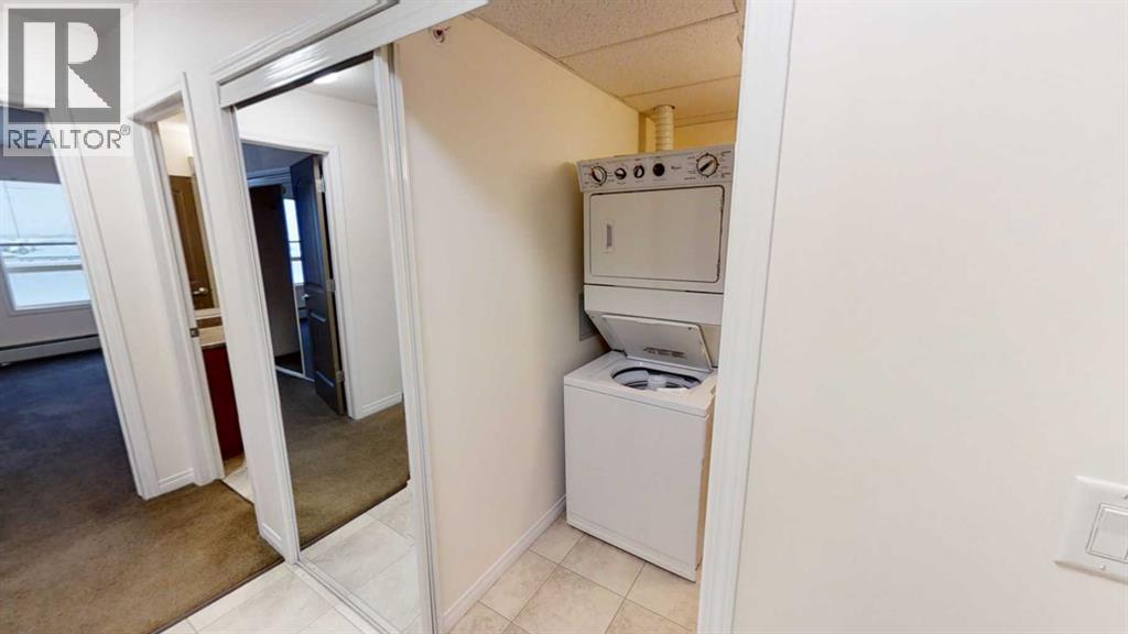 Investor Alert! 1 bedroom +den, 1 bathroom condo located on the top floor in Aurora Estates. Kitchen, living and dining area are all open and bright. Large sliding doors off the living room for extra natural light leading on to a large deck with BBQ hook ups. French doors off the living area lead to the den with a walk in closet. Spacious bedroom, full bathroom and private in-suite laundry complete this unit. 1 heated underground parking stall. Also access to the onsite gym. Heat and water included in condo fee. Currently tenant occupied until Feb 28, 2027. (31626168)