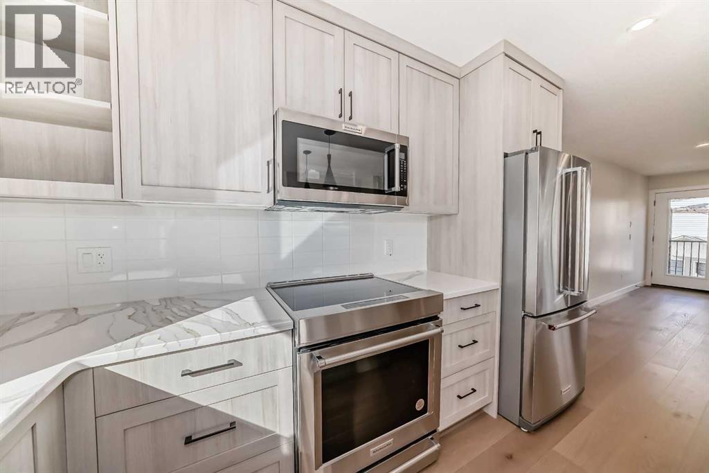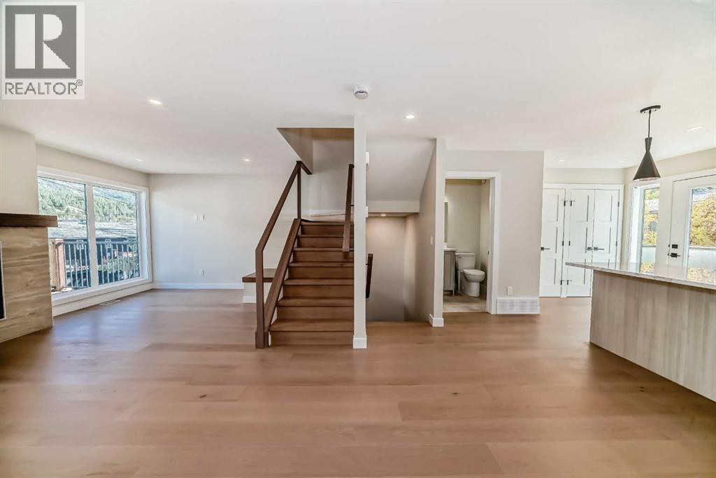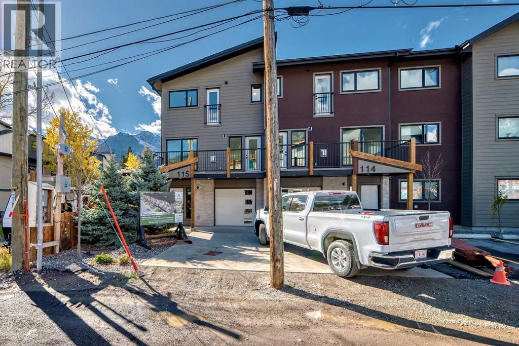 DOWN TO LAST INVENTORY - Bald Eagle Peak Chalets offers a limited collection of brand-new 4 bedroom, 3.5 bath townhomes in one of Canmore’s most walkable and evolving neighborhoods. Designed for real life, these homes balance smart layouts, quality finishes, and long-term livability in the heart of TeePee Town.Unit 115 is a standout value within the project. It delivers a full 4 bedroom, 3.5 bath layout, an attached garage, dedicated storage, and private outdoor space, making it a rare opportunity in the Canmore market for buyers looking for new construction without paying a premium.The main level features a bright great room with a gas fireplace, a well-appointed kitchen with a large island, and a comfortable dining area that works well for both everyday living and hosting. Large windows bring in strong natural light and mountain views, creating a warm and inviting space. A convenient half bath and direct access to outdoor areas complete the main floor.Upstairs, you’ll find 3 bedrooms and 2 full baths, including a comfortable primary suite with a spa-inspired ensuite and generous closet space. The lower level adds a versatile 4th bedroom with its own bath, ideal for guests, extended family, or future rental potential pending town approval.Every home includes a private yard, ample interior storage, an attached garage, and a dedicated gear storage room for bikes, skis, and all your mountain equipment.Located steps from Main Street, cafés, restaurants, shops, trails, and parks, Bald Eagle Peak Chalets offers excellent walkability and long-term value as TeePee Town continues its revitalization. First-time buyers may also qualify for the GST rebate.With only a few units remaining, this is a compelling opportunity to secure a brand-new 4 bedroom townhome in Canmore. Inquire today for a complete buyer package and private showing. (31626745)