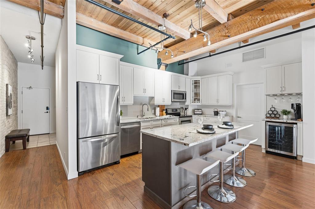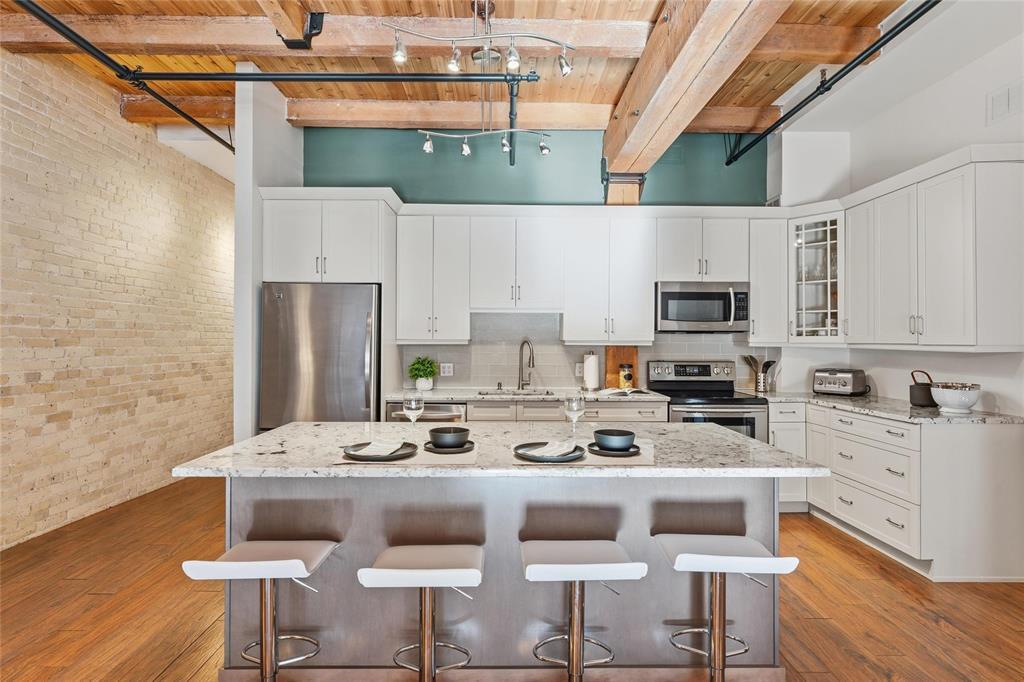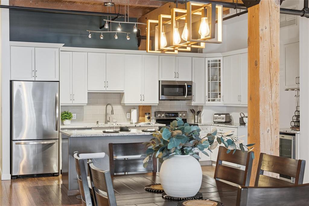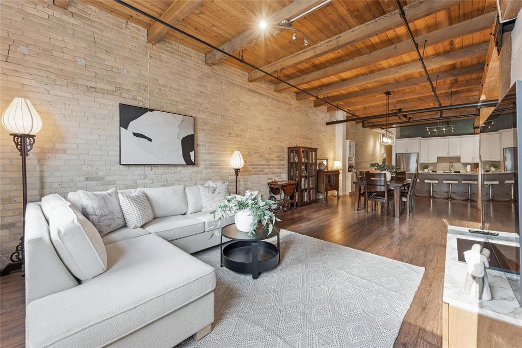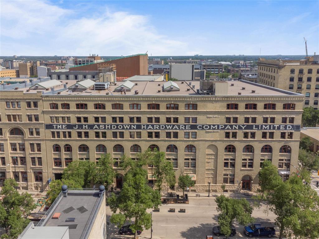 9A//Winnipeg/Looking for space?This expansive Loft condo has almost 1800sq ft on one level and will not disappoint!One of only 5 of the largest units out of 100 condos in the ever so popular Ashdown Warehouse!Located in the heart of the Exchange District this well established condo corp since 1987. South facing and absolutely flooded with light as there are 4 large South facing windows to let the sun shine in! Incredible downtown views! Gorgeous walls of reclaimed brick! Beautiful upgrades throughout this condo! Kitchen has been completely redone and expanded with tons of cabinet space and a huge Island with gorgeous granite! Lots of nice custom touches everywhere such as a coffee bar and a wine bar area with wine fridge! Unique custom cedar ceiling for added aesthetic,additional sound barrier plus enhances the "Loft" feel and accentuates the massive Fir beams! The primary bedroom is bright and sunny with a walkthrough closet/closet systems leading to an ensuite bath*.Second extra large bedroom and bath! Wood floors throughout! Oversized underground heated parking and heat included in condo fees! Pet friendly building! This is one condo you need to come and see for yourself! Check out the video!! (231944005)