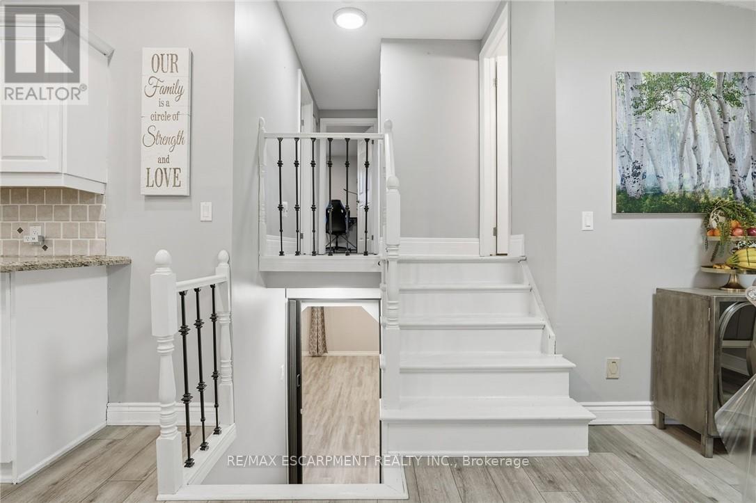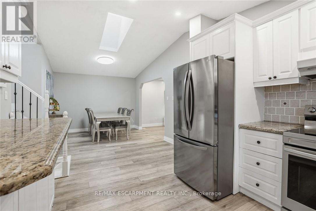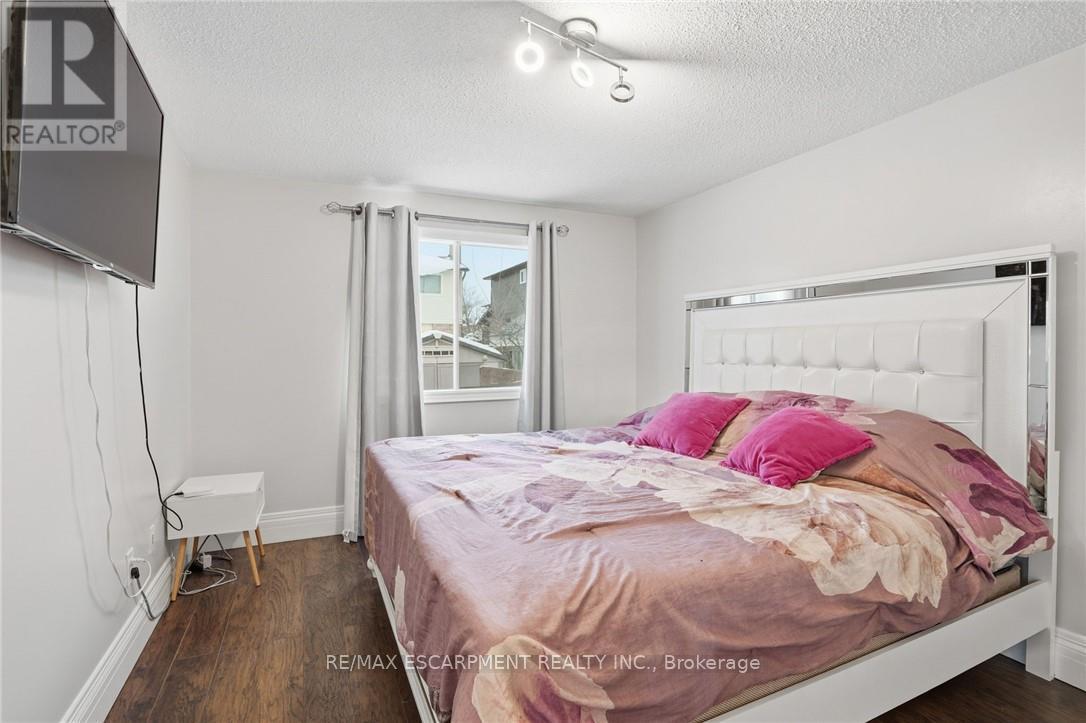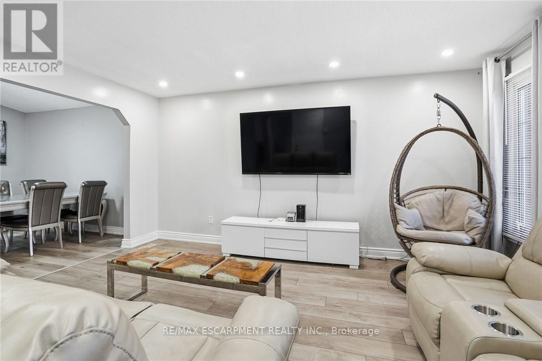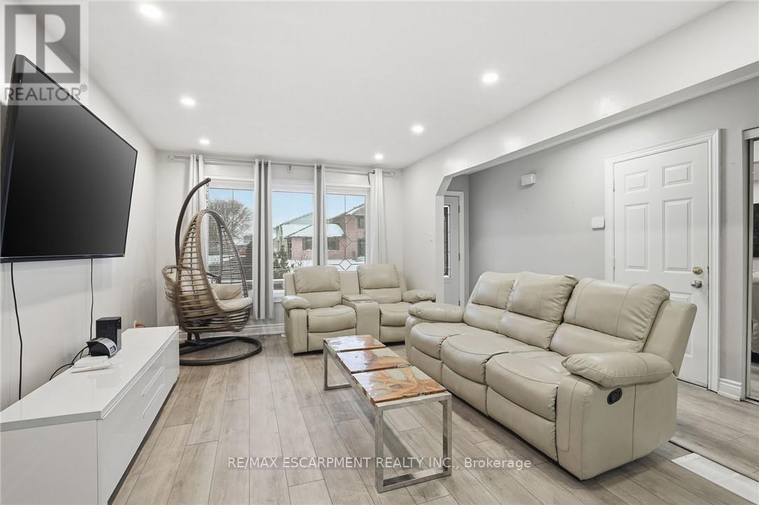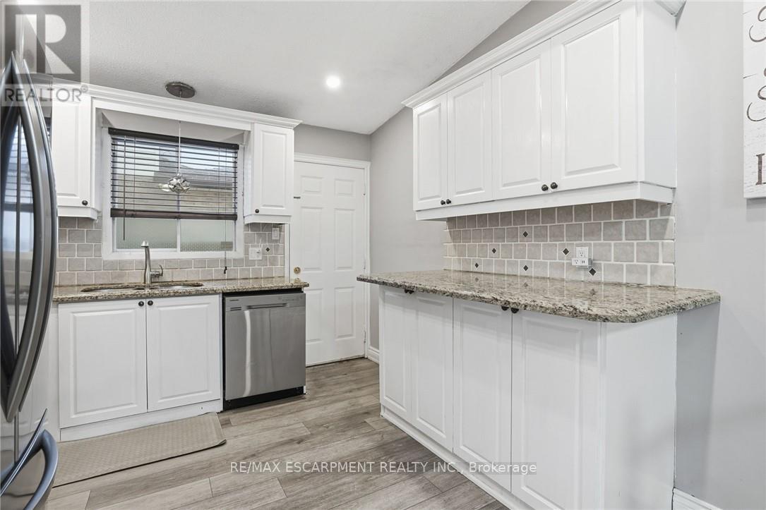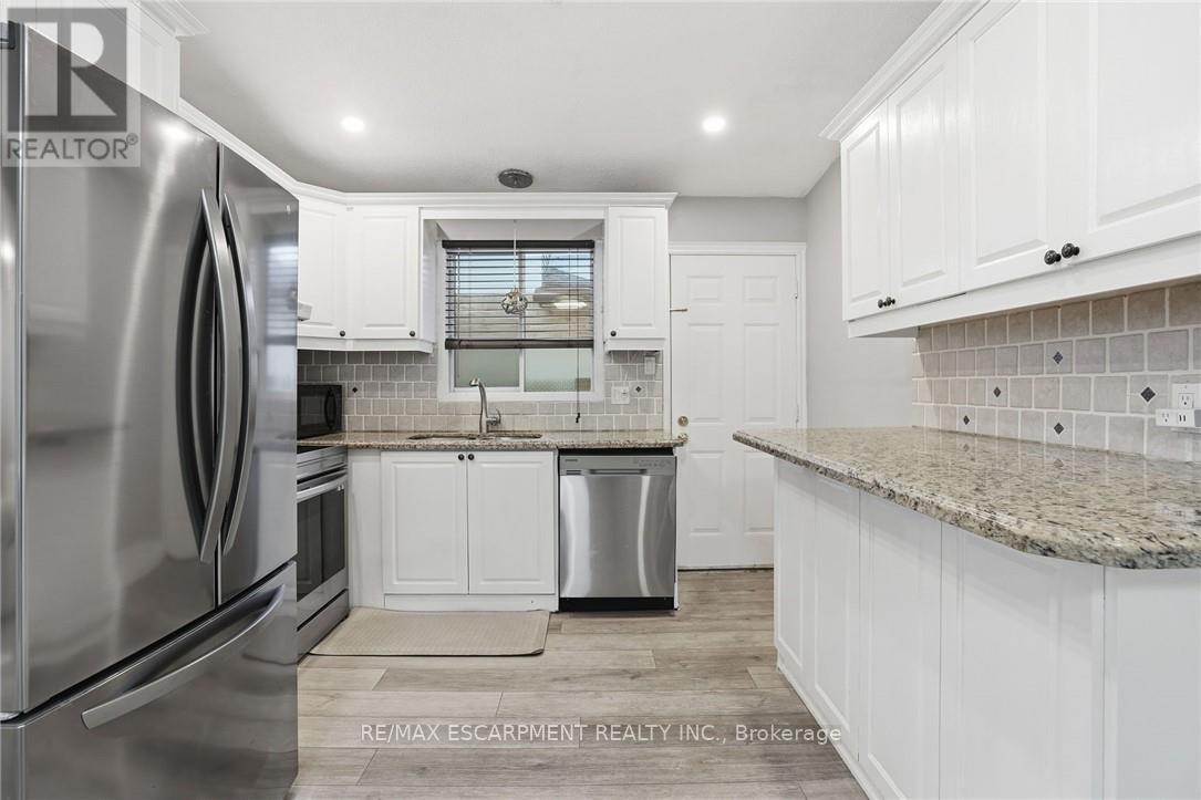 Welcome to this beautifully maintained 4-level backsplit, ideally situated in the highly sought-after community of Stoney Creek. Offering approximately 2,300 sq ft of finished living space, this home is perfectly suited for large or growing families. Step inside to discover a bright and airy main floor featuring an open-concept living and dining area-ideal for entertaining. The spacious kitchen is both stylish and functional, complete with granite countertops and brand new stainless steel appliances (2023). Upstairs, you'll find a generous primary bedroom, two additional well-sized bedrooms, and a full 4-piece bath. The lower level boasts a large family room that can easily be transformed into a luxurious primary suite, complete with its own 3-piece bathroom. Descend to the fully finished basement where you'll find a versatile rec room- perfect for a games area, home office, or even a 4th bedroom with double closets. This level also includes a dedicated laundry room, cold storage, and additional space for all your storage needs. The private backyard is a serene retreat, featuring a covered deck-perfect for enjoying your morning coffee or hosting evening gatherings. A double-wide driveway provides ample parking for up to 6 vehicles. Recent updates in 2022: screen doors, garage door with automatic opener, flooring on the main and lower levels, Central air unit & backyard deck. New stainless steel appliances 2023. Location is everything: Just minutes to major highways, and within close proximity to shopping, dining, movie theatres, parks, and excellent schools. Don't miss your opportunity to call this wonderful home your own. (42116002)