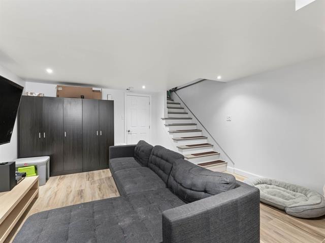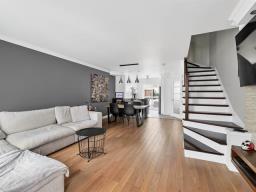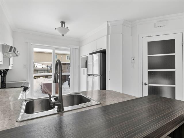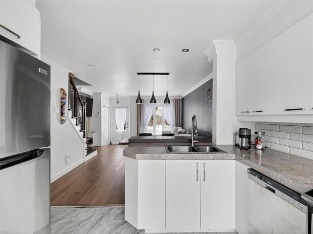 Stunning two-story townhouse offering 3 bedrooms, 1 bathroom, and 1 powder room. The open-concept main floor features hardwood floors, abundant natural light, and modern décor, enhanced by an electric fireplace in the living room. Upstairs, you'll find good-sized bedrooms and a bathroom with a separate shower. The property boasts a fenced yard with a private patio and parking for two vehicles. A bus stop is 600 meters away, and schools, a CEGEP, a college, a golf course, a theatre, an ecological park, and a municipal beach are all within a 10-minute walk. (47570538)