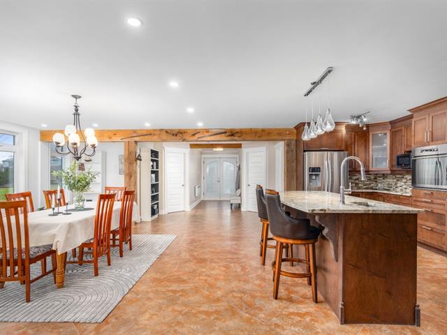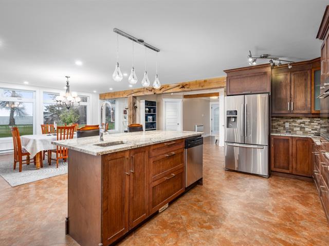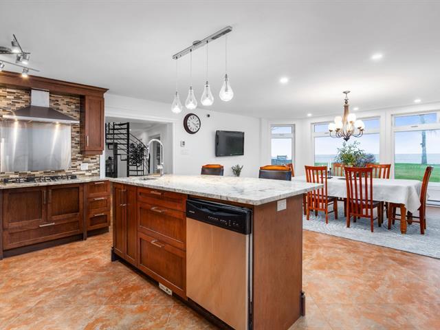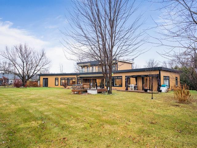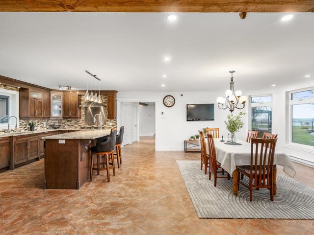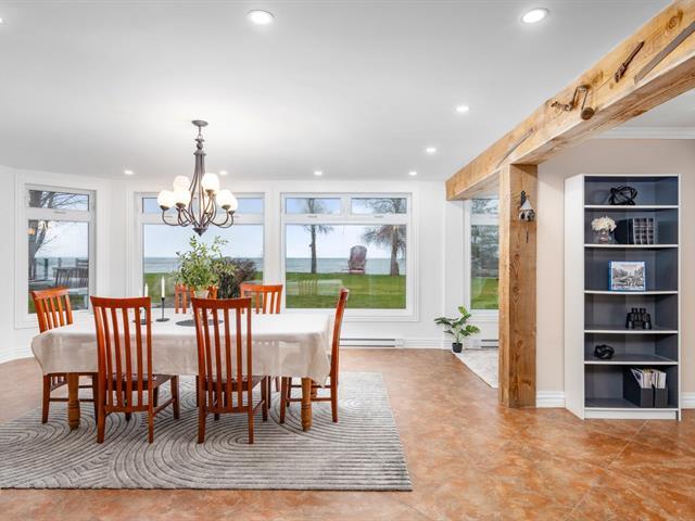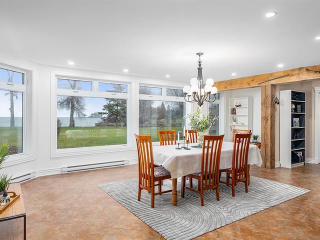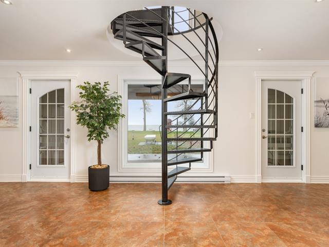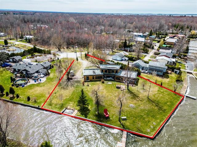 Exceptional property on the shores of Lake Saint-François, boasting over 40,000 sq ft of land and an impressive waterfront. This unique residence offers 5 bedrooms, with the potential for a multi-generational living space or guest suite, and features designed for comfort and relaxation: heated floors, a bar, a propane fireplace, a spa, and a sauna. Rooftop terraces, offering spectacular panoramic views of the lake, complete this incomparable living environment. A rare find, combining luxury, privacy, and quality waterfront living. (51983764)
