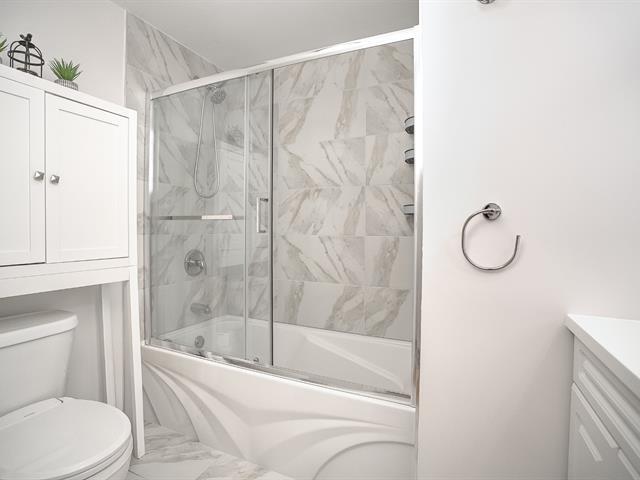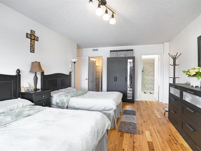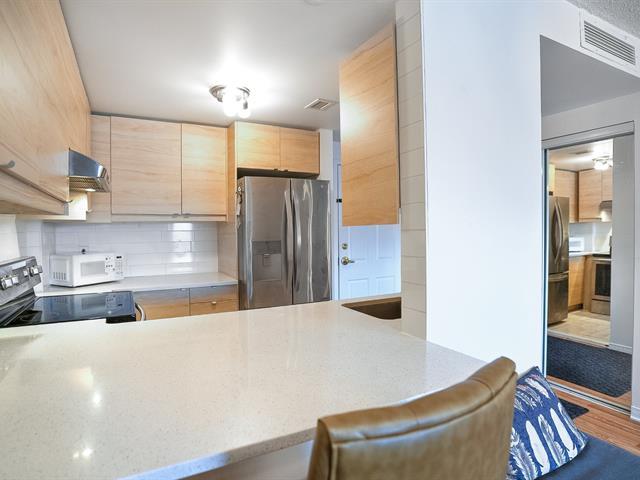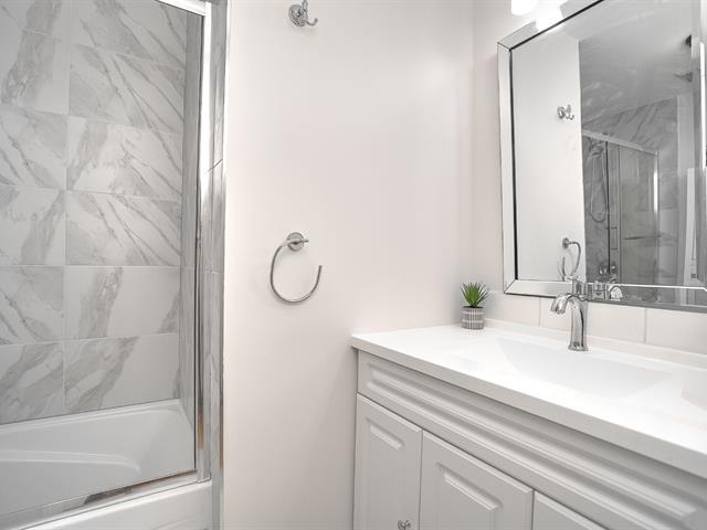 This magnificent corner condo, renovated with modern finishes (kitchen, hardwood floors, bathrooms), offers nearly 1,100 square feet. It includes two bedrooms, two bathrooms (one ensuite with a walk-in closet), central air conditioning, two balconies, a garage with a storage locker, and a building with a generator, gym, reception room, and visitor parking. Ideally located near Fairview, the REM, buses, and a park, it's a true gem ready to welcome you! (44251875)