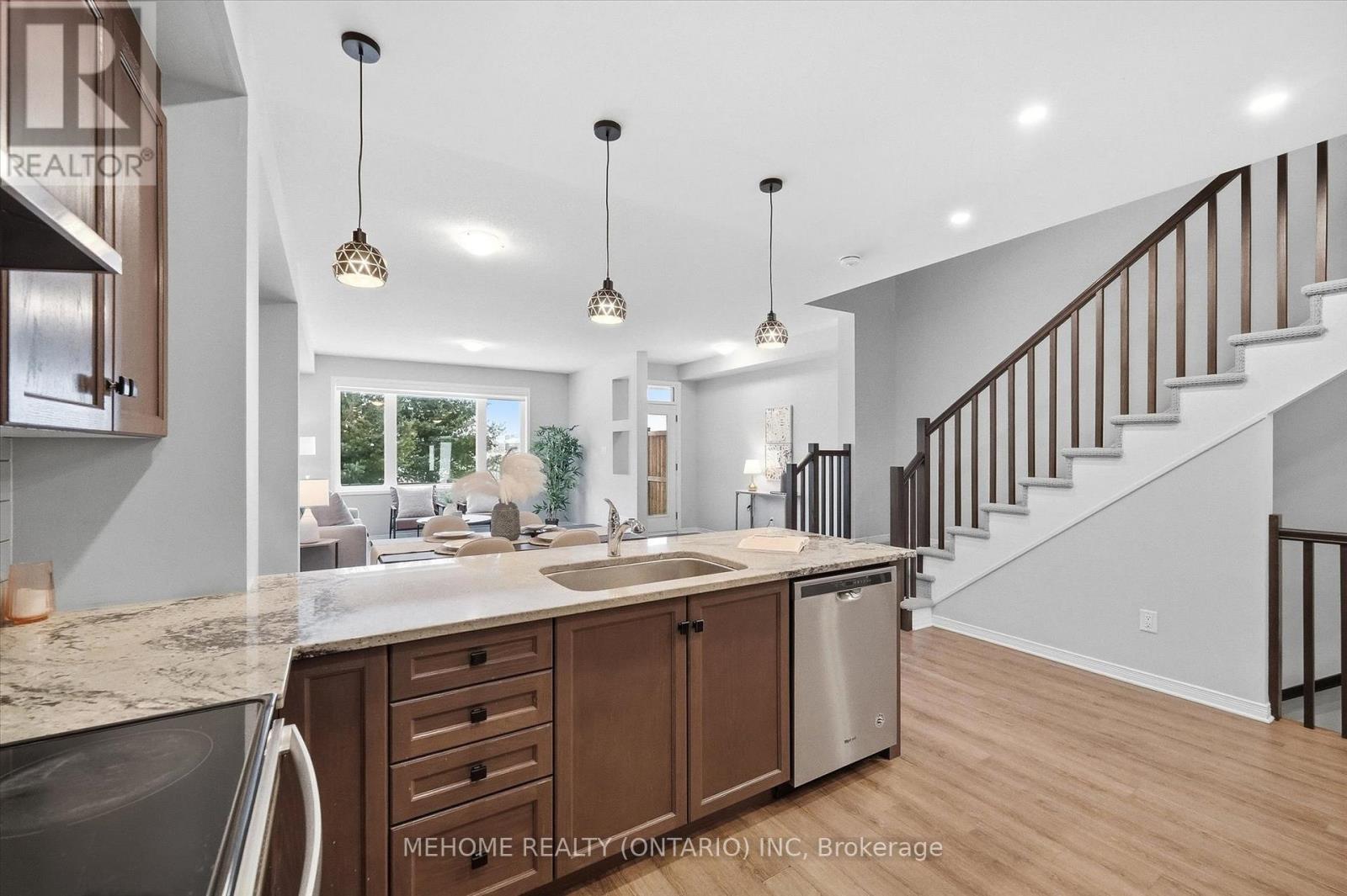 Stunning Cardel Townhome Backing onto a Pond - No Rear Neighbours!This beautifully maintained Cardel townhome offers approximately 2,200 sq. ft. of stylish and functional living space, featuring 3 spacious bedrooms and 4 bathrooms in a highly desirable family-friendly community.The main floor impresses with 9-foot ceilings, expansive windows, and an abundance of natural light, creating a bright and airy ambiance throughout. The open-concept design flows effortlessly between living and dining areas into a sophisticated kitchen, showcasing a large island with granite countertops, stainless-steel appliances, ceramic tile, and a walk-in pantry. Designed for both everyday living and stylish entertaining, this space is as functional as it is inviting.Upstairs, the expansive primary suite features large windows overlooking the pond, a spacious walk-in closet, and a luxurious 5-piece ensuite with double sinks, a glass shower, and a relaxing soaker tub. Two additional generously sized bedrooms, a full bathroom, and second-floor laundry add everyday convenience. Central vacuum rough-ins are thoughtfully pre-installed for added future convenience.The builder-finished basement extends the living space with a versatile recreation area ideal for a home office, gym, or media lounge, complemented by ample storage and a full bathroom, offering excellent flexibility for guests or multigenerational living.Enjoy peaceful outdoor living with no rear neighbours and direct pond views, offering privacy and a serene natural backdrop year-round.Perfectly located near parks, quality schools, shopping, and transit, this move-in-ready home combines modern comfort, thoughtful upgrades, and an unbeatable setting. (42117362)