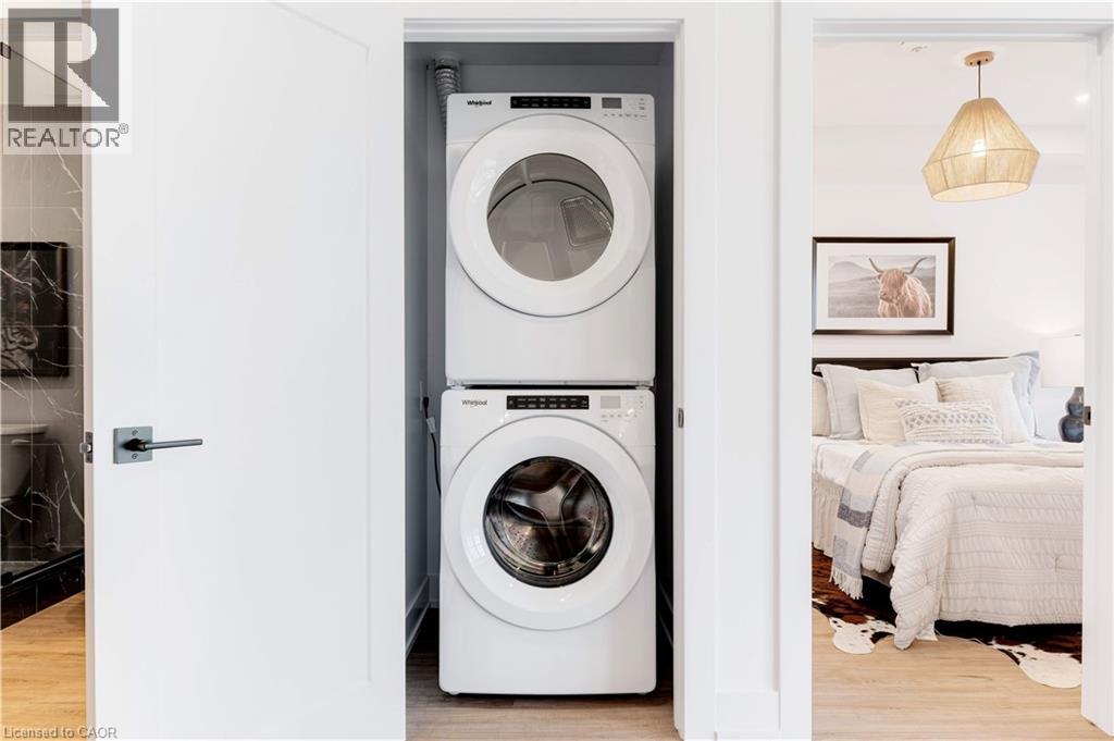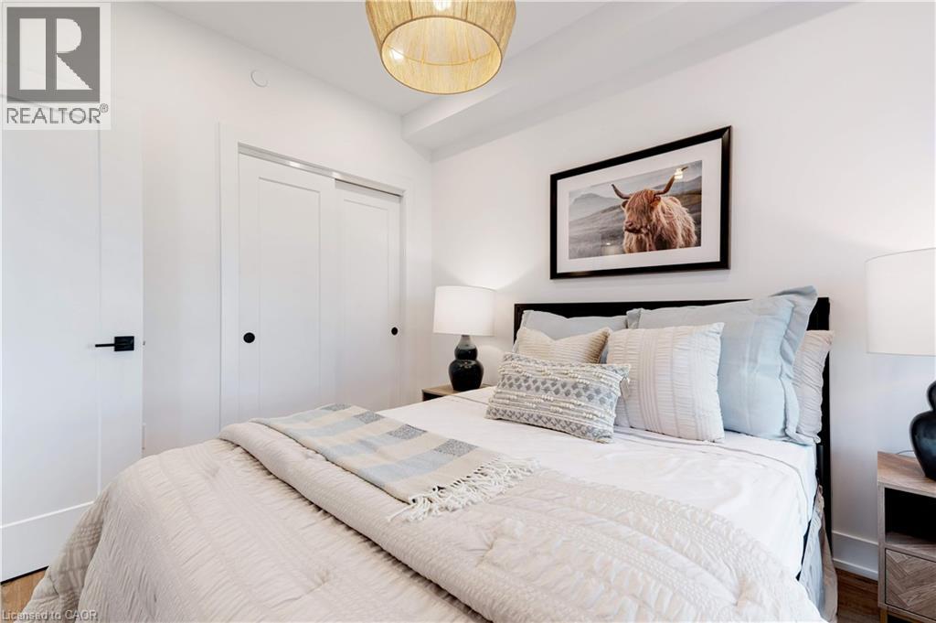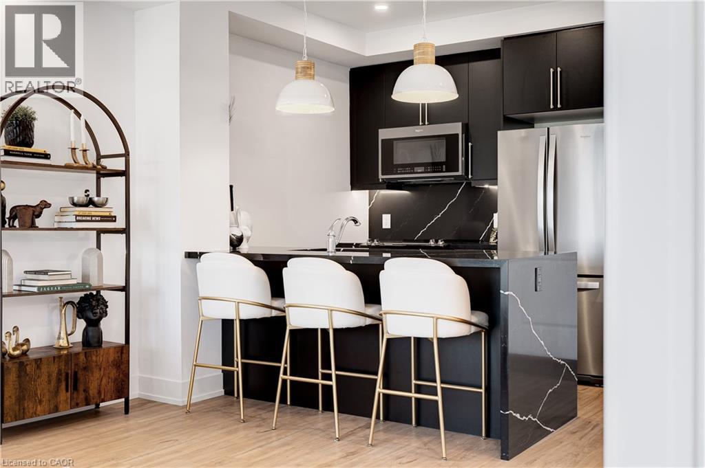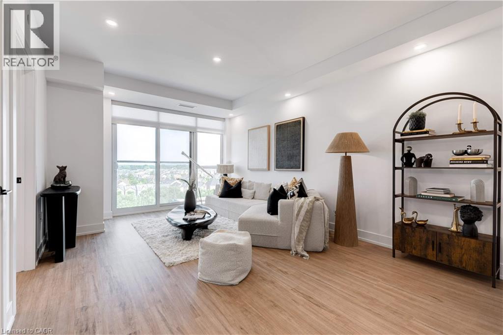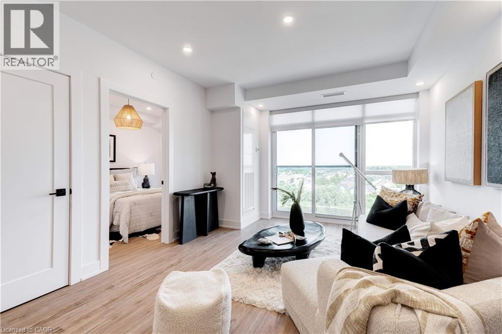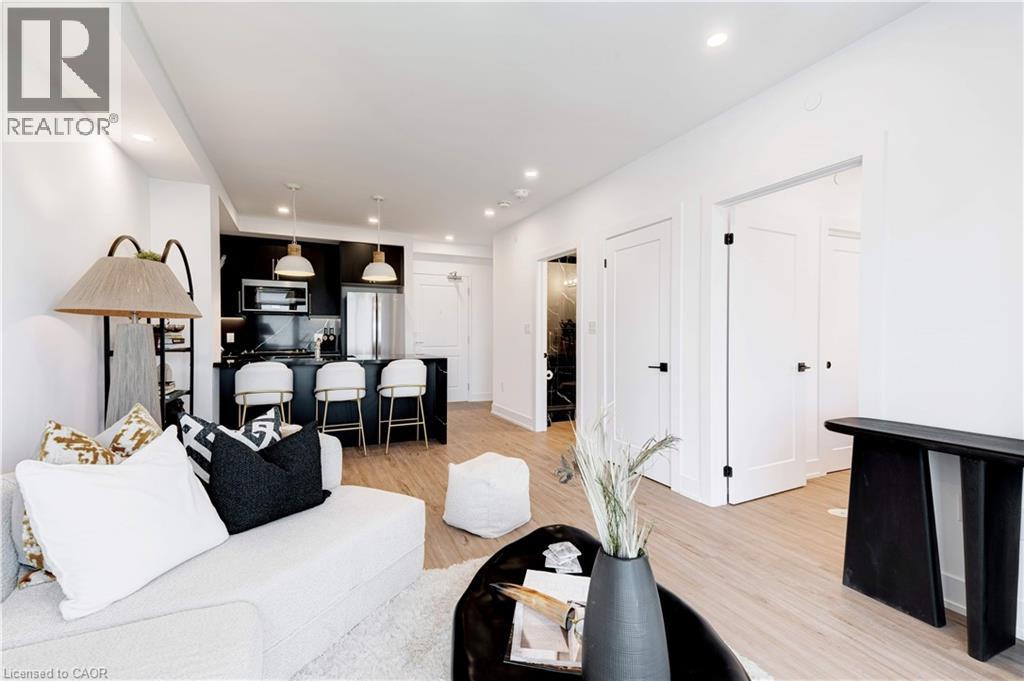 Welcome to Trend 3 Condos in the heart of Waterdown! This stunning 587 sq ft, 1-bedroom designer suite is perched on the 8th floor and is loaded with over $60,000 in premium upgrades. A true designer dream, this condo blends modern luxury with thoughtful details throughout. The open-concept layout showcases a fully upgraded kitchen, stainless steel appliances, pot lights throughout, and stylish flooring with no carpet. The spa-inspired bathroom features a sleek walk-in shower, creating a hotel-level experience at home. The generous bedroom offers comfort and privacy, while the rare Juliette balcony allows fresh air and an effortless inside-out breeze, filling the space with natural light and an airy feel. Convenience meets luxury with in-suite laundry, one parking space, and a private locker. Residents of Trend Condos enjoy exceptional amenities including a rooftop terrace with panoramic views, fitness centre, party room, bike storage, and visitor parking. Located minutes from major highways and just a 10-minute drive to Aldershot GO, this prime location also places you steps from scenic trails, parks, restaurants, and everything Waterdown has to offer. (70147889)