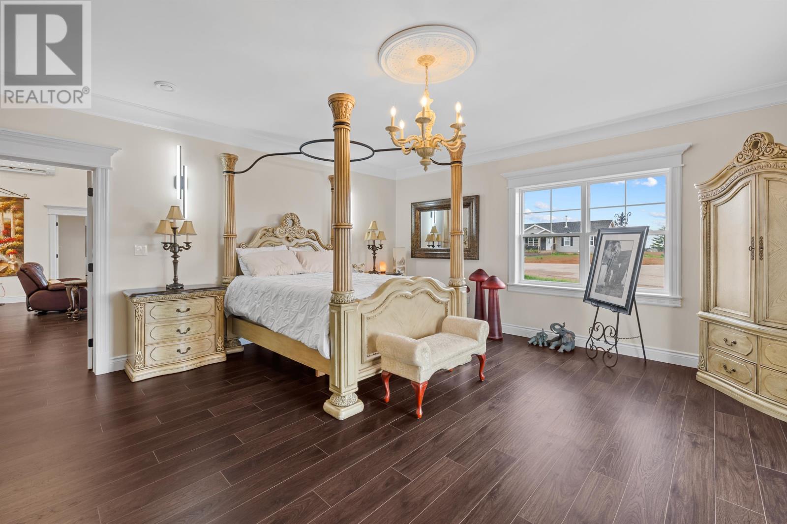 Come home to PEI at 29 Laughlin Street in Miscouche where executive luxury meets peaceful East Coast Living. This 3 year old home is tucked away on a quiet cul-de-sac and set on a private 0.4 acre lot. This exceptional property offers over 4000 sq. ft. of refined living space designed for comfort entertainment and flexibility. Just minutes to Summerside and within easy reach of PEI's beaches boating dining and amenities this location delivers both privacy and convenience. Inside the bright open-concept layout impresses with Soaring ceilings Oversized windows Custom moldings and Elegant marble tile flooring. The chef inspired kitchen is a showstopper featuring high-end Appliances Quartz countertops Striking marble backsplash and Ample storage perfect for gatherings large or small. Multiple living and dining areas provide versatile spaces for hosting relaxing or working from home. The primary suite is a true retreat with its own Private deck Spacious walk-in closet and Spa-like ensuite complete with glass raindrop shower Deep soaker tub and Floor-to-ceiling marble. Two additional bedrooms each offer private ensuite baths ideal for family or guests. The property also features two double car garages including a detached garage with its own driveway and fully finished bonus rooms above each ideal as a Fourth bedroom Media room Home office Studio In-law suite or Business space. Outdoor living feels like a private resort with multiple decks A covered stone-floor pergola Charming covered bridge and Matching garden shed All surrounded by mature landscaping for ultimate serenity. (231946300)