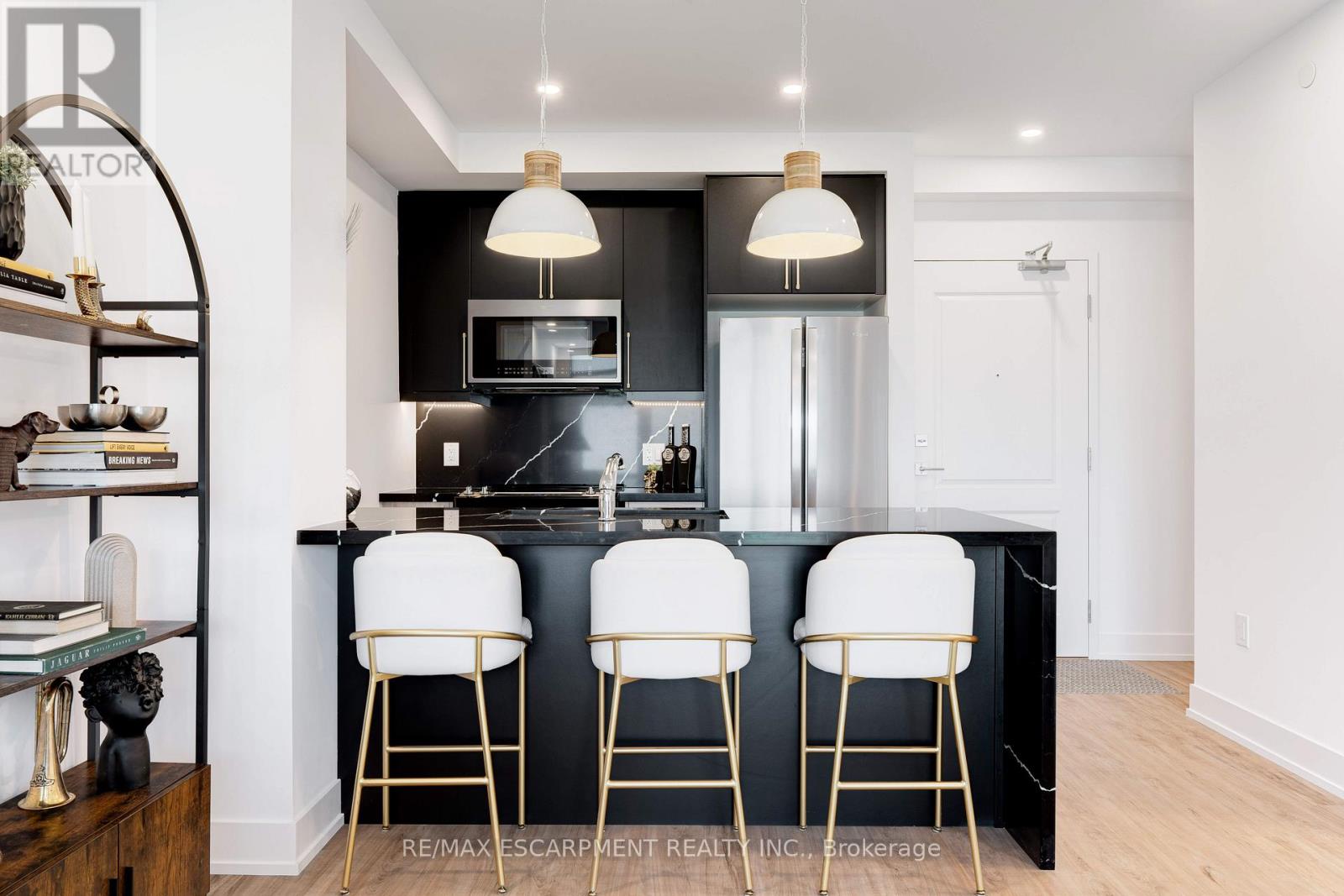 Welcome to Trend 3 Condos in the heart of Waterdown! This stunning 587 sq ft, 1-bedroom designer suite is perched on the 8th floor and is loaded with over $60,000 in premium upgrades. A true designer dream, this condo blends modern luxury with thoughtful details throughout. The open-concept layout showcases a fully upgraded kitchen, stainless steel appliances, pot lights throughout, and stylish flooring with no carpet. The spa-inspired bathroom features a sleek walk-in shower, creating a hotel-level experience at home. The generous bedroom offers comfort and privacy, while the rare Juliette balcony allows fresh air and an effortless inside-out breeze, filling the space with natural light and an airy feel. Convenience meets luxury with in-suite laundry, one parking space, and a private locker. Residents of Trend Condos enjoy exceptional amenities including a rooftop terrace with panoramic views, fitness centre, party room, bike storage, and visitor parking. Located minutes from major highways and just a 10-minute drive to Aldershot GO, this prime location also places you steps from scenic trails, parks, restaurants, and everything Waterdown has to offer. (42118895)