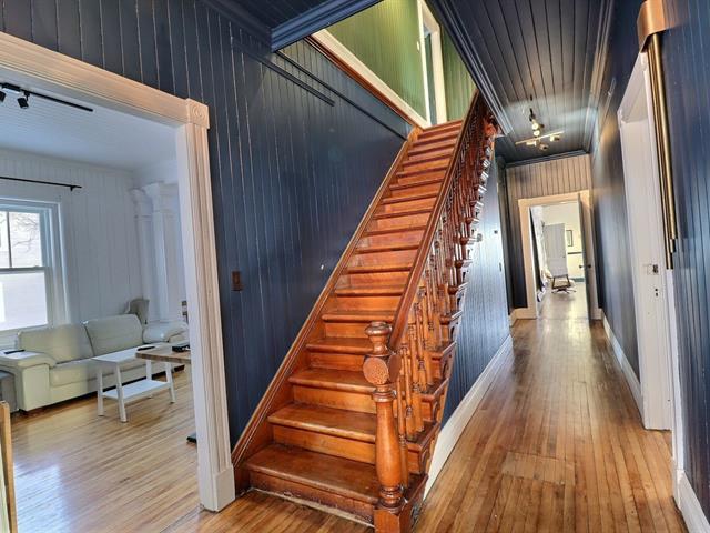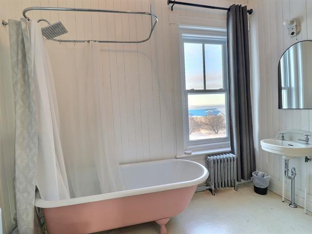 Somptueuse centenaire située au coeur du village de Newport avec vue sur la mer. Cette demeure de caractère séduit par son cachet unique, sa cuisine avec vue sur l'océan, ses magnifiques boiseries, ses planchers et plafonds de bois et ses vastes pièces. Elle propose 7 chambres spacieuses et 3 salles de bain complètes, répondant parfaitement aux besoins des familles nombreuses ou ceux en quête d'espace. Un loft aménagé en 2024 au 3e étage, comprenant une chambre et une cuisine fonctionnelle, vient bonifier le potentiel de la propriété. Une demeure d'exception, rare sur le marché ! Voir addenda pour les rénovations et la division du terrain. (51758187)