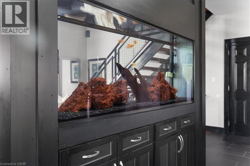 One-of-a-kind, only two owner custom home on a rare double lot in a quiet upper Stoney Creek court! This is the kind of property that rarely comes to market. Loaded with custom finishes, outdoor luxuries, and lifestyle upgrades inside and out. Winters have been spent skating on the backyard rink, and summers around the full brick pizza oven with chimney in the outdoor kitchen with Napoleon Prestige Pro 500 BBQ, fully wired with outdoor patio speakers, all set in a private green space. Sleek matching shed with electrical service and double doors featuring indoor/outdoor dog kennel. Integrated security system with LED lighting throughout the property. Step inside to a soaring 2-storey family room with a modern fireplace anchored by a fully plumbed 220-gallon aquarium, the stunning focal point and show piece of the main floor. The oversized kitchen easily fits a 12+ person table and flows into a spacious prep kitchen with granite counters and stainless steel appliances. A bold steel and wood staircase adds a cool industrial vibe. Upstairs, every bedroom has its own ensuite privilege. The main bedroom and ensuite bathroom feature a built-in surround sound system for a luxurious retreat. This home also includes a 104-bottle cantina with an in-wall security safe, Steam Core sauna, and a partially finished basement already equipped for a hair salon. Double car garage with EV charger, double driveway, and just minutes from schools, parks, shopping, movie theatres, and highway access. This isn’t just a home, it’s an experience. Come see it for yourself. (70147888)