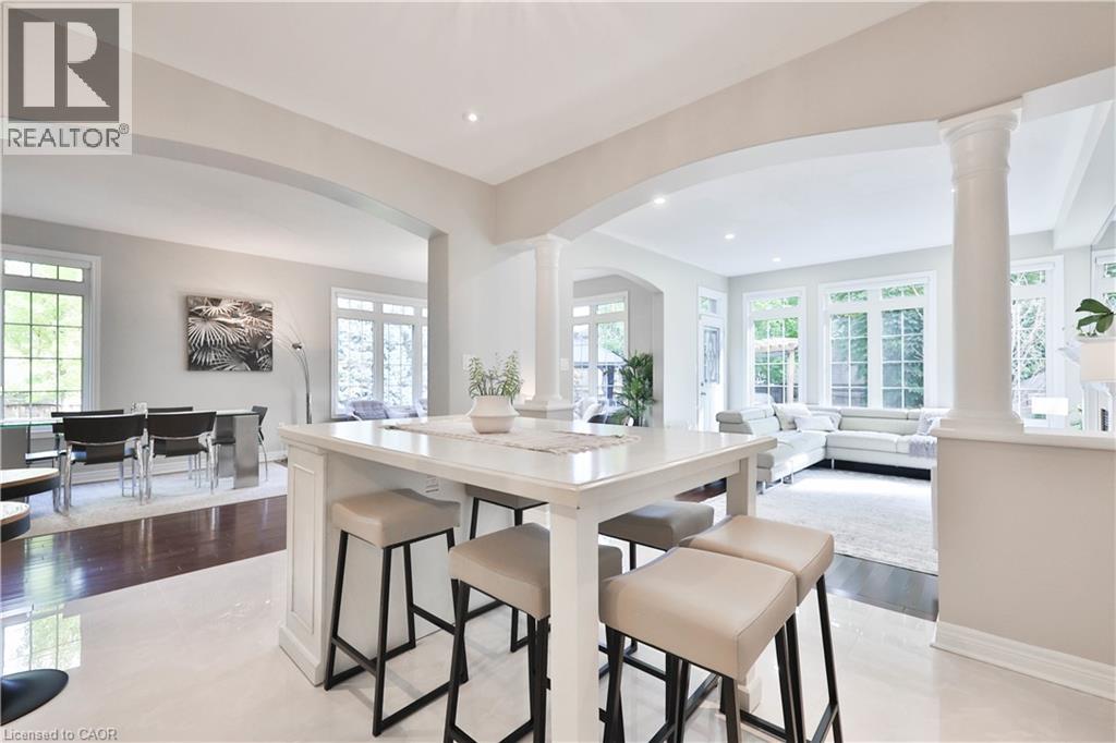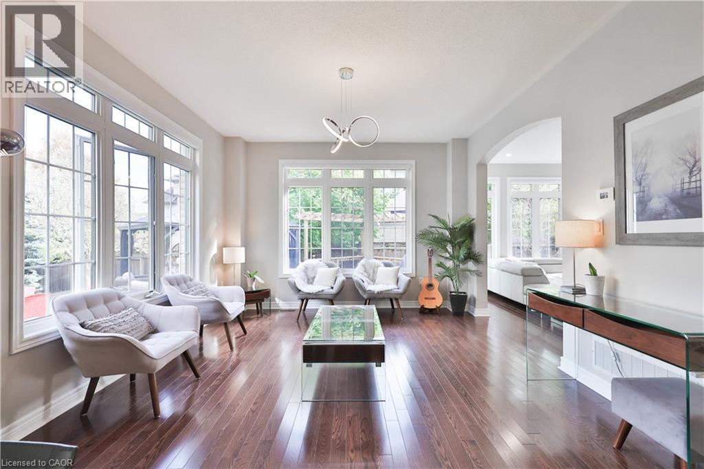Welcome to this stunningly upgraded family home in the prestigious Bronte Creek community of Oakville. Perfectly positioned on a premium pool-sized lot on a quiet, family-friendly street this exceptional Monarch built home offers 3,812 sq. ft. of fully finished living space on three levels providing the ultimate blend of luxury, comfort, and functionality. This 4-bedroom, 3+1 bath residence has been meticulously updated inside and out. A striking exterior with fresh paint and timeless curb appeal sets the tone for elegance within. Step through the grand foyer to discover a bright, flowing open-concept layout enhanced by new porcelain tile and hardwood flooring, designer lighting, and custom wainscoting that elevate every space. The updated gourmet chef’s kitchen is a true showpiece, featuring custom cabinetry, Stainless steel premium appliances, granite counters and a large island that seamlessly connects to the cozy family room with a gas fireplace, perfect for entertaining or relaxed family living. The formal dining and living rooms exude sophistication, ideal for hosting special gatherings. The upper-level features new hardwood, a luxurious primary suite providing a serene escape with a spa-inspired 5 pc. ensuite and a generous walk-in closet. A stunning loft/office space, three spacious bedrooms, a main bath and laundry room complete the upper level. The fully finished lower level adds exceptional versatility with a rec room, gym/home office space, an updated 3-piece bath and ample storage ideal for growing families. Step outside to your own private haven, an entertainer’s dream. The fully fenced pool-size lot showcases professionally landscaped gardens featuring mature trees, fire pit and tiered decks offering outdoor enjoyment in every season. Located minutes from highways, top-rated schools, shopping and the best of Oakville’s natural beauty, this Bronte Creek gem combines modern luxury with timeless elegance and is a rare opportunity not to be missed. (70147855)