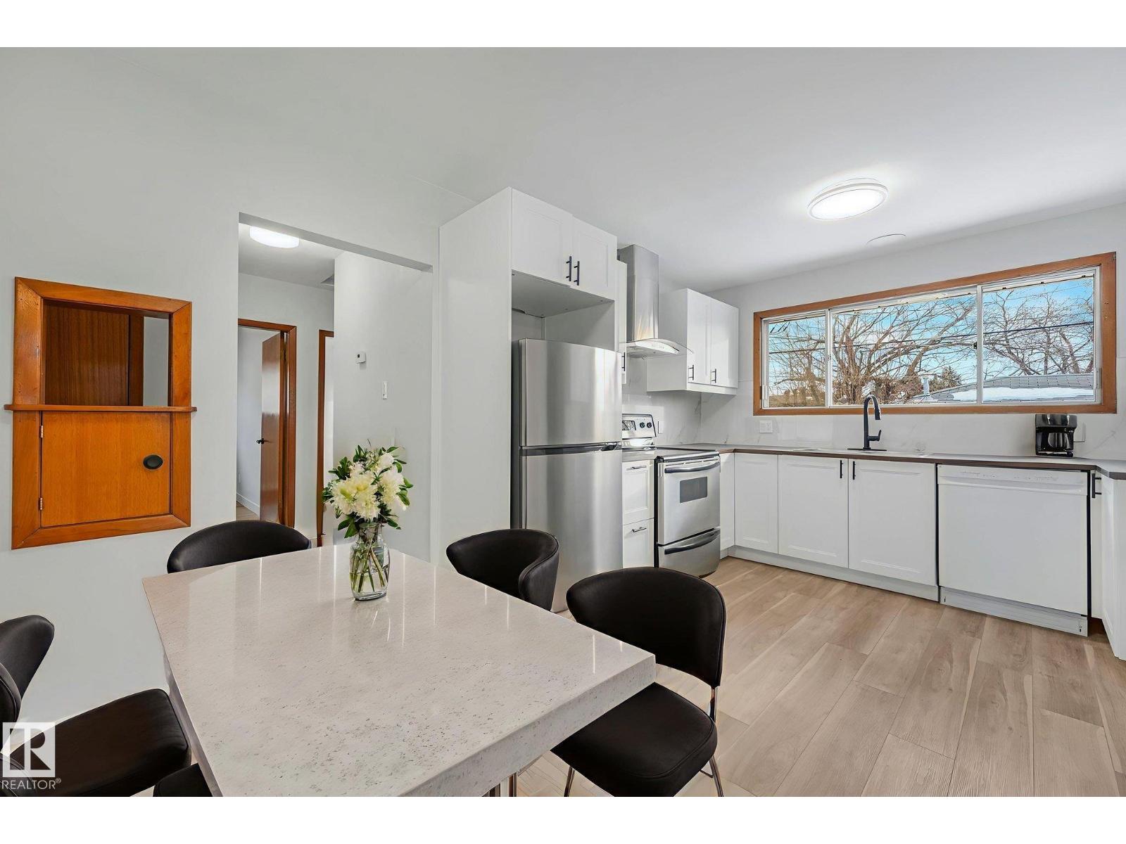 Welcome to Ottewell, one of Edmonton’s coveted central communities. Ideally located across from Austin O’Brien High School, this beautifully updated 4-bedroom, 2-bath home offers comfort, style, and everyday convenience. The main floor features a spacious layout with plenty of natural light throughout. Recent improvements include, new kitchen and main floor bathroom, paint, flooring, and fixtures throughout the main floor. Downstairs, enjoy a fully finished basement with a large family room, fourth bedroom, 3-piece bathroom, laundry area, and generous storage space, perfect for guests or growing families. The spacious, sun-filled backyard provides room to relax, entertain, or garden, complemented by an oversized single garage and ample driveway parking. Close to top-rated schools, parks, shopping, and transit, this move-in-ready home is a great find in one of Edmonton’s most sought-after mature neighbourhoods. (some photos have been virtually staged for visual reference) (33817657)