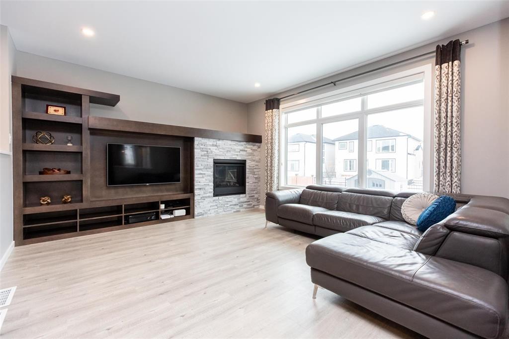 1R//Winnipeg/Showing start now. Offer as received. Bridgwater Trail formal Show home built by Kensington Homes. Showing like brand new loaded with Luxury upgrades throughout. Welcome foyer with storage and beautiful stone feature wall. Front office/ Den area with built-in wall shelfs & electric Fireplace. Massive chef style eat-in kitchen offers Loaded upgrades included ceiling height cabinet, pot drawers, induction cook top, built in wall oven & microwave, quartz counters, large island with tons of cupboards & walk in pantry with barn doors. Great room with entertainment unit, gas fire place, built-in speaker, over-sized windows & backing onto walking trail. Second floor offers Huge Loft area and 4 bedrooms. Amazing Master suite offers Luxury Ensuite W/ heated tile flooring, free standing tub, glass shower. Walk-in closet w/custom built-in organizers. And 3 very Good size Bedrooms W/Large closets, custom built curtains. Bright Laundry area with Storage Cabinet. finished basement W/Huge Recreation room, lots of pot lights, one more bedroom/ Offcie and 3PC full bath. Professionally finished front/back landscape. Underground sprinkler system, storage shed, Large deck with Gazebo. A MUST SEE! (231947155)