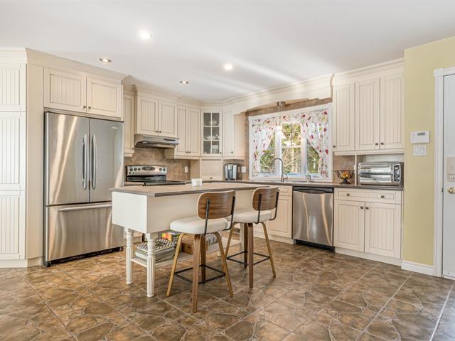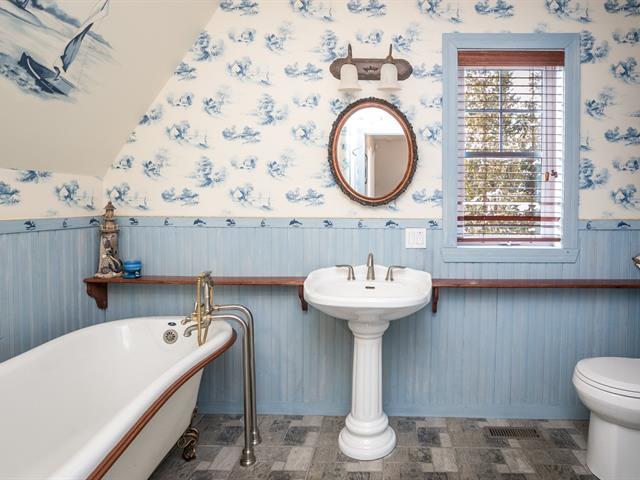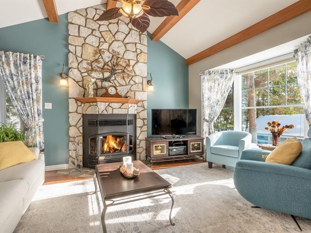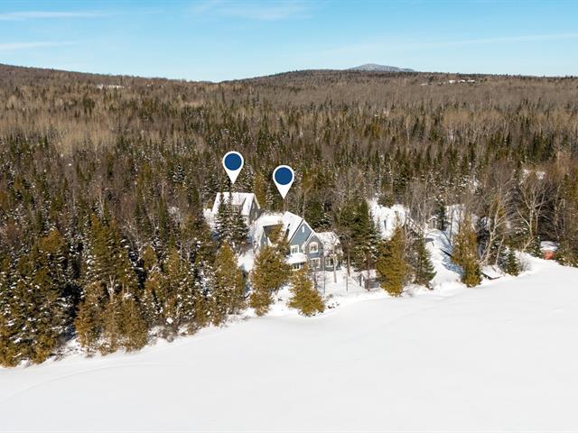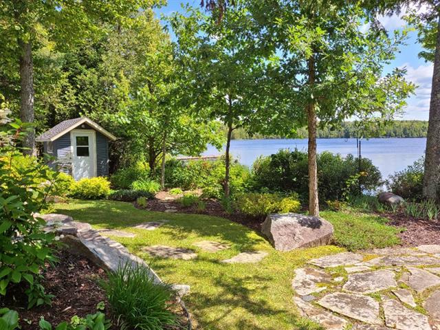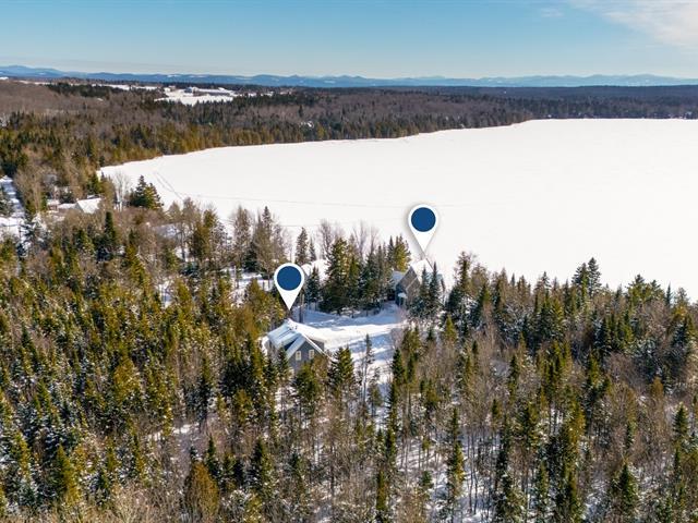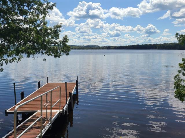 Two-storey home with a garage and loft above, located on a double lot totaling 21,109 sq. ft. A stream winds across the residential lot, which also enjoys approximately 108 linear feet of frontage on Lac des Trois Milles. The main floor features abundant windows with water views and includes a kitchen with lacquered wood cabinets and a living room with a wood-burning fireplace and cathedral ceiling. Upstairs: 3 bedrooms and 1 bathroom. The loft offers a living room with a wood stove, dining area, kitchen, bedroom and bathroom. Large L-shaped covered deck and dock. (42076738)