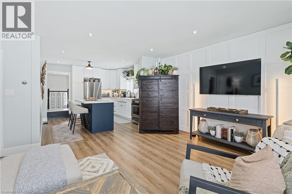 Discover refined comfort in this beautifully maintained, cute as a button, 2 + 1 bedroom, 2 bathroom residence offering over 1,500 square feet of total and thoughtfully finished living space. Set within a mature, tree-lined neighbourhood known for its welcoming community and exceptional convenience to schools, Highway 401 and premier amenities, this home is waiting to welcome a new family. A private side entrance leads to the fully finished lower level, presenting outstanding in-law or multi-generational living potential. Outdoors the deep, fully fenced backyard creates a serene retreat for elegant entertaining, complete with an expansive deck and two storage buildings - one powered and perfectly suited for a workshop or creative studio. Inside, natural light fills the inviting main living area, complemented by two well-appointed bedrooms and a stylishly updated bathroom. The eat-in kitchen blends function and charm with generous storage and seamless access to the rear entry and lower level. The finished basement features a sophisticated third bedroom, a second full bathroom, an upgraded laundry space with folding counter and extensive shelving and a spacious recreation room. A substantial utility and cold room further enhance the home's impressive storage capacity. Don't miss this exceptional opportunity to enjoy comfort, privacy and versatility in a sought-after setting! (70149228)