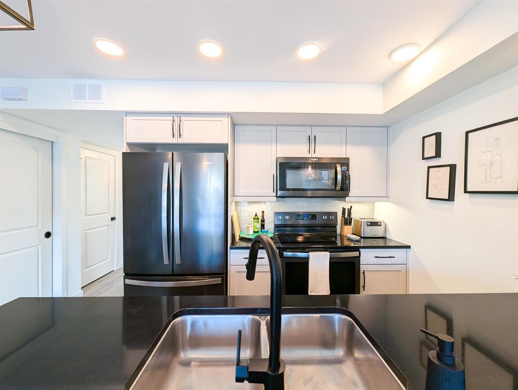 1R//Winnipeg/Affordable, almost new, and easy to maintain. This bright main floor 2-bedroom pet-friendly townhouse condo offers simple, low-responsibility living with very low condo fees ($310/mo) that include water. One covered parking stall is included, so you are protected year-round.The two bedrooms face east for beautiful morning light. The open living, dining, and kitchen area features a large west-facing window that fills the home with natural light throughout the day. The primary bedroom also has an east-facing balcony with peaceful water views.Enjoy your own private entrance, in-suite laundry with washer and dryer, air conditioning, and a modern kitchen with quartz counters, tile backsplash, black stainless steel appliances, a large island, and big pantry. The unit is move-in ready and easy to care for.Walk to Altea, bus stop, grocery store, coffee shops, restaurants, parks, and trails. Visitor parking and a small playground are available in the complex. Move-in ready with flexible possession. Located in a safe, growing area a wise investment in a community with lasting value. (231947725)