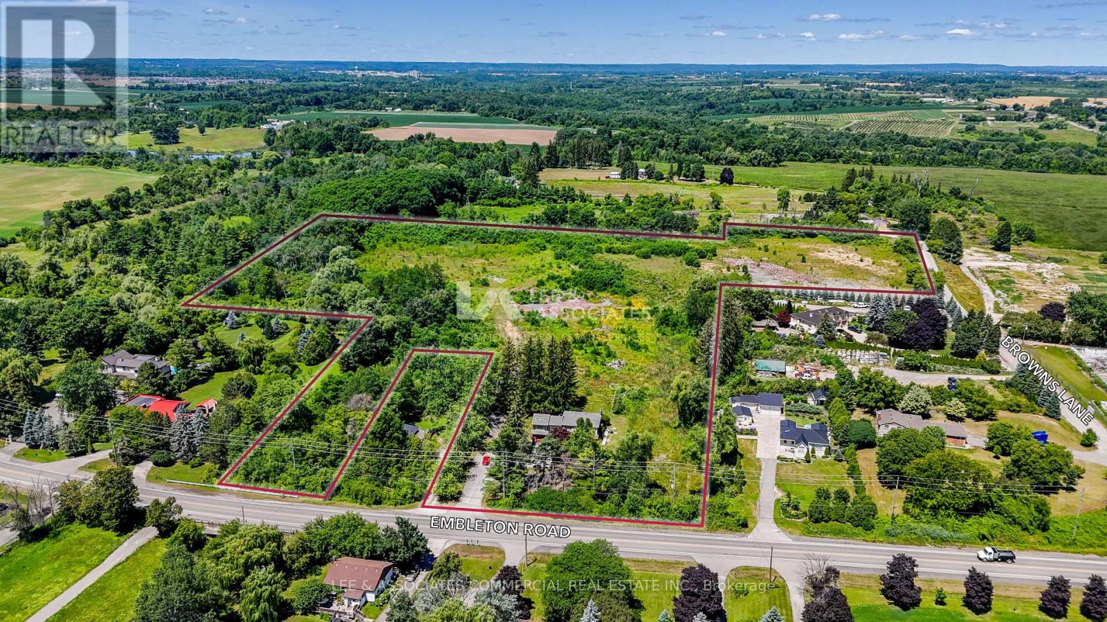 Exceptional +/-16.4-acre landholding featuring approximately 10.95 net developable acres within Brampton's highly sought-after Bram West Secondary Plan. Prominently situated along Embleton Road near Heritage Road, the property offers excellent connectivity to Highways 401, 407, and the proposed 413 corridor. Designated Employment Estates and zoned Agricultural, this well-positioned site presents a strategic land banking and future redevelopment opportunity; ideal for low-to-medium-density residential or mixed-use potential within one of Brampton's fastest growing areas. (42121664)