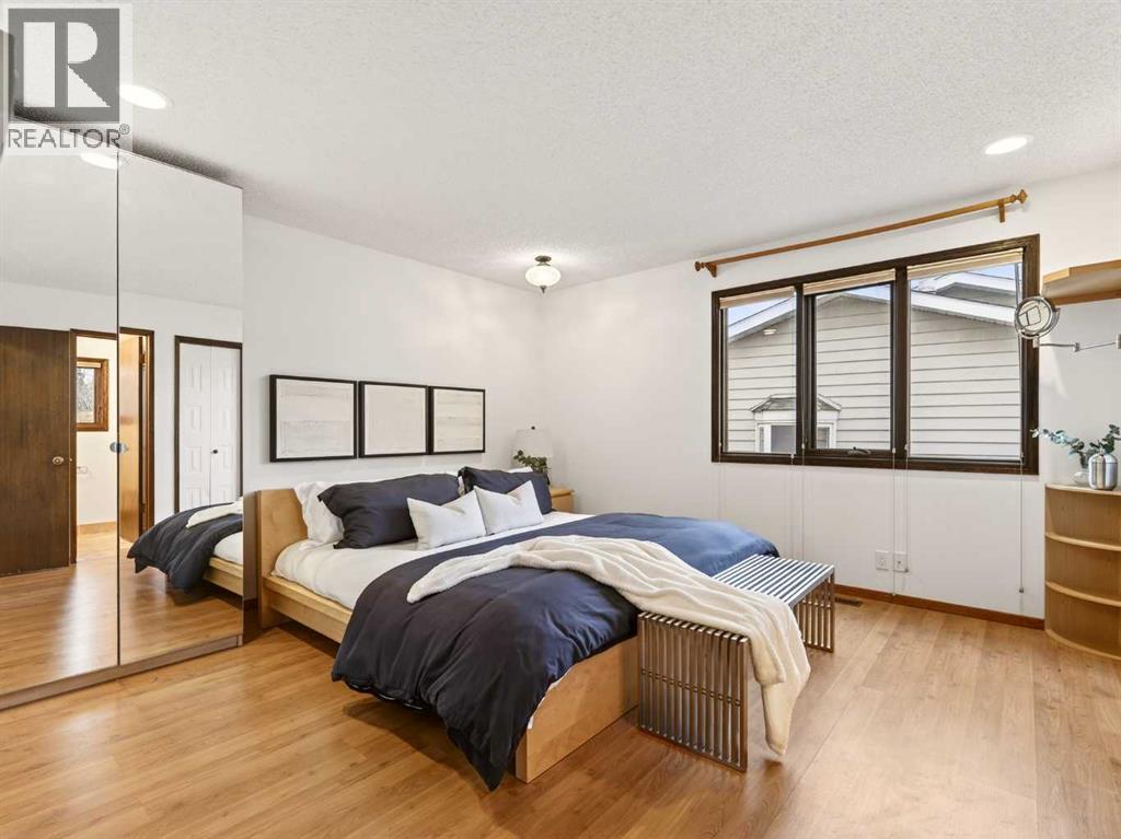 Welcome to Ranchlands Estates, where nature, privacy, and unique design come together in this truly one-of-a-kind residence offering over 3,200 sq ft of developed living space. Are you tired of seeing cookie cutter homes? Come and explore for yourself this incredible home backing directly onto an off-leash environmental reserve with expansive green space! This home is a rare sanctuary for those who value tranquility, privacy, and a connection to the outdoors. Upgraded over the years completely redone exterior featuring timeless stucco and stone, mature landscaping, underground irrigation, and a 50-year cedar shake roof. Recent improvements include over $5,000 in electrical upgrades (January 2025) with a new panel and sub-panel (updated in 2011). Additional highlights include two thoughtfully integrated additions, VOLA fixtures in all bathrooms, heated floors in the upper bathrooms, a fenced dog run, and so much more. The kitchen offers granite countertops, maple cabinetry, and a picturesque outlook onto the yard, while the adjacent dining room provides generous space for family dinners and gatherings. The main floor is complete with a laundry room, powder room, and access to a side deck perfect for summer barbecues. Upstairs, you’ll find a unique bedroom with vaulted ceilings and abundant natural light, ideal as a home office or creative space. In total, the home offers four bedrooms and 2.5 bathrooms, providing ample room for family and guests. The lower level adds versatile flex space perfect for an additional bedroom, gym, playroom or media room tailored to suit your lifestyle! (31630871)