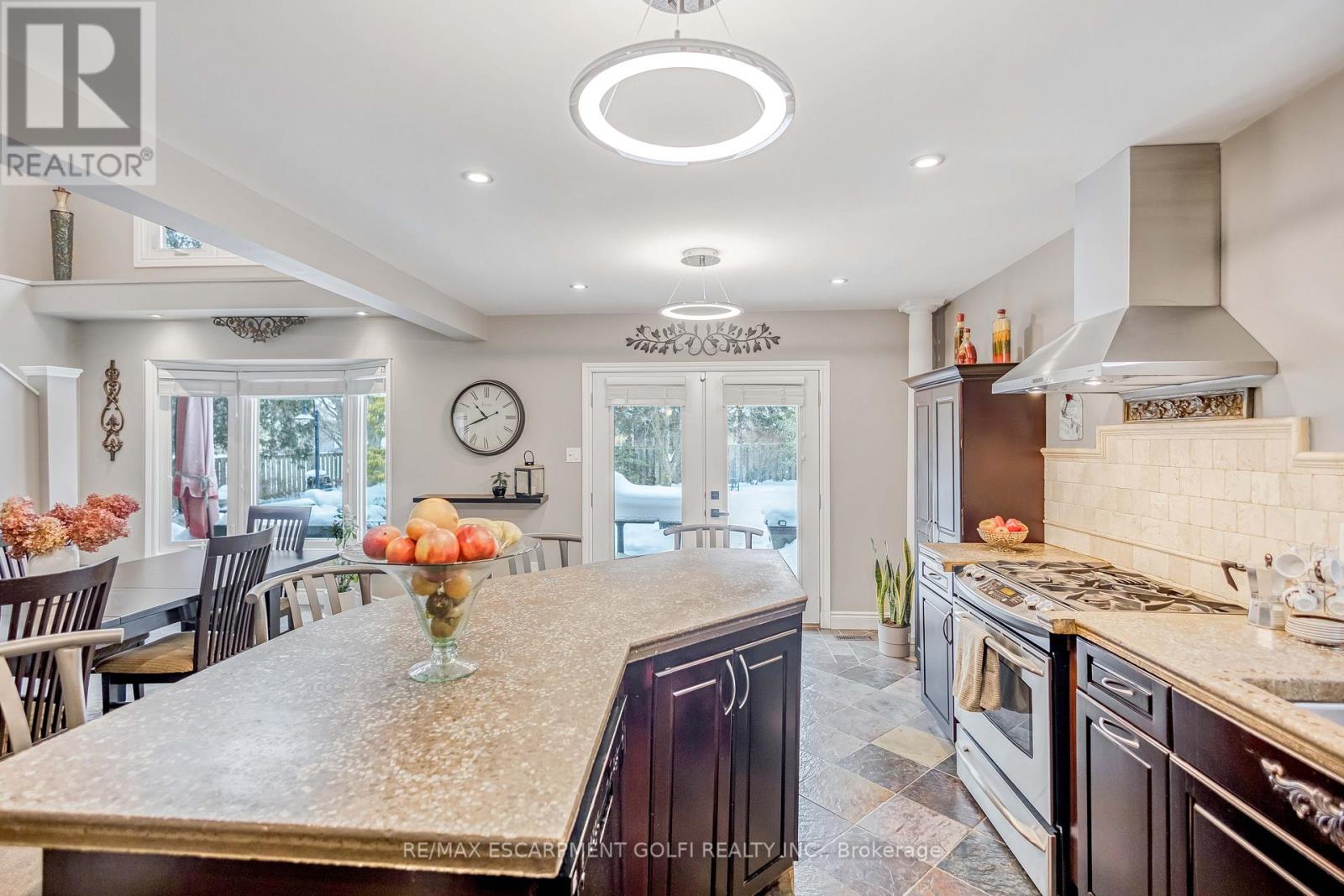 A Private Escarpment Retreat at 19 Fieldgate St Dundas in Cootes Paradise. Nestled in an exclusive, private pocket of Dundas, this stunning custom home sits on a sprawling corner lot surrounded by mature trees and professional landscaping. The quiet, family-friendly streets offer a serene escape while remaining minutes from downtown boutiques, top-tier schools, and easy highway access. The property boasts breathtaking views of the Niagara Escarpment and a backyard designed for entertaining, featuring a large stone patio and ample green space for children to play in total privacy. The interior features a masterful open-concept layout defined by soaring vaulted ceilings and floor-to-ceiling windows that flood the kitchen and dining areas with natural light. A formal sitting room and a cozy family room with a wood-burning fireplace provide versatile spaces for every occasion. With main floor laundry and a full bathroom with a shower, this home offers rare potential for one-floor living. Upstairs, you'll find four spacious bedrooms plus a den (potential 5th bedroom) and a luxury spa-like bath with a double vanity and walk-in shower. Adding incredible value is the fully finished in-law suite with a separate entrance, complete with its own kitchen, living area, bedroom, and bath. This space offers the ultimate flexibility for multi-generational living or a high-end rental. Experience the perfect blend of custom luxury and natural beauty in one of Dundas' most coveted neighborhoods. (42122021)