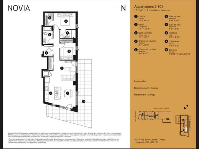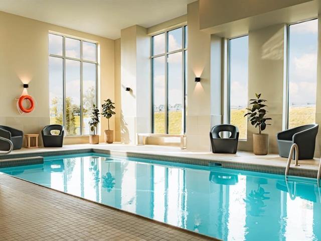 Lease Transfer until Jan 31st 2027. Le Novia -- Bright 2 bed, 2 bath condo in Longueuil. This modern unit features an open-concept layout with floor-to-ceiling windows, quartz countertops, built-in appliances, and in-suite laundry. Big private terrace and pets are accepted ! Enjoy resort-like amenities: gym, indoor pool, two roof terraces, indoor lounge, garden spaces, and sustainable features throughout the 9-story eco-conscious building. Perfectly situated in new Longueuil--less than a 10-minute walk to the Longueuil metro and intermodal terminal. (48113196)