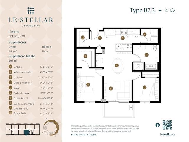 Le Stellar vous invite à découvrir ce superbe 4 ½, ainsi que l'ensemble des unités offertes au sein de ce projet prestigieux de 134 condos locatifs, situé en bordure du golf de Chicoutimi. Vous y trouverez des unités généreuses et lumineuses, avec des plafonds variant de 9 à 10 pieds, des comptoirs de quartz, une insonorisation de qualité supérieure et des finitions haut de gamme. Les aires communes ont été pensées pour votre bien-être et comprennent un chalet urbain, une salle de réception, un gym entièrement équipé ainsi qu'un espace yoga. Les petits animaux sont acceptés. Communiquez avec nous dès maintenant pour réserver votre unité. (57642063)