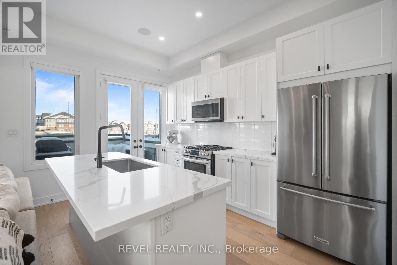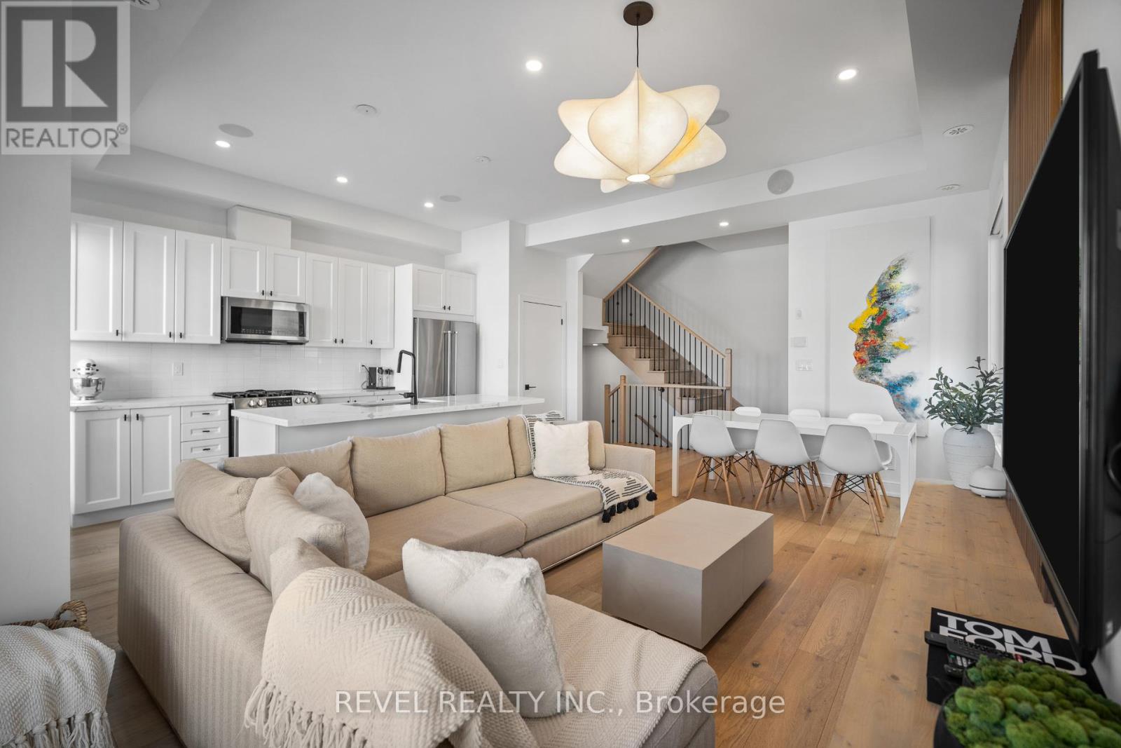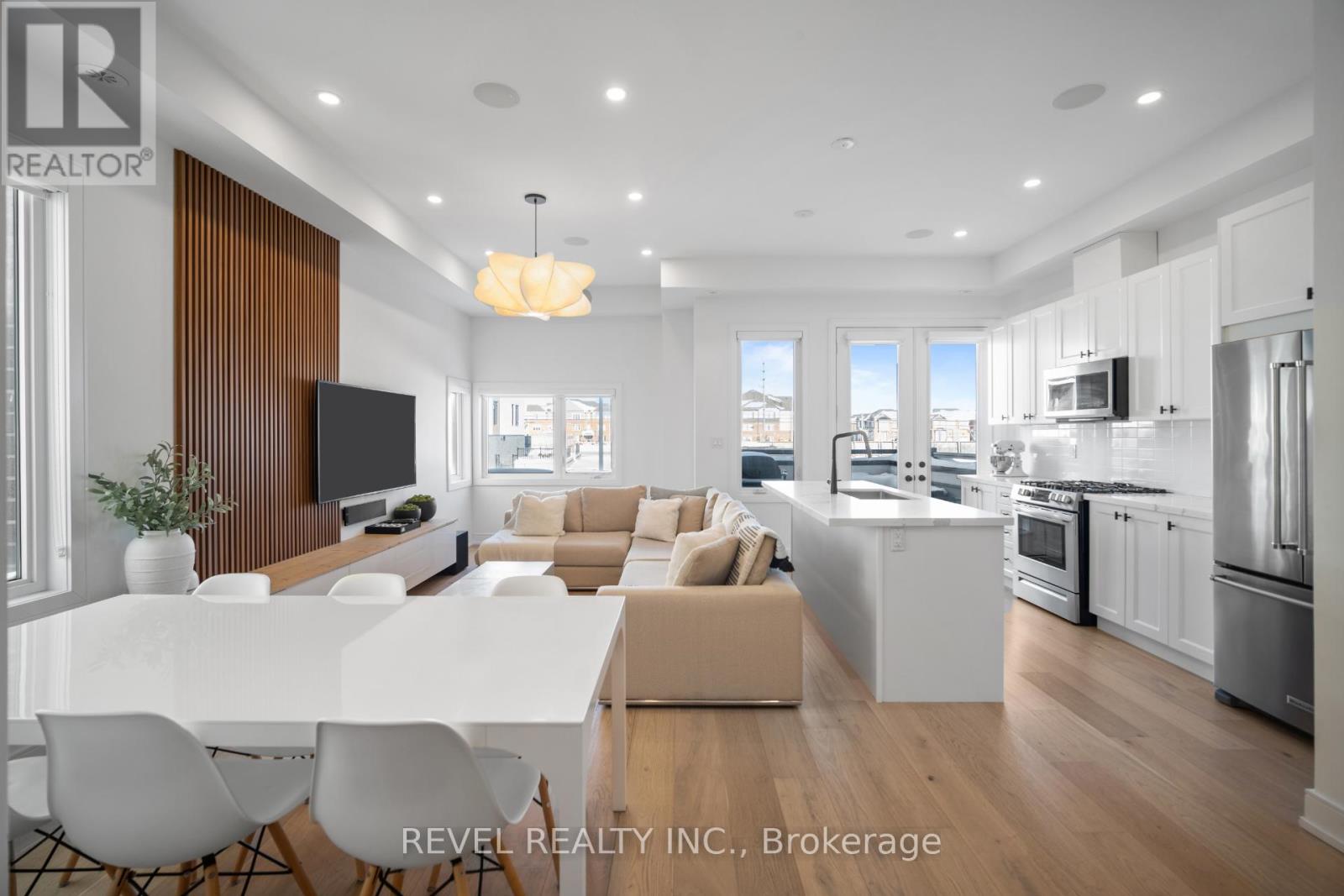Freehold end-unit townhouse offering three stories of pristine living. This sun-drenched home features wide-plank hardwood flooring throughout and an open-concept layout designed for both comfort and style. Soaring 10-ft ceilings on the main level enhance the sense of space, while thoughtful details include custom built-in closets in every bedroom, main floor built in speakers and designer lighting throughout. This home offers three spacious bedrooms and three well-appointed bathrooms. Enjoy seamless indoor-outdoor living with a large private balcony, complete with a gas line for summer BBQs and entertaining. A truly move-in-ready residence that blends simplicity, function, and beauty in one exceptional package. (42123139)