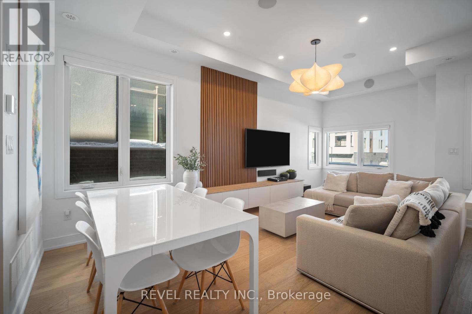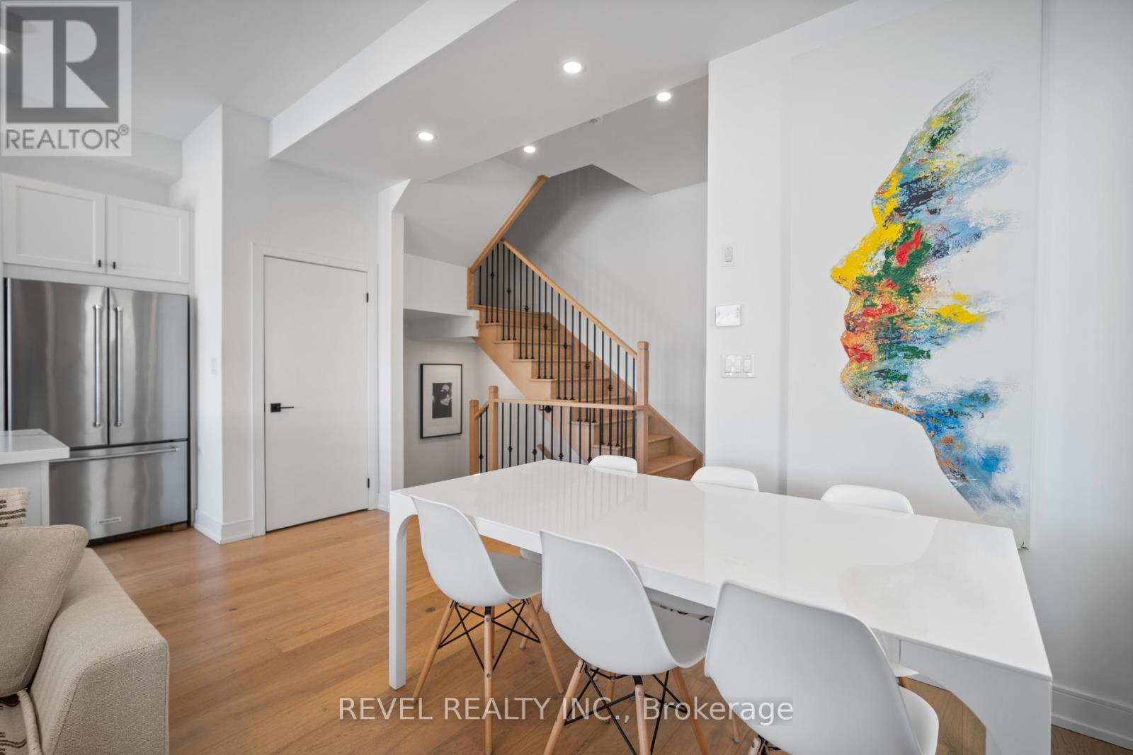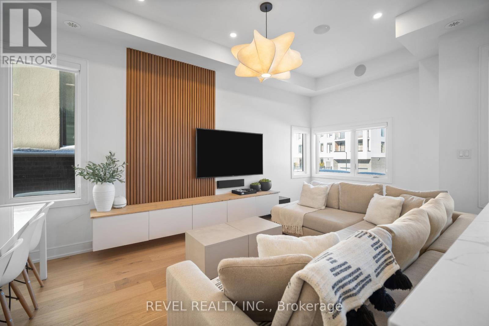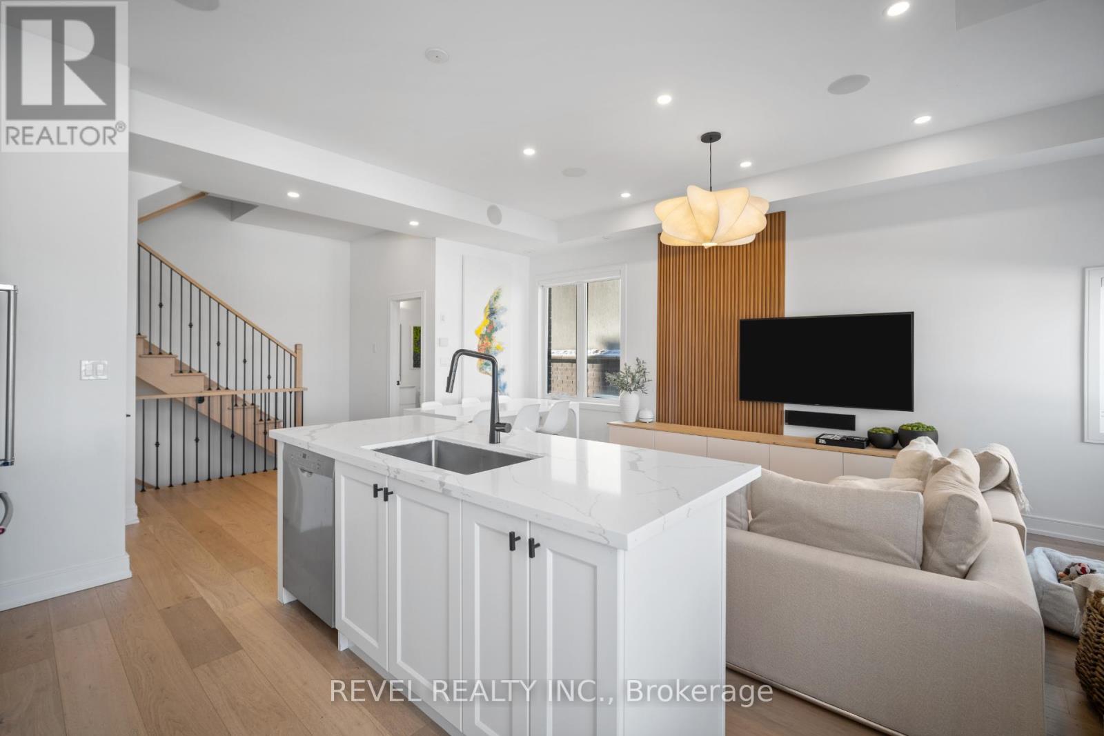 Freehold end-unit townhouse offering three stories of pristine living. This sun-drenched home features wide-plank hardwood flooring throughout and an open-concept layout designed for both comfort and style. Soaring 10-ft ceilings on the main level enhance the sense of space, while thoughtful details include custom built-in closets in every bedroom, main floor built in speakers and designer lighting throughout. This home offers three spacious bedrooms and three well-appointed bathrooms. Enjoy seamless indoor-outdoor living with a large private balcony, complete with a gas line for summer BBQs and entertaining. A truly move-in-ready residence that blends simplicity, function, and beauty in one exceptional package. (42123139)
