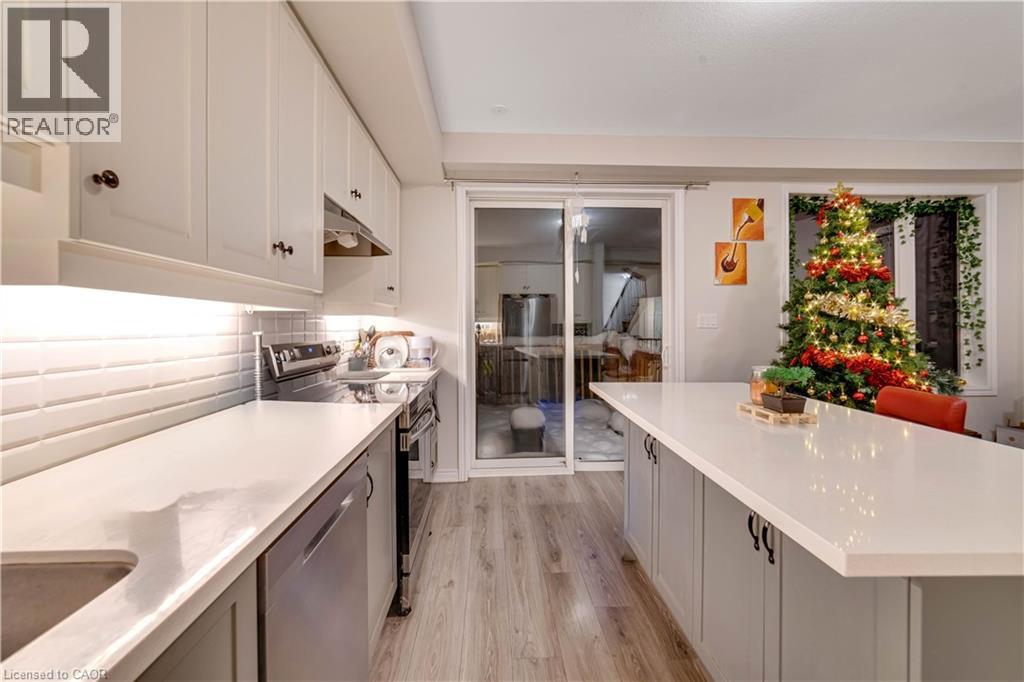 Located in a highly desirable neighbourhood, this beautiful 2-storey townhome backs onto a serene ravine and offers a walk-out basement. The bright open-concept main floor features upgraded hardwood flooring, large windows, and a stylish kitchen with upgraded cabinets, quartz countertops, stainless steel appliances, built-in microwave, modern backsplash, and an oversized island. Walk out to a large deck overlooking the ravine-perfect for relaxing or entertaining. The oak staircase leads to the second level with hardwood in the hallway, a convenient upper-level laundry, a primary bedroom with a private ensuite, two additional spacious bedrooms, and a full bath. Additional highlights include double-car driveway parking and a central vacuum rough-in. Close to parks, trails, shopping, public transit, Cambridge Mall, and major highways. (70150609)