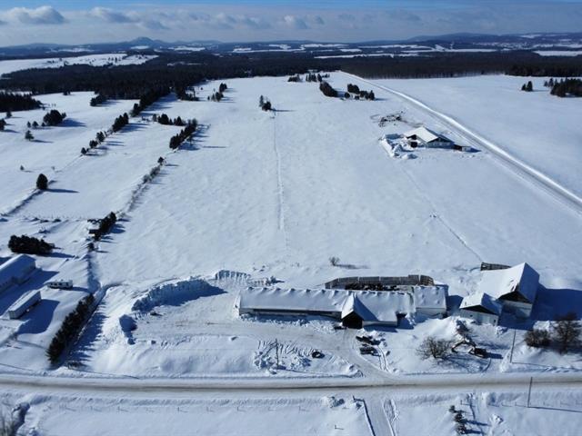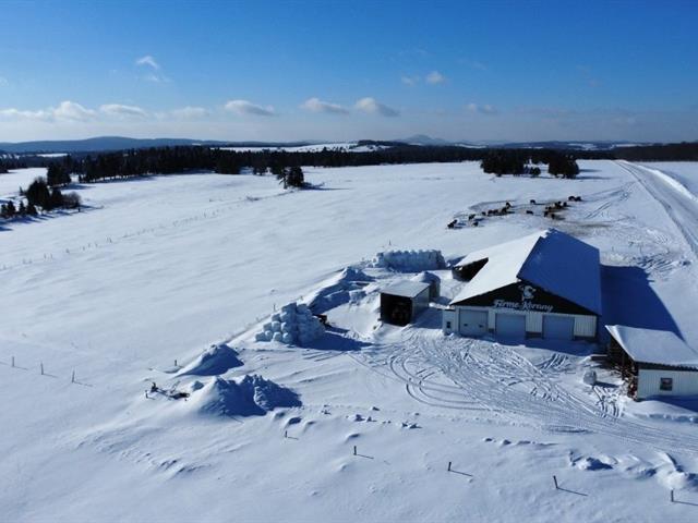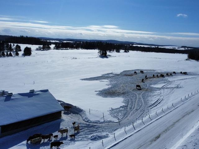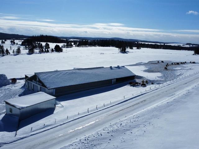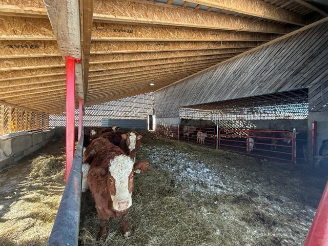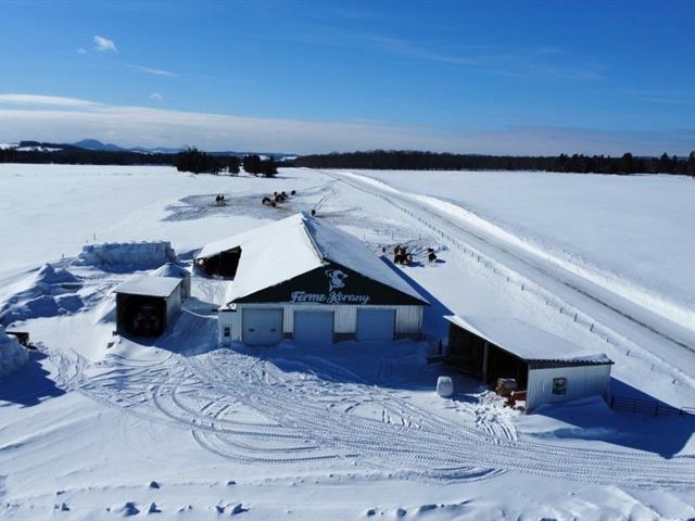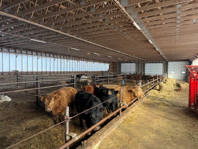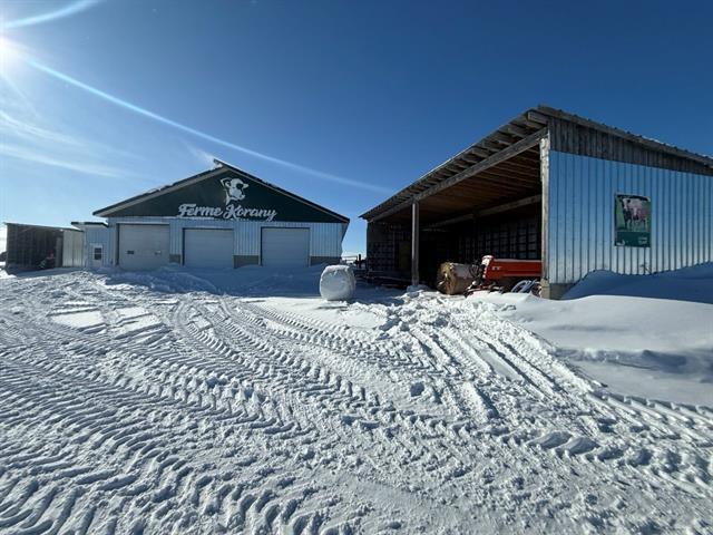 Tring-Jonction (Chaudière-Appalaches): 149.05-acre cow-calf cattle farm offering approximately 120 acres of cropland and pasture, as well as approximately 25 acres of mixed forest including a pond and a forest camp. Two free-stall barns built in 2008 and 2017 accommodate nearly 125 head of cattle, in addition to several farm buildings and a garage renovated in 2024. House built in 2017 with 4 bedrooms, bright open living area, kitchen with quartz countertops, wood-burning fireplace, and partially finished basement with exterior entrance. Quiet area, located about 25 minutes from Thetford Mines. GST/QST must be added to the asking price (48944741)