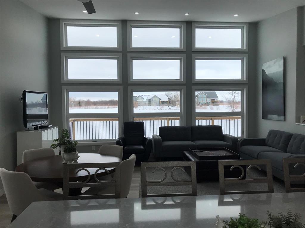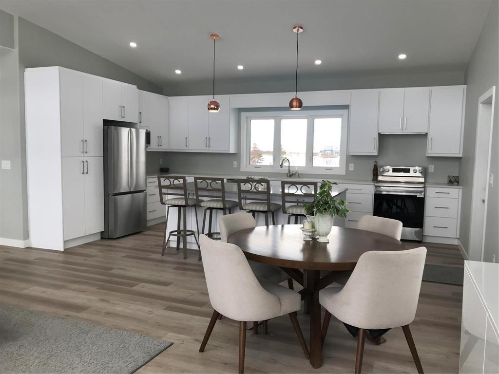 R26//Gimli/Stunning WATERFRONT HOME in prestigious Odin Green ! Built in 2025! This stylish home will impress you with its soaring vaulted ceilings and huge windows letting in natural light everywhere! Great-room open concept design with living/dining area and a Gourmet kitchen featuring stainless steel appliances, pantry tower and an abundance of soft close cabinets and drawers with quartz countertops. You will love the oversize island with plenty of seating space!!! The front to back center foyer offers a possibility of maybe office space and opens up to the massive 56 foot waterfront deck ! Overlooking the water as well is the primary bedroom with adjacent three piece bathroom and walk-in closet! There are two more good size bedrooms and a full four-piece main bathroom. From the main floor laundry room you can access the 5 foot clearance height crawlspace containing gas furnace, HRV , plus sump- and well pump! The 22x23 double attached garage comes with garage door opener! Regarding your water toys.....You can dock them right in your back yard with erosion protected shoreline!! Boat launch for residents of Odin Green is close by!!!!! (231949438)