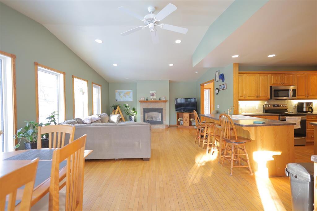 R35//Altona/Welcome to this warm and inviting two-storey home set on a large pie-shaped lot in a desirable cul-de-sac location. The main floor features a tiled front entry accented by an antique armoire, leading into a bright great room with vaulted ceilings, expansive windows, and a cozy fireplace. Hardwood flooring flows throughout the main living areas. The spacious oak kitchen offers abundant cabinetry, a convenient peninsula, a formal dining room, front parlor, and main-floor laundry. A well-appointed 3-piece bath completes this level.Upstairs you ll find four generous bedrooms and a full 4-piece bath. The basement includes a rec room with a custom built-in oak entertainment unit and an additional bedroom (window may not meet current egress requirements).This home is efficiently heated and cooled with recently updated geothermal pumps and electronics. The single attached garage has room to be expanded or can remain as space for RV parking.Step outside to enjoy the expansive backyard perfect for entertaining with a pergola, deck, patio area, and a large above-ground pool. Located just steps from Ash Park, this property offers both privacy and convenience in a family-friendly setting. (231949562)