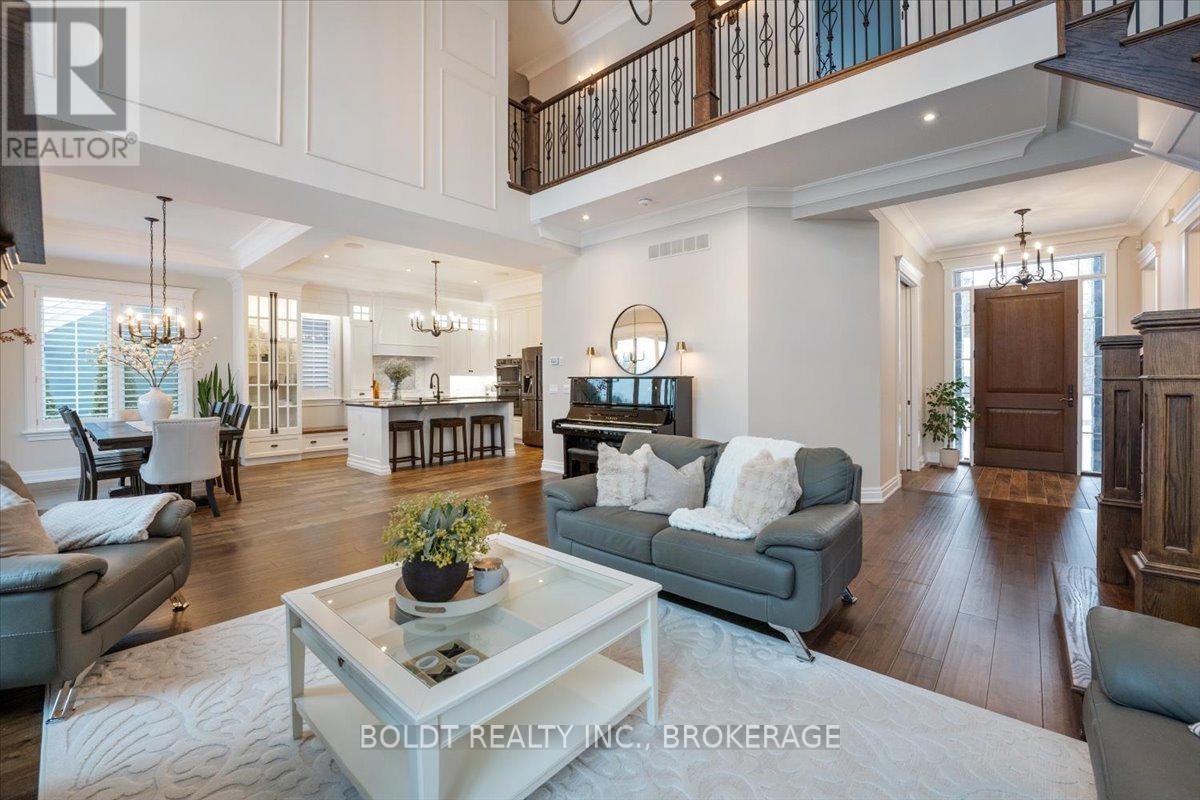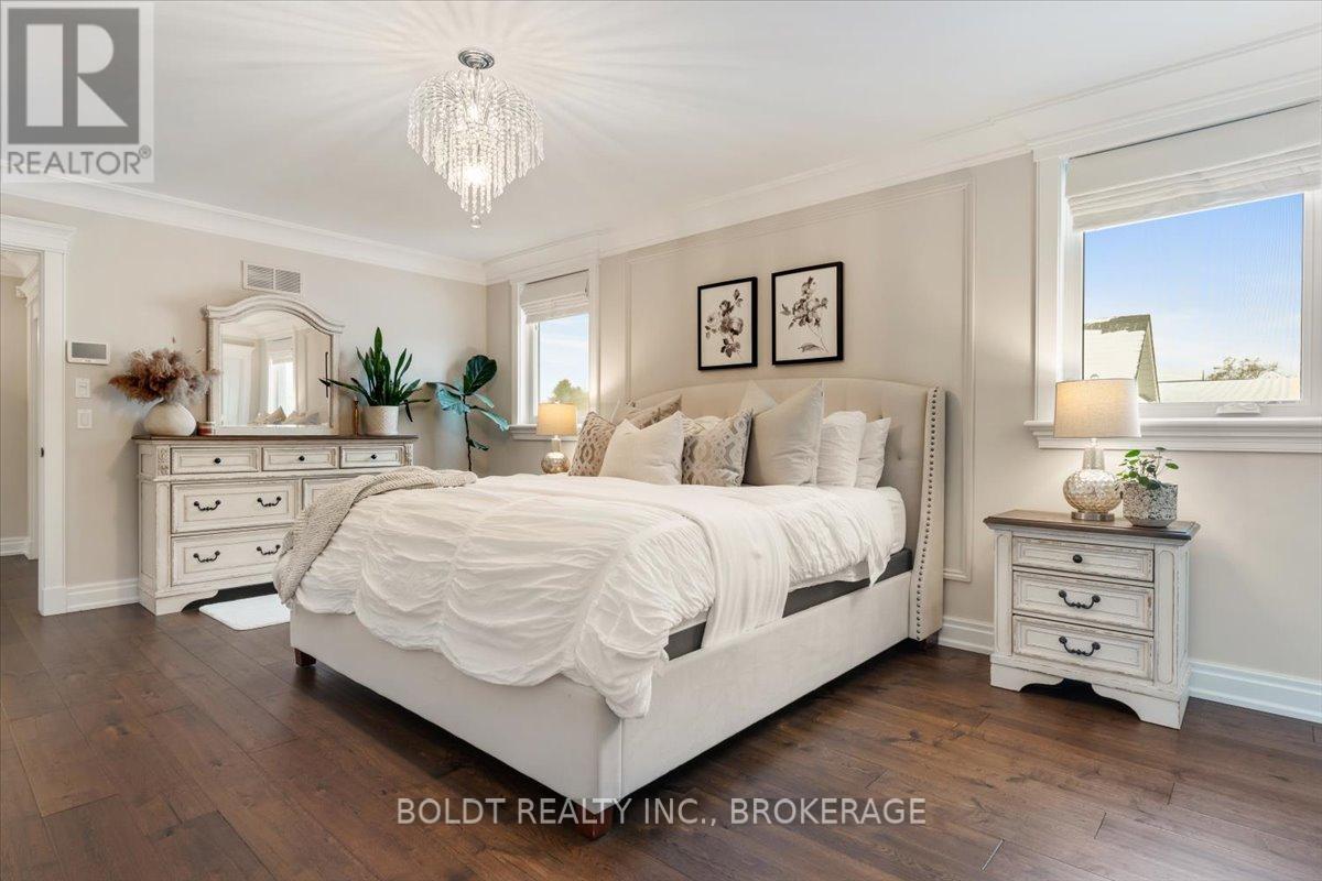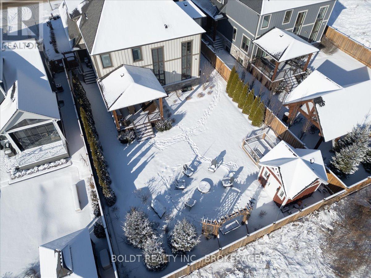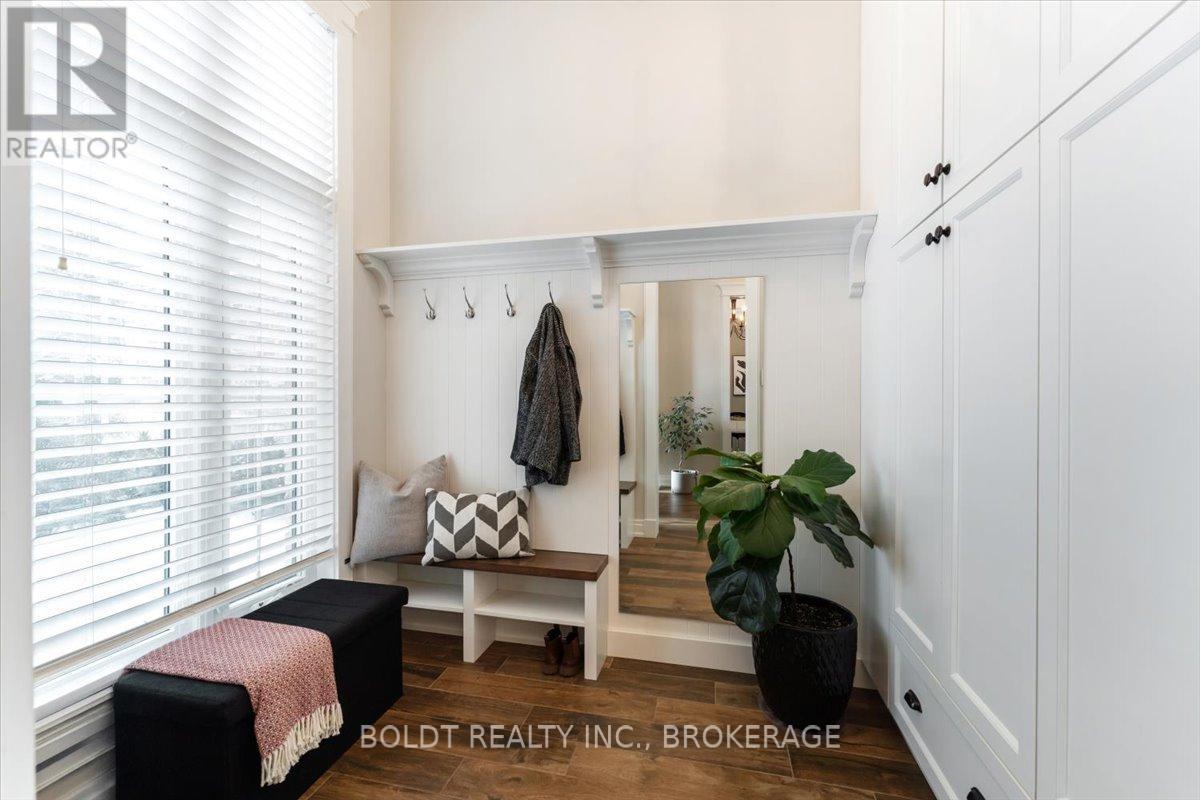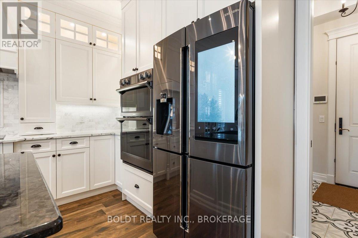 Nestled in the heart of Fenwick, this custom-built, 2 storey home is a testament to modern luxury, timeless design & thoughtful craftsmanship. Built in 2019, with over 4400+ sqft of finished living space, this masterpiece offers high-end finishes & upgrades throughout. The striking brick & stone exterior, deep 152 ft lot & meticulously maintained landscaping make it clear this is no ordinary home. A private double interlock stone driveway leads to an attached 2.5-car garage w/inside entry. Fully fenced backyard is complete with a sprawling composite covered deck, cozy firepit, swing, large garden shed & lush green space. Open-concept main flr featuring soaring 19 foot ceilings, gleaming hardwood floors & a stunning stone gas fireplace. The kitchen is a chefs dream, offering built-in appliances, center island w/breakfast bar, walk-in pantry & a dining area with sliding patio doors to rear covered deck. Additional conveniences include a mudroom, powder rm, main-floor bedrm (currently used as an office) & laundry rm. Solid oak staircase leads to the 2nd floor with a balcony-style walkway overlooking the living rm, 3 generously sized bedrooms including the primary suite, complete with an electric FP, spa-like 4 pce ensuite featuring a soaker tub, glass walk-in shower & walk-in closet with custom shelving. The fully finished basement offers a family room w/FP & equipped with a media system, 2 additional bedrooms, 3 pce bath & ample storage. Highlights include high ceilings, solid wood interior doors, crown moulding, ceramic tile, high-end light fixtures, a built-in media system, a 200-amp breaker panel, an owned tankless hot water heater, an HRV system, central vacuum, cold storage, a security system, gas BBQ hookup & an irrigation system. Situated in a prime location, this executive home is close to Fenwick's town center, schools, shops, restaurants, the beloved farmers market. Dont miss this opportunity to own an exceptional home that's ready for you to unpack & enjoy! (42125535)