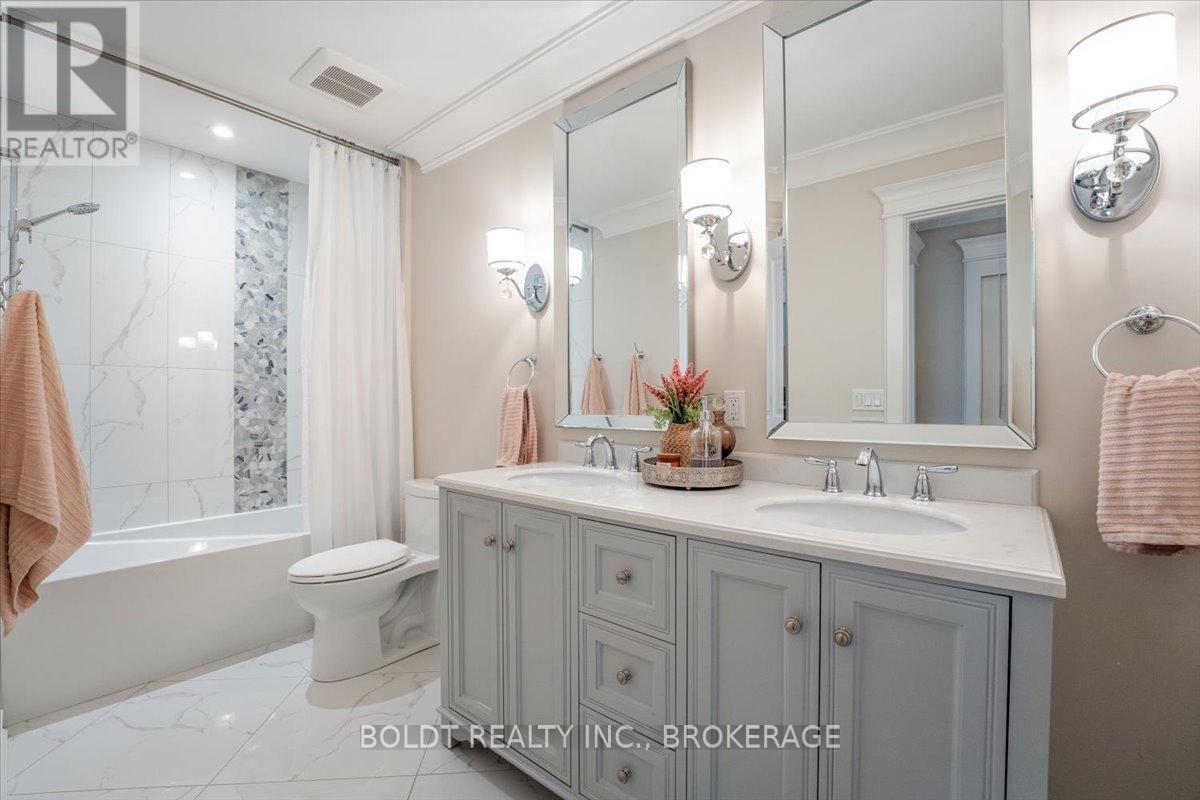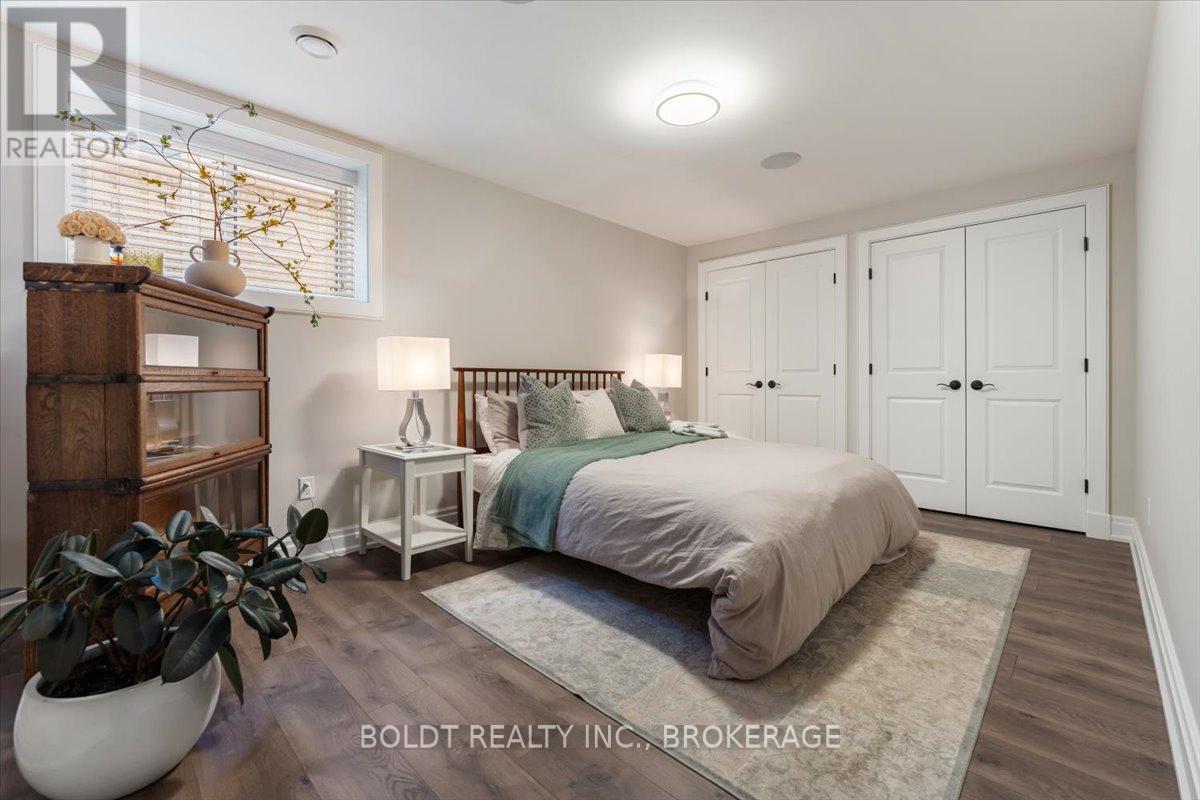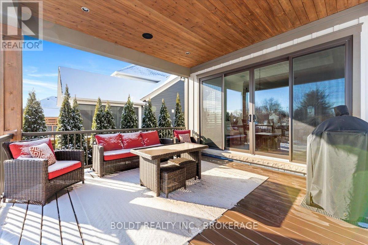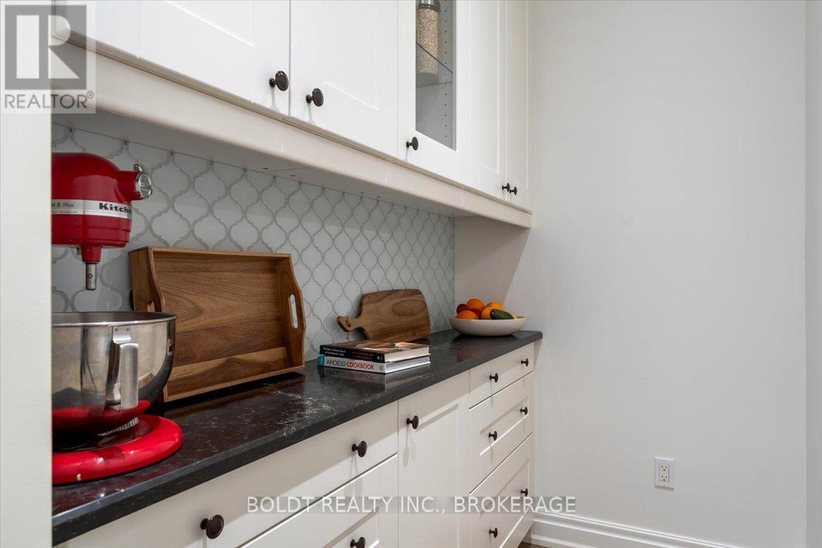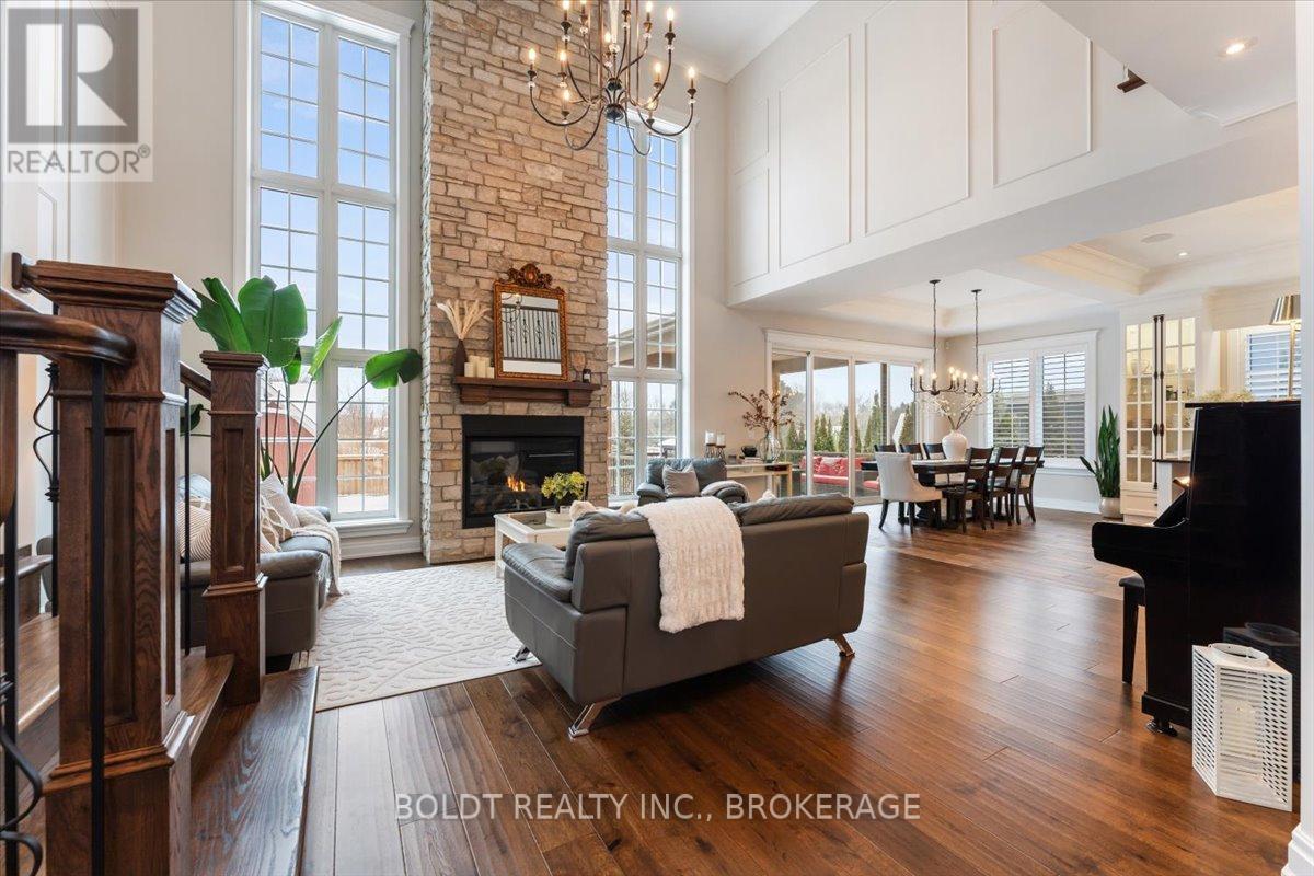 Nestled in the heart of Fenwick, this custom-built, 2 storey home is a testament to modern luxury, timeless design & thoughtful craftsmanship. Built in 2019, with over 4400+ sqft of finished living space, this masterpiece offers high-end finishes & upgrades throughout. The striking brick & stone exterior, deep 152 ft lot & meticulously maintained landscaping make it clear this is no ordinary home. A private double interlock stone driveway leads to an attached 2.5-car garage w/inside entry. Fully fenced backyard is complete with a sprawling composite covered deck, cozy firepit, swing, large garden shed & lush green space. Open-concept main flr featuring soaring 19 foot ceilings, gleaming hardwood floors & a stunning stone gas fireplace. The kitchen is a chefs dream, offering built-in appliances, center island w/breakfast bar, walk-in pantry & a dining area with sliding patio doors to rear covered deck. Additional conveniences include a mudroom, powder rm, main-floor bedrm (currently used as an office) & laundry rm. Solid oak staircase leads to the 2nd floor with a balcony-style walkway overlooking the living rm, 3 generously sized bedrooms including the primary suite, complete with an electric FP, spa-like 4 pce ensuite featuring a soaker tub, glass walk-in shower & walk-in closet with custom shelving. The fully finished basement offers a family room w/FP & equipped with a media system, 2 additional bedrooms, 3 pce bath & ample storage. Highlights include high ceilings, solid wood interior doors, crown moulding, ceramic tile, high-end light fixtures, a built-in media system, a 200-amp breaker panel, an owned tankless hot water heater, an HRV system, central vacuum, cold storage, a security system, gas BBQ hookup & an irrigation system. Situated in a prime location, this executive home is close to Fenwick's town center, schools, shops, restaurants, the beloved farmers market. Dont miss this opportunity to own an exceptional home that's ready for you to unpack & enjoy! (42125535)