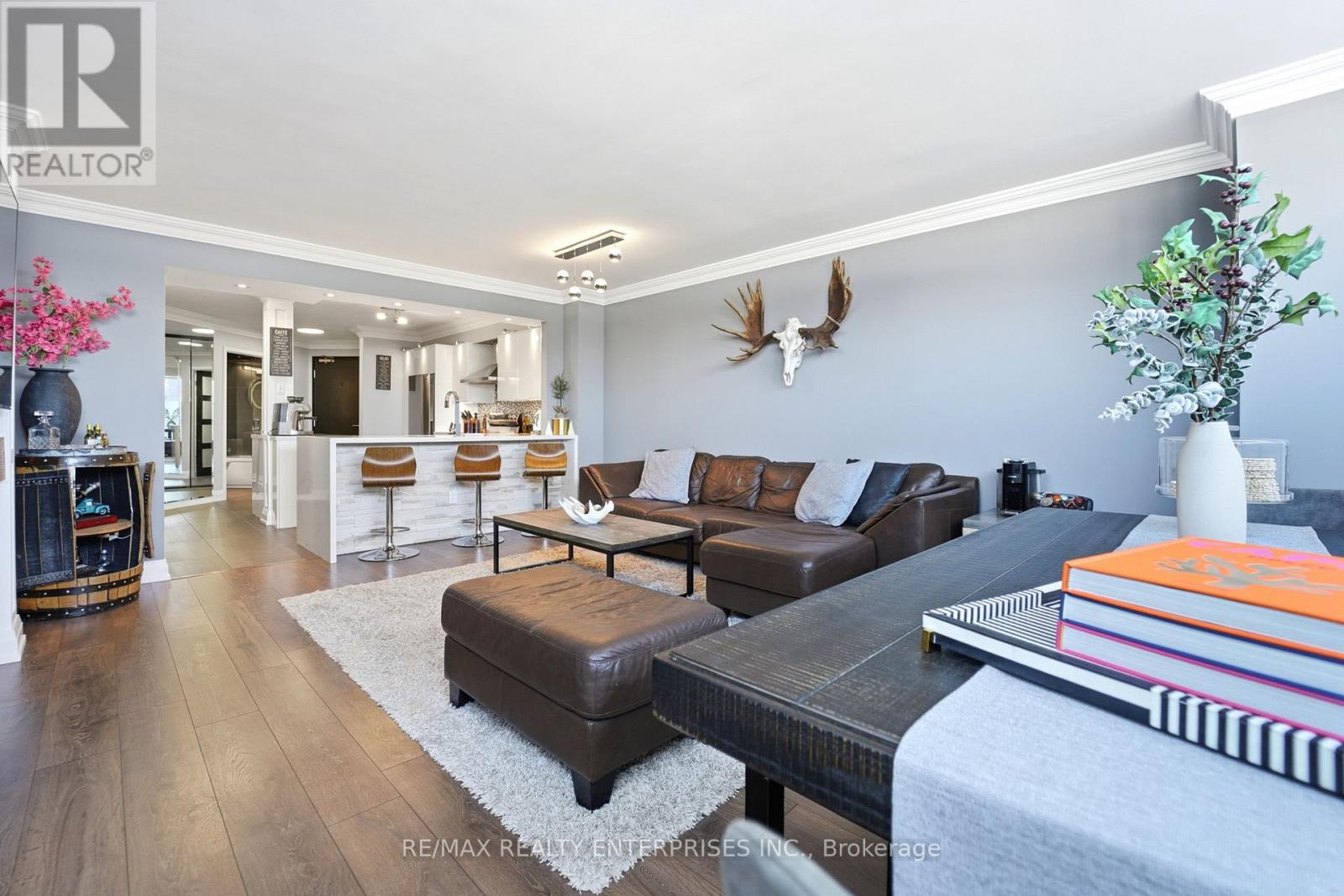 Spacious, Fully Renovated Condo. Located In A Quiet, Well-Established Neighbourhood With Convenient Access To Major Highways & Top-Rated Schools. Thoughtfully Redesigned By StylesbyMyles, This Exceptional Residence Features High-End Finishes Throughout.The Open-Concept Kitchen & Living Area Offers A Modern Layout With Peninsula Island, Elegant Waterfall Countertop, & Contemporary LED & Recessed Lighting Ideal For Everyday Living & Entertaining. Both Bathrooms Feature Floor-To-Ceiling Tile & Increased Ceiling Height Creating A Spa-Inspired Atmosphere. The Primary Bedroom Showcases A Custom Floating Bed, Matching Floating Nightstands, & Bespoke Built-In, His-&-Hers Closets. All Popcorn Ceilings Have Been Removed & Refinished Flat With 7" Crown Moulding Throughout. Custom Bottom-Up/Top-Down Window Coverings Installed Throughout With Blackout Blinds In Both Bedrooms. Two (2) Parking Spaces Included**, One Underground + One Outdoor On Surface. All Utilities Included: Water, Electricity, Heat, A/C, Bell Fibe Cable & Internet. A Turnkey Opportunity Combining Luxury Comfort And Location. (42125579)