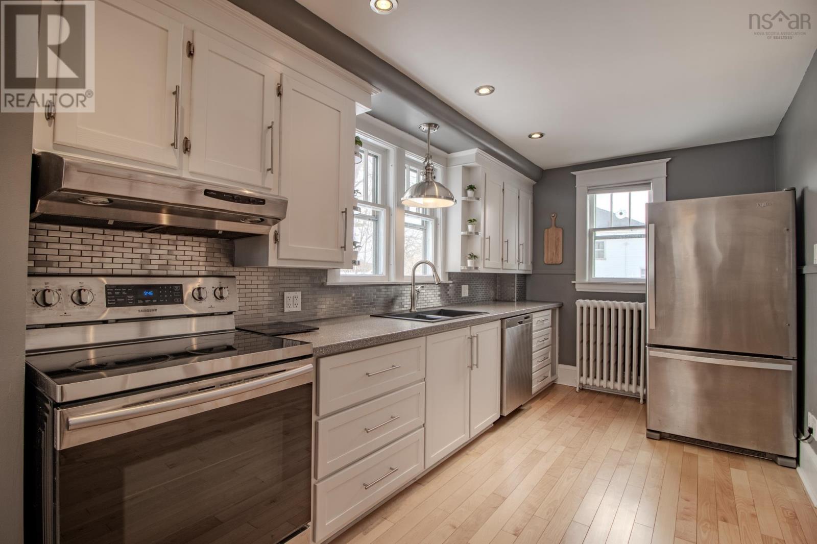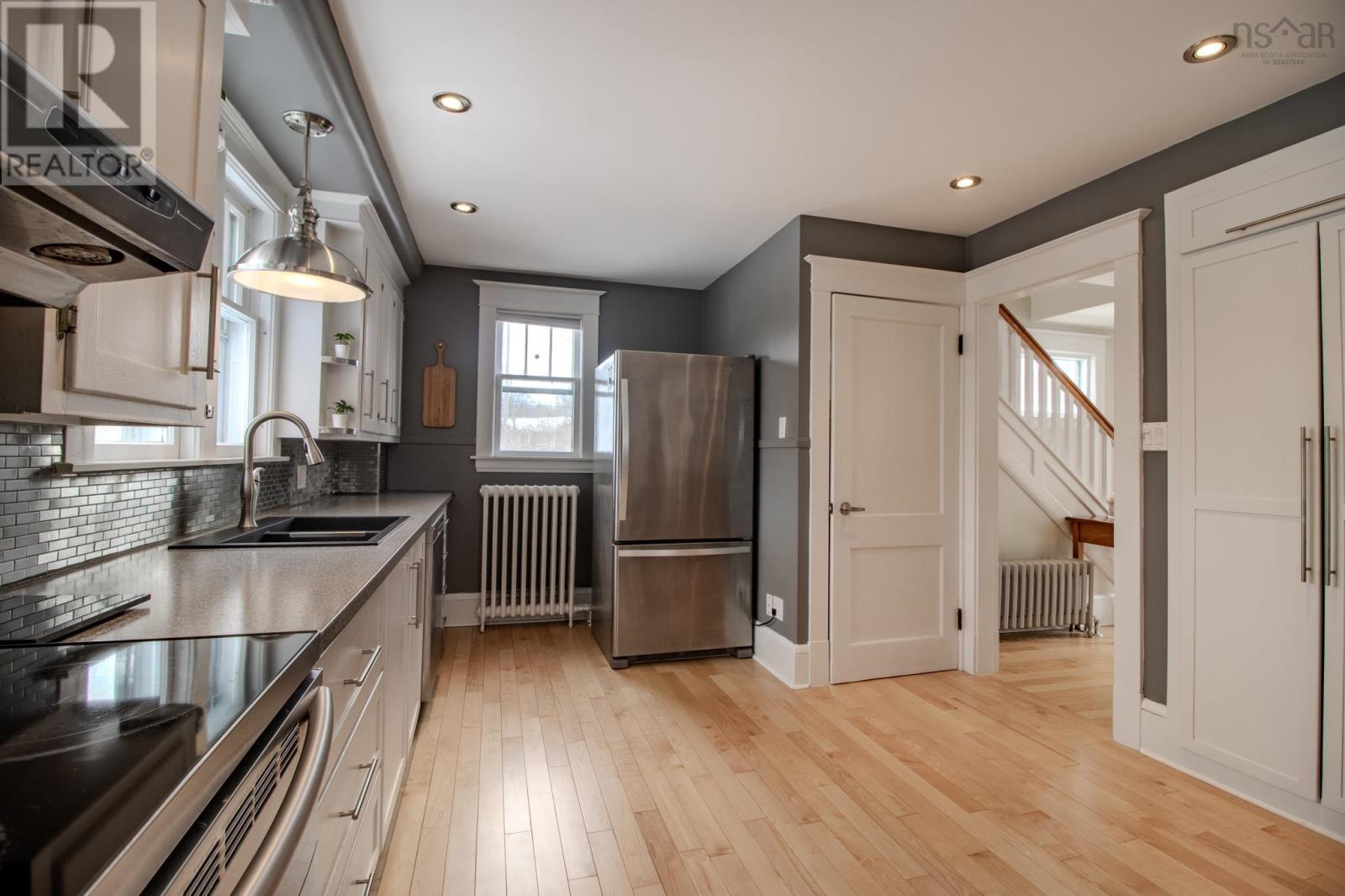 Welcome to 351 Cottage Road, a timeless family home in the heart of Sydney, where classic character meets thoughtful modern updates. Set on a family-friendly double lot, room for a garage! This two-storey home has been well cared for over the years and is truly move-in ready. Step through the front door into a spacious and practical mudroom featuring a built-in bench, and smart storageperfect for Cape Breton living. From here, youre welcomed into a beautiful foyer highlighted by an original wood staircase that immediately sets the tone. New hardwood floors flow throughout the main level. To the left of the foyer is a bright, open living room that connects seamlessly to the open concept sitting room, and eat in kitchen. The kitchen has been beautifully renovated with custom white cabinetry, stainless steel appliances, modern lighting, and a pantry offering excellent storage. Upstairs, the second level features two bedrooms and a fully renovated bathroom with infloor heating. The guest bedroom sits conveniently at the top of the stairs, while the oversized primary bedroom is tucked down the hall and can easily be divided back into two bedrooms. The primary includes a walk-in closet that leads directly into the main bath, which showcases custom tile work, a soaker tub, rain showerhead, towel warmer, and a stylish vanity. The walkout basement is unfinished and provides excellent storage or future development. A Steffes ETS hot water furnace adds to the homes energy efficiency, blending modern comfort with original charm. Located in the heart of Sydney, this home is within walking distance to amenities, schools and just seconds from Cape Breton Regional Hospital. A warm, character-filled home with modern efficiency351 Cottage Road is one youll want to see in person. (231950712)
