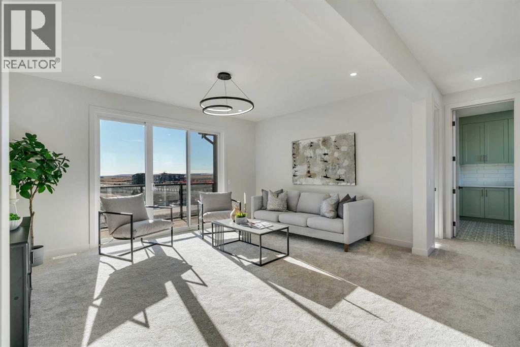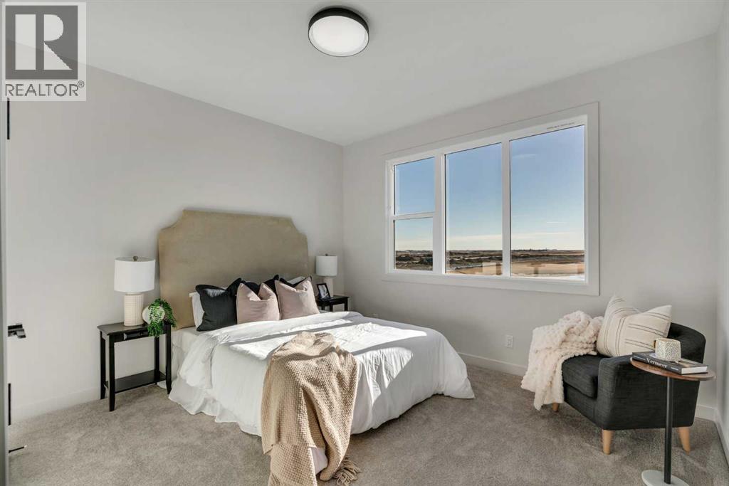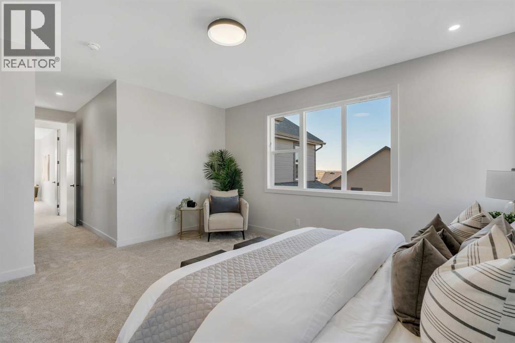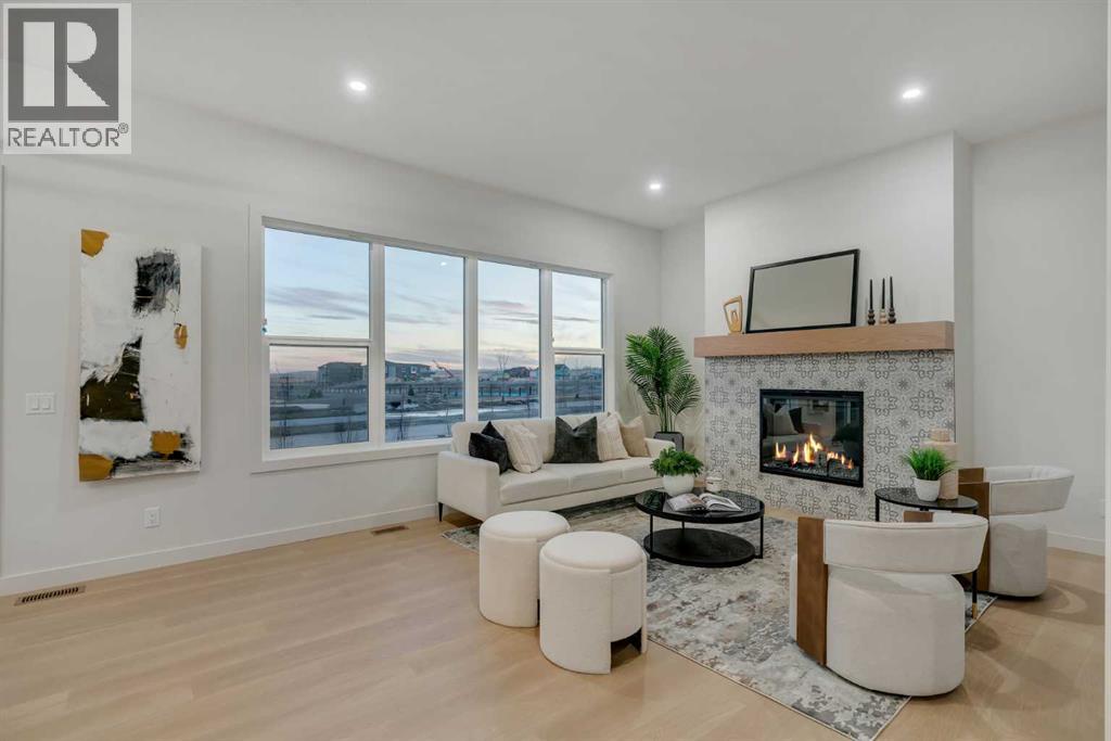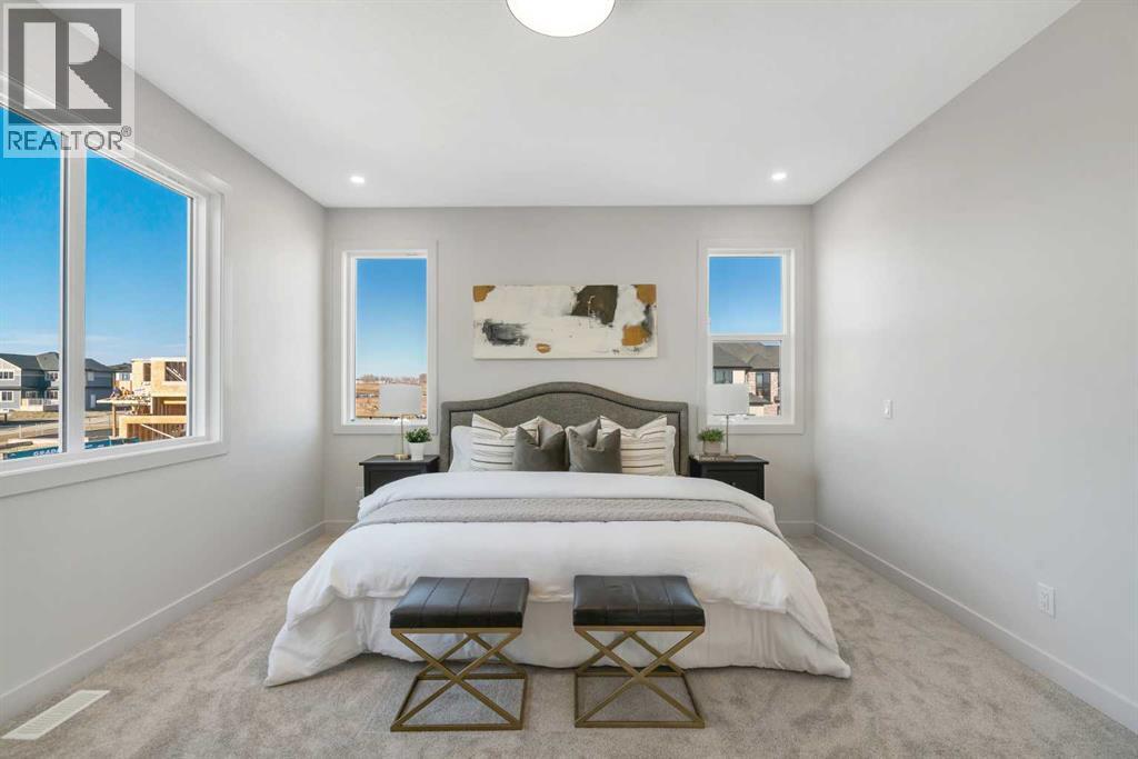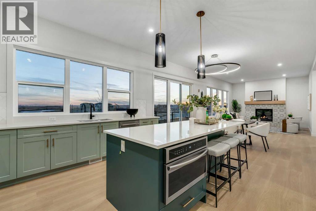 OPEN HOUSE: Sat & Sun (Feb 28th & Mar 1st): 2:30-4:30PM**Watch the Video*A luxury estate home that truly checks every box. This stunning showpiece by Aspen Creek Designer Homes, Alberta's one of Alberta's premier luxury builder showcases exceptional craftsmanship & stellar elevated finishings. Located in the growing estate community of Goldwyn, this home offers the charm of prairie estate living with breathtaking pond, downtown, & mountain views - Perfectly situated on a quiet cul-de-sac & no neighbours behind. This gorgeous home redefines what elevated high-end living should look like. Offering over 4,200 SQFT of functional living space, this residence is designed to impress at every turn. Triple Garage | 5 Bedrooms + Main floor den | 5 Full Bathrooms | South Backyard | Pond Views| Excellent Finishings | Stunning Chef's Kitchen | Spice Kitchen | Spacious Backyard | 3 Spacious Bedrooms up with Ensuites | Bonus Room with Private Balcony | Finished Walkup 2 Bedrooms Basement | Hardie Board SidingThe expansive triple garage along with aggregate driveway create a striking first impression. Step through the grand double-door entrance into a soaring open-to-below foyer filled with natural light. The main floor features 10-foot ceilings, 9 Ft doors, oversized windows, & a spacious living room with an elegant tiled fireplace detailing. A magazine-worthy, state-of-the-art chef’s kitchen offering that aura your guests are going to love - timeless cabinetry with gold hardware, glossy backsplash, top-of-the-line appliances including an oversized refrigerator, gas cooktop, chimney hood fan, & built-in microwave. A massive centre island with blue cabinetry provides the perfect gathering space, while the fully equipped spice kitchen adds both style & function.A versatile main floor den with a French glass door sits beside an upgraded full bathroom— ideal for guests, multigenerational living, or a private home office. A generous mudroom offering ample space for a secondary home office. Walking upstairs along the grand wide staircase with designer railing, you'll notice the 9 FT ceilings & 8ft doors followed by a sun-filled central bonus room opens onto a private balcony overlooking the pond. Three spacious upstairs bedrooms each feature their own private ensuites - no compromises whatsoever. The primary suite is a true retreat, enhanced by extra windows, a huge walk-in closet, & a luxurious spa-like ensuite complete with a soaker tub, glass shower with upgraded tile surround, dual sinks, & a private toilet.The two additional south-facing bedrooms enjoy stunning pond views & upgraded attached bathrooms, offering comfort & privacy for family or guests. A massive laundry room with cabinets and tiles Step outside to a huge south-facing backyard that feels like a private summer retreat - ideal for entertaining & relaxing with your family. Dual Furnace Zoning & 72 Gal HWT adding to the efficiency. This home presents an great opportunity to own a modern home with astonishing views. (31633662)