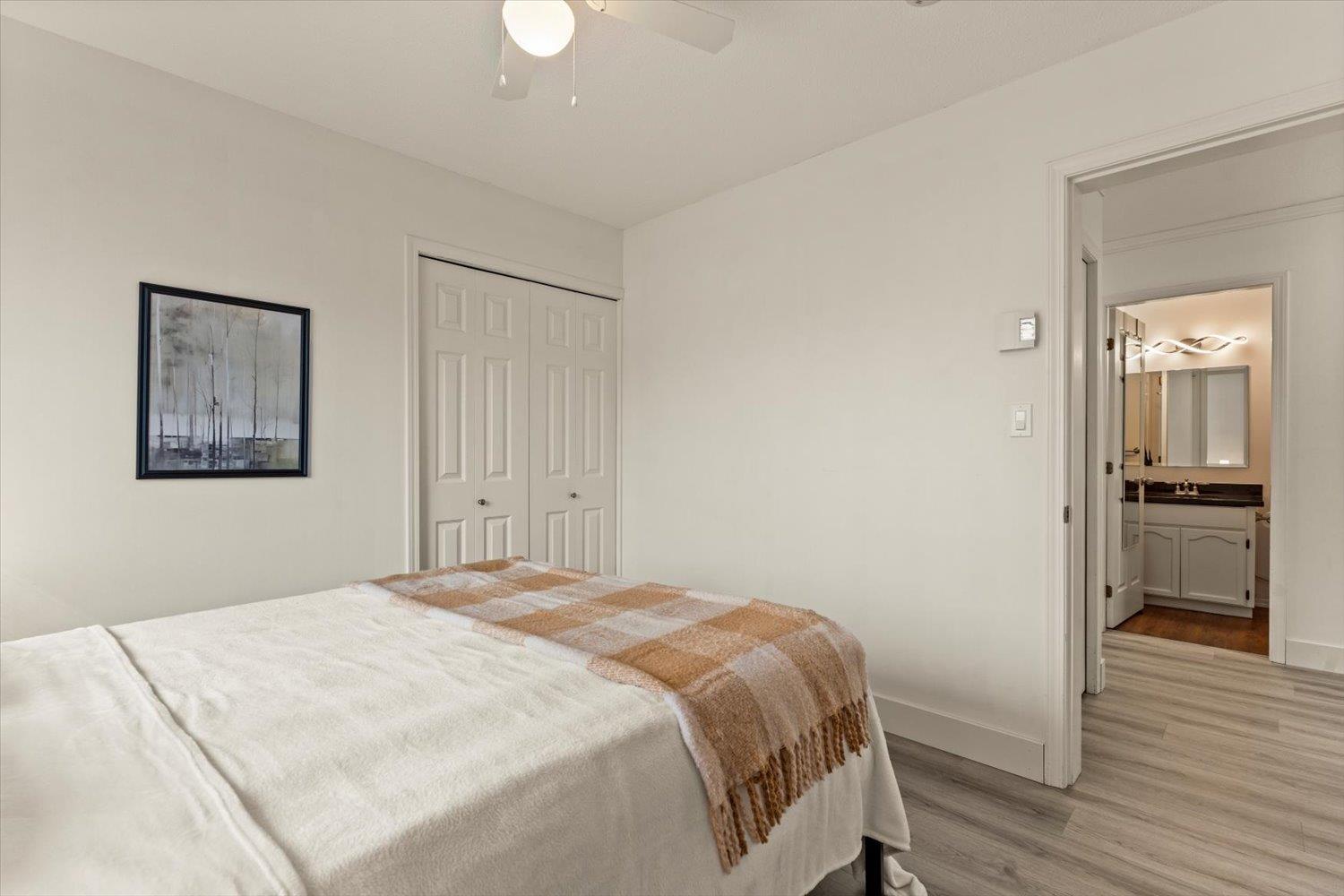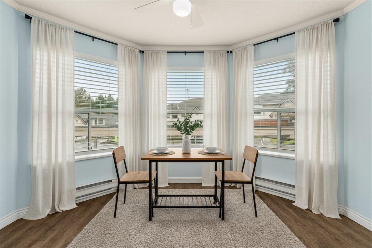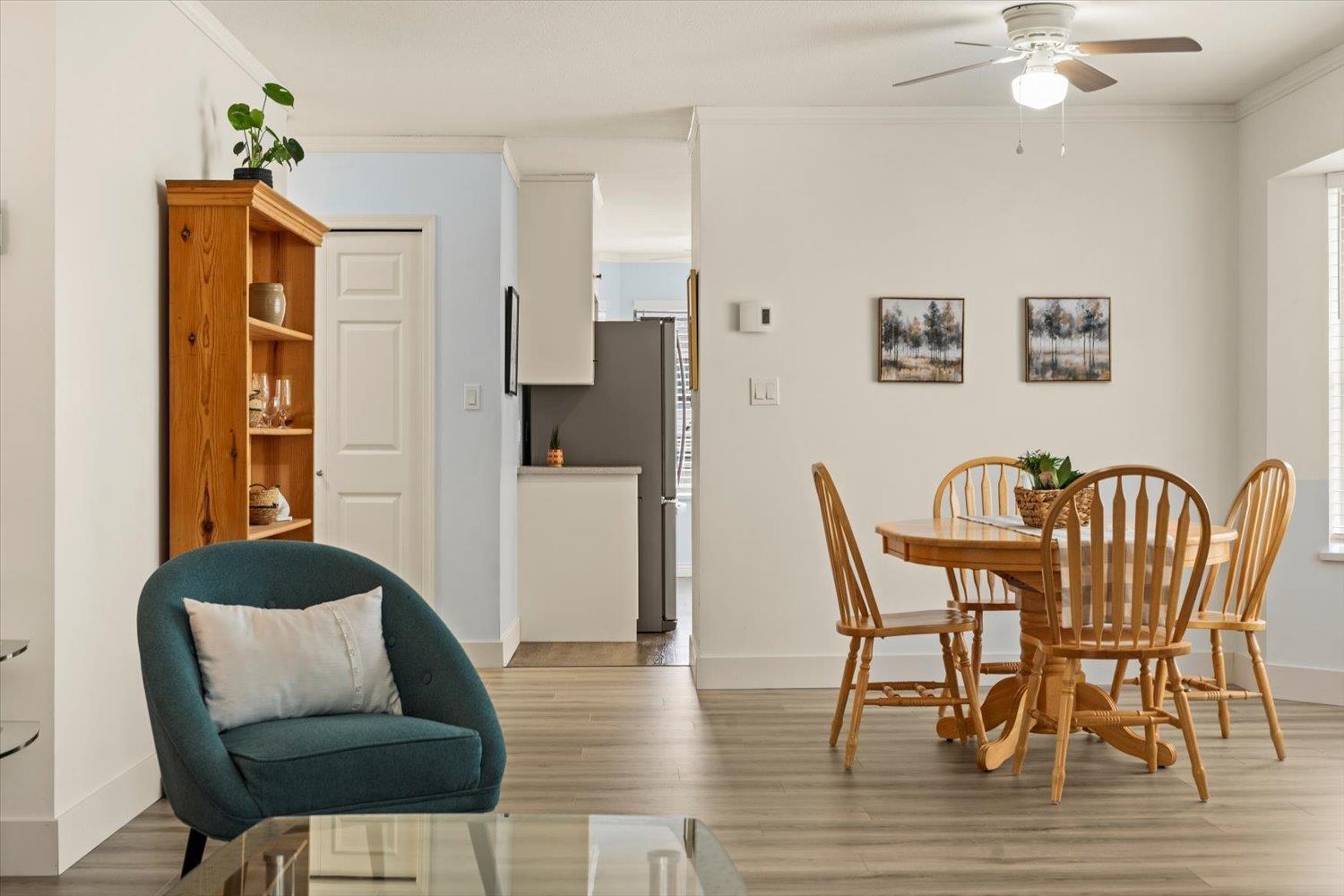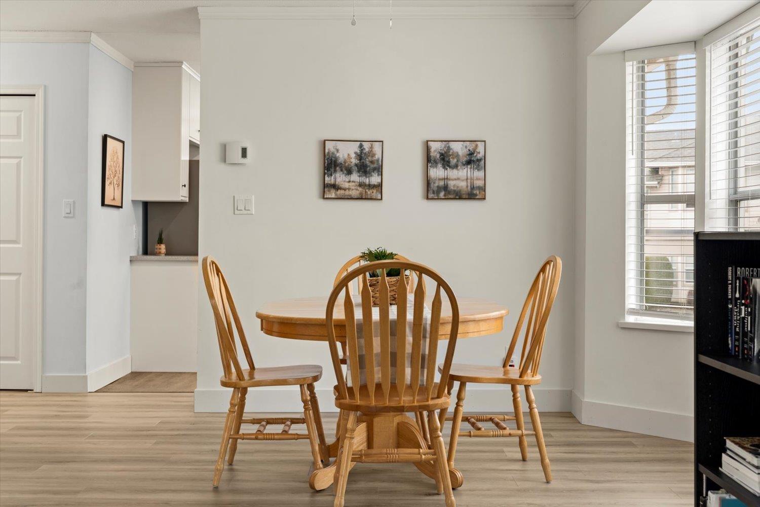 Welcome to Forest Edge! A quiet 55+ community backing onto parkland. This upper floor unit shows like new! Spacious & bright with 2 bedrooms/2 full bathrooms, gas fireplace, air conditioning, open layout living/dining area plus kitchen nook. Large primary bedroom with beautiful full ensuite. Thoughtfully updated for low-maintenance living. Updates include: flooring, baseboards/controls, appliances, heat pump with two mini-splits, updated lighting, ceiling fans, and refreshed bathrooms. Enjoy morning sun from the large east-facing balcony with forest views. Rentals allowed, one cat or dog permitted (14" at shoulders), two parking stalls (one covered). Close to shopping, parks, and recreation. Must be seen to be appreciated. Nothing to do here, but move in and enjoy! Book a showing today! (32435817)