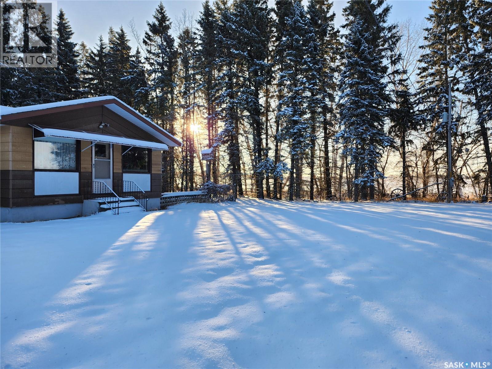 A RARE ACREAGE OPPORTUNITY JUST MINUTES FROM ESTERHAZY Propeties like this RARELY come to market. This exceptional scenic acreage is located just 2km west of Esterhazy and 1 km north of Highway 22. Close enough to town to enjoy NATURAL GAS SERVICE, yet far enough to offer true privacy and tranquility. This 10 acre retreat is surrounded by mature pine trees. It is only a short walk to a secluded valley and creek, and offers a convenient two-minute drive to town. In real estate, LOCATION IS EVERYTHING, and this acreage truly delivers. The solid, well-insulated 1470 sqft home sits in a private, park-like setting framed by sheltering pines. Some rooms were previously used as work and office space, and they provide flexible options for additional bedrooms, hobby rooms, or personalized living space. The property also features a 24x24 detached garage, a workshop, a large outbuilding, a new well pump, a septic pump approx 2 years old, and an electric pump for cistern water. The beautifully maintained yard and garden, along with the surrounding countryside, offer peaceful views and a strong connection to nature. This is an outstanding opportunity for buyers seeking space, privacy, and the convenience of town services in a truly rare acreage setting. (29376830)