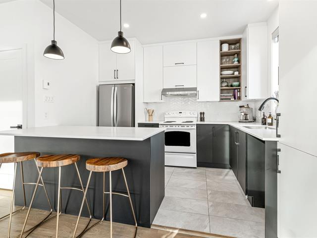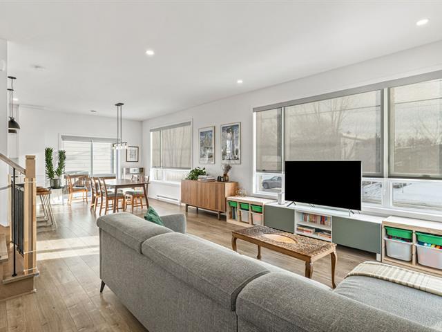 Stunning corner unit built in 2020, tastefully designed and filled with natural light thanks to large windows. Located in Longueuil close to all services. Three bedrooms on the upper floor, two full bathrooms and a powder room. Finished basement with independent entrance, ideal for a home office or family space. Heat pump, fenced yard with patio, parking. Turnkey property in a sought-after area. (50806215)