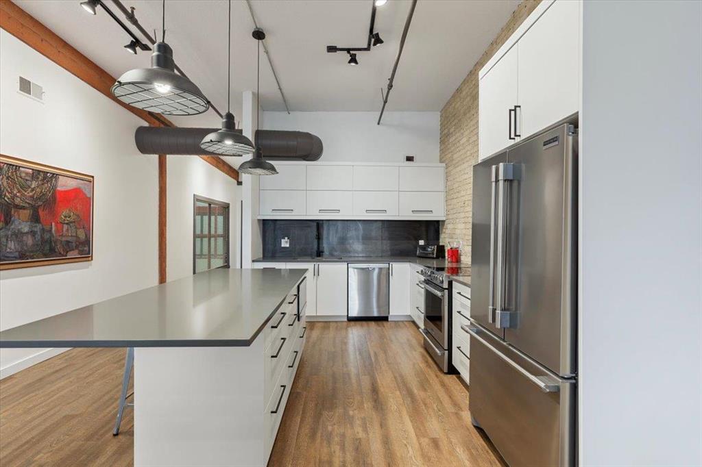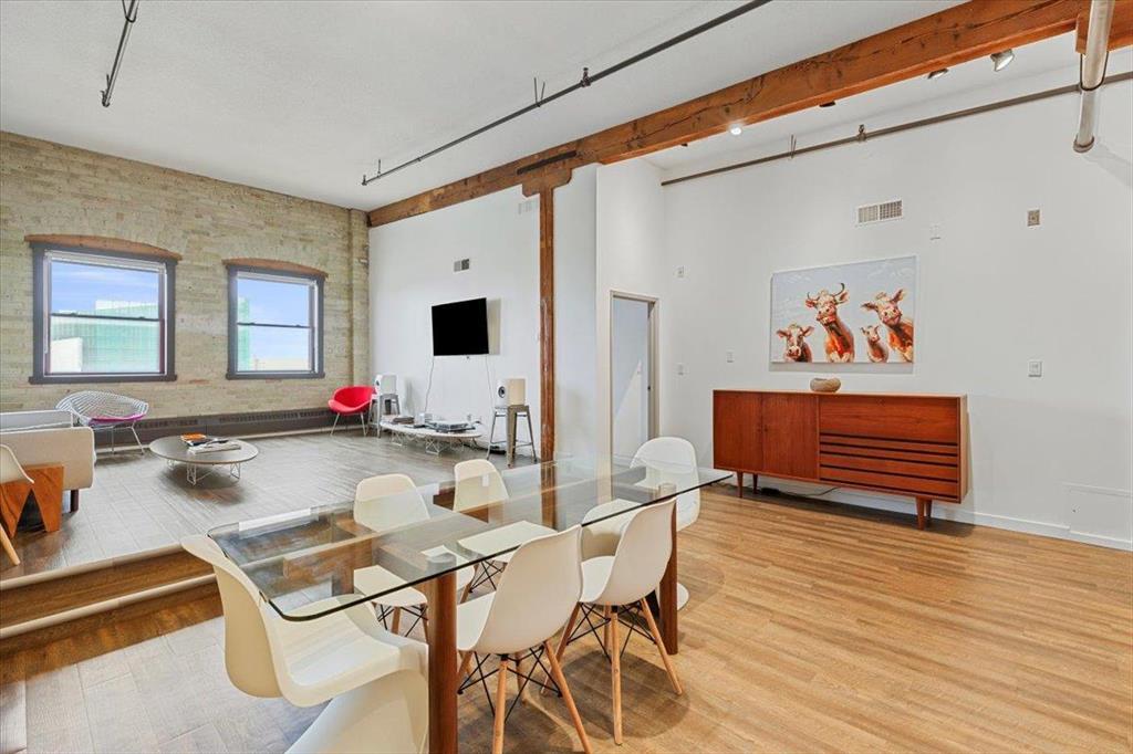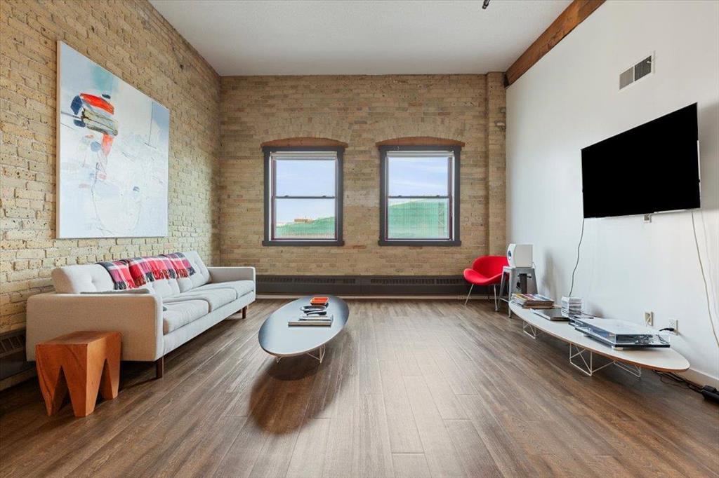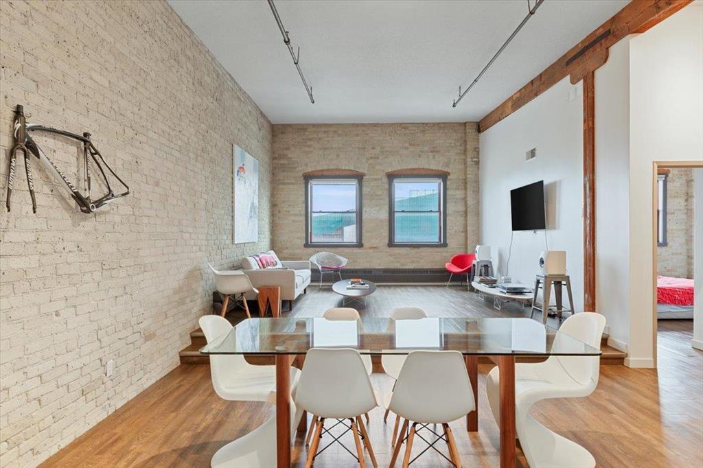 9A//Winnipeg/Starts showing Feb 12 offers as received Live in one of Winnipeg s most celebrated heritage buildings Ashdown Warehouse Lofts! This exceptional top-floor condo combines vintage industrial features with contemporary upgrades across nearly 1,600 sq. ft. of open-concept living. You'll fall in love with the exposed brick, massive wood beams, and soaring 12-foot ceilings that give the space unmatched warmth and character. The 2-bedroom, 2-bathroom layout is thoughtfully designed, with a renovated kitchen showcasing quartz countertops, stylish cabinetry, and stainless steel appliances. The unit also includes in-suite laundry, heated underground parking and exclusive access to the rooftop patio perfect for soaking in city views. Set in the vibrant Exchange District, you re steps from arts, culture, top dining spots, boutique shopping, and the theatre district. Whether you're downsizing, investing, or simply craving downtown life, this loft is the one you ve been waiting for! (231951456)