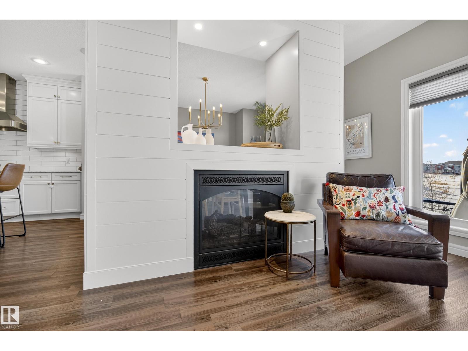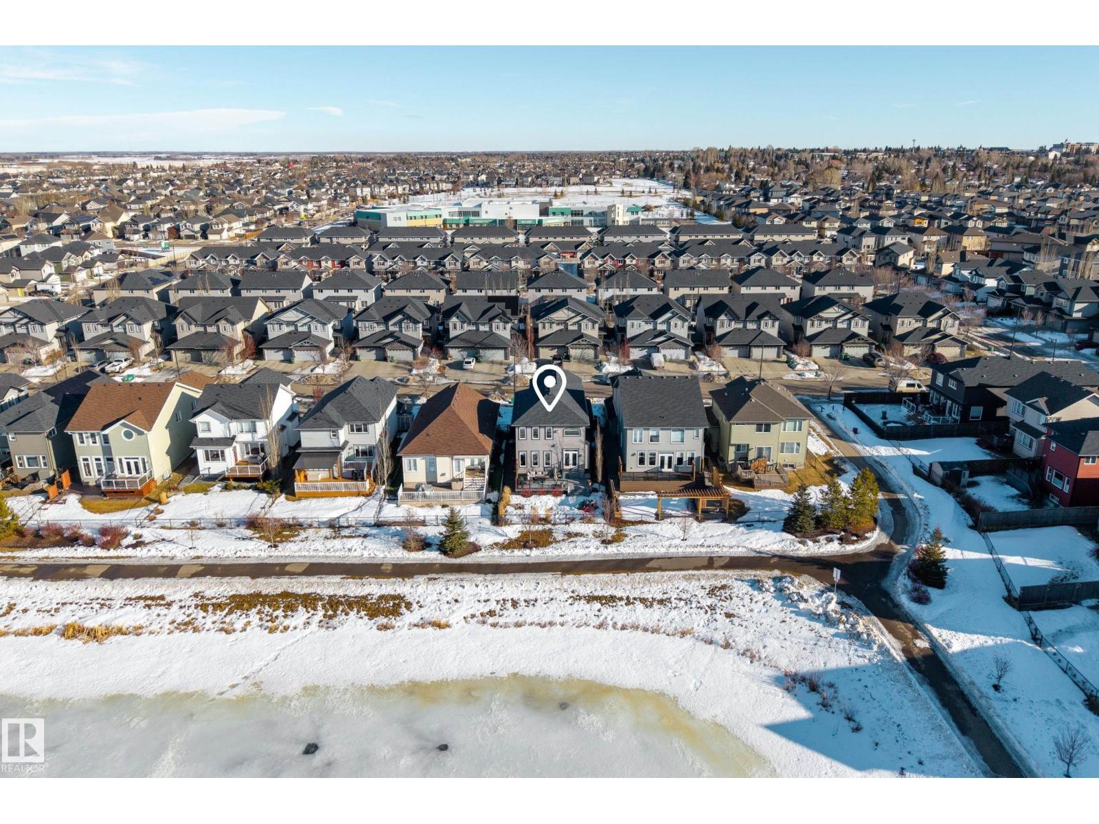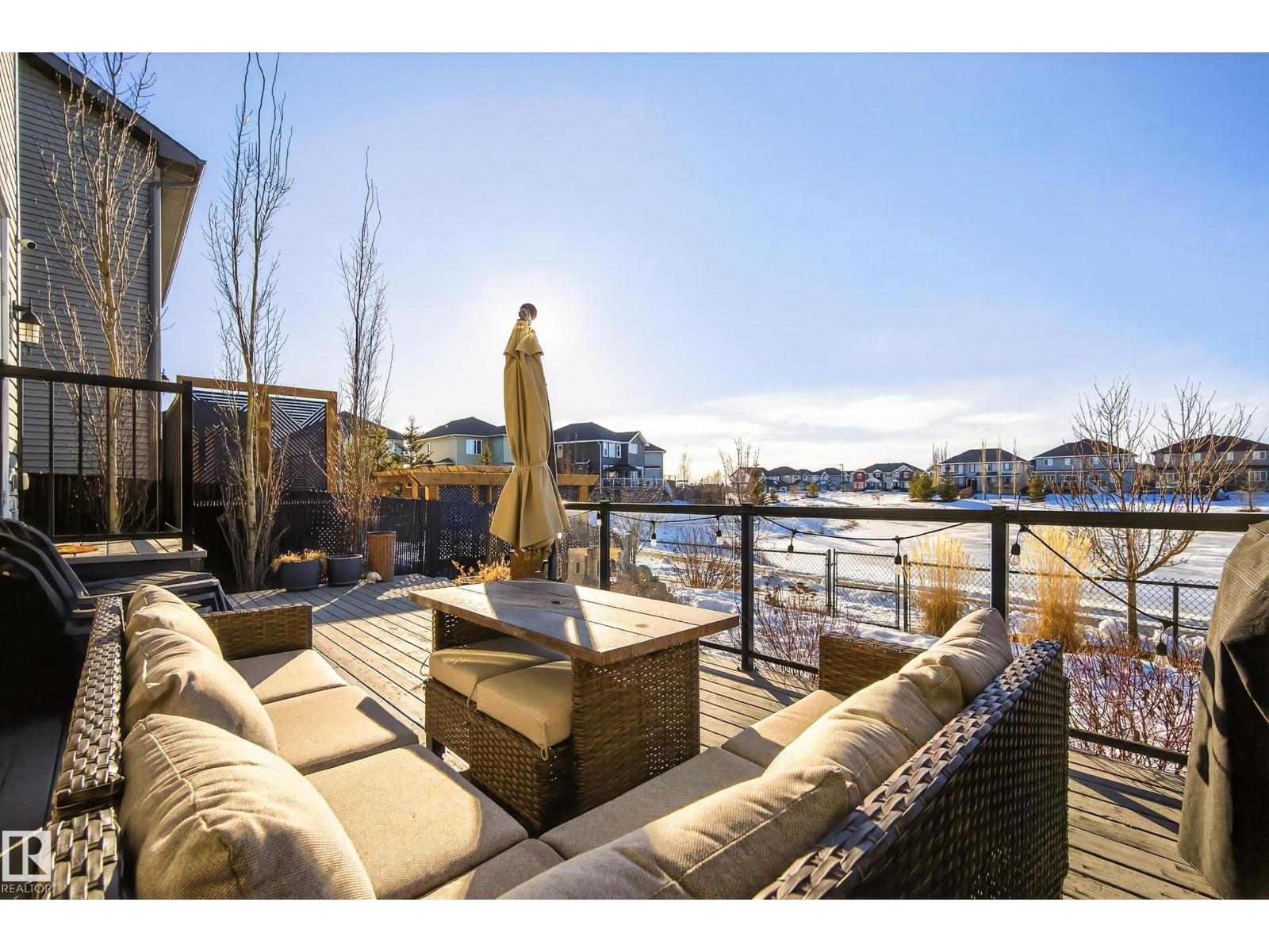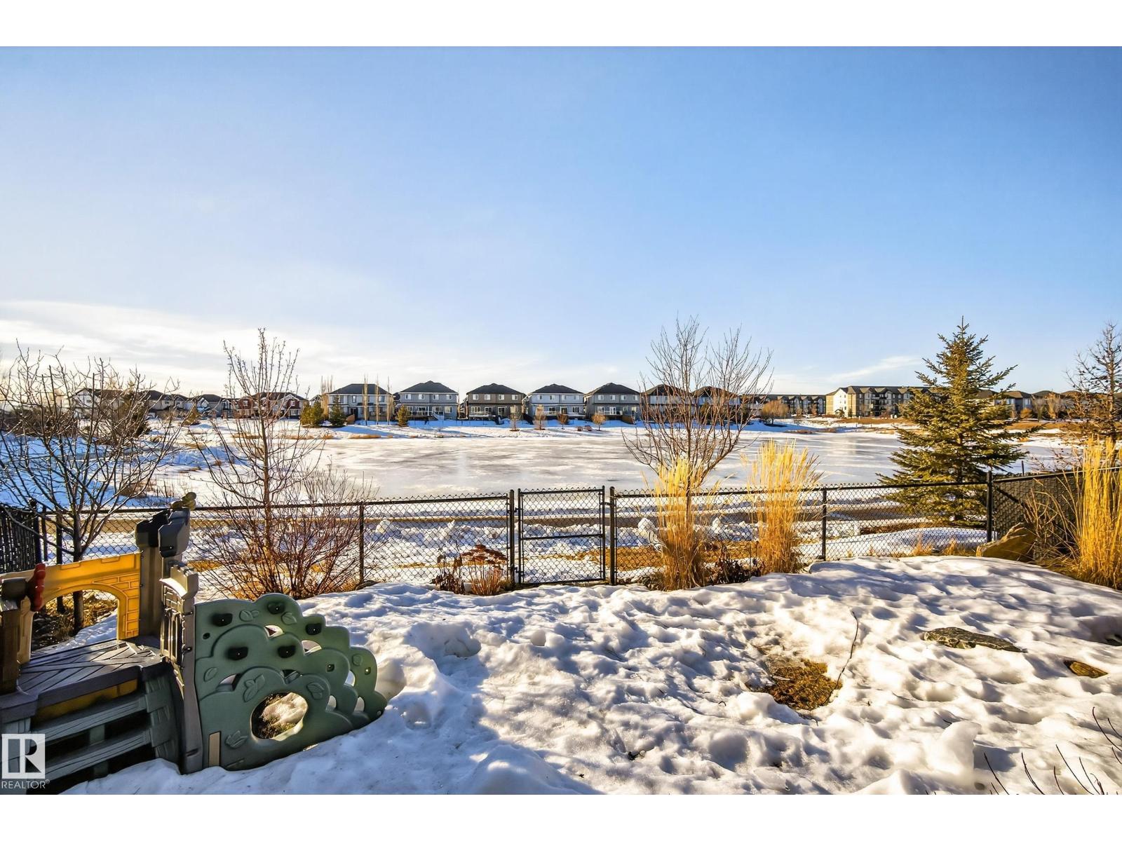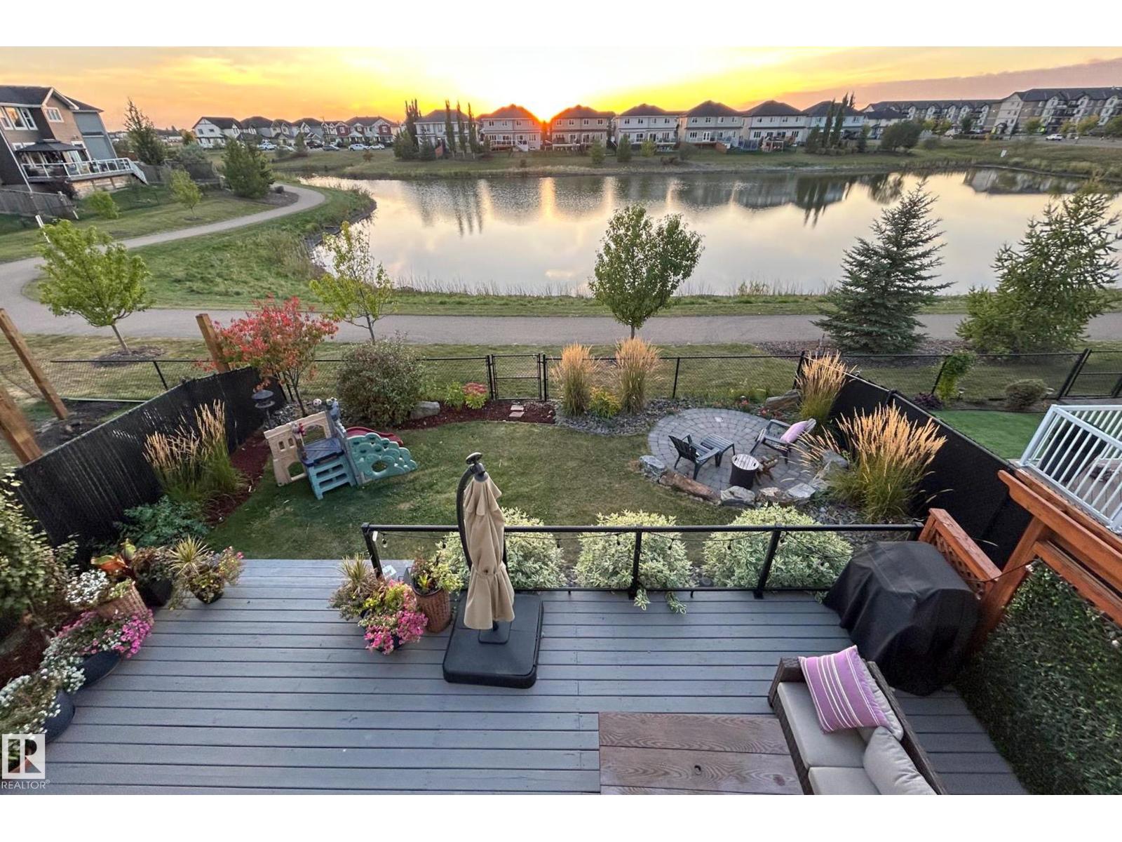 Enjoy stunning pond views and breathtaking west-facing sunsets from the spacious back deck of this beautifully designed home. Built by Pacesetter, it features a unique layout with two elegant double-sided fireplaces that add warmth and character to the main living areas. The bright open-concept design showcases oversized windows and luxury vinyl plank flooring. The chef-inspired kitchen is perfect for entertaining, complete with a large granite island, built-in wall oven, professional hood fan, full-height cabinetry, and classic white subway tile backsplash. Upstairs offers generous bedrooms with walk-in closets, a vaulted bonus room, convenient laundry, and a luxurious primary suite with spa-style ensuite, deep soaker tub, separate shower, heated towel rack, and its own two-way fireplace. The fully finished basement adds valuable living space with a bedroom, full bath, and spacious rec room. Oversized heated double attached garage. Close to pond trails, parks, amenities, and just steps to the K-9 school. (33822395)