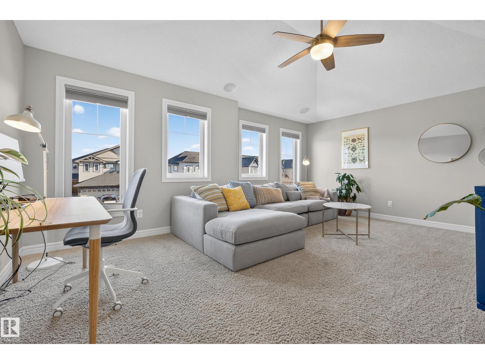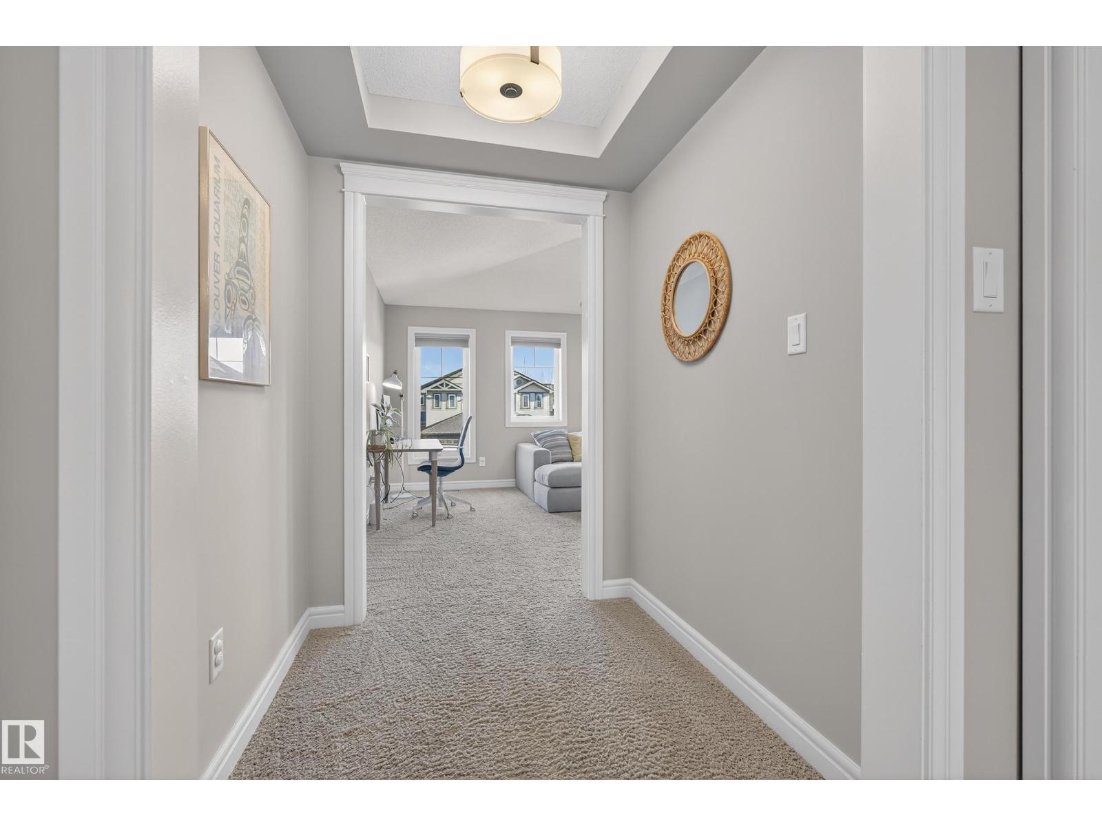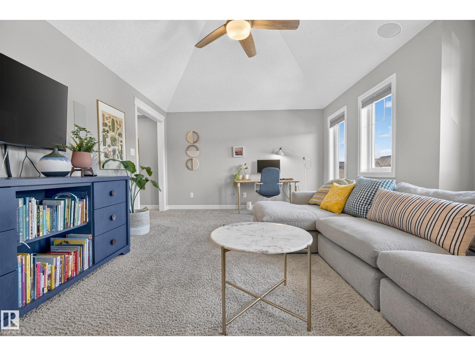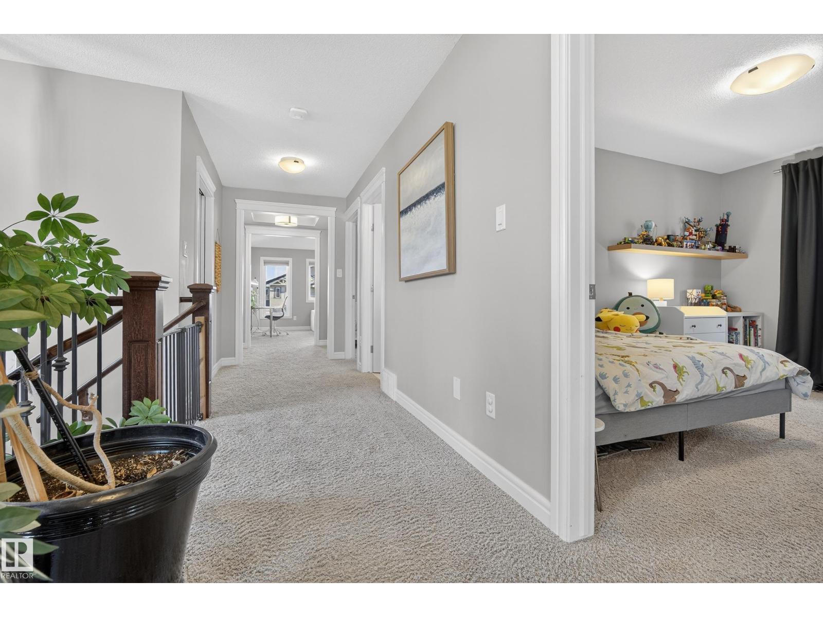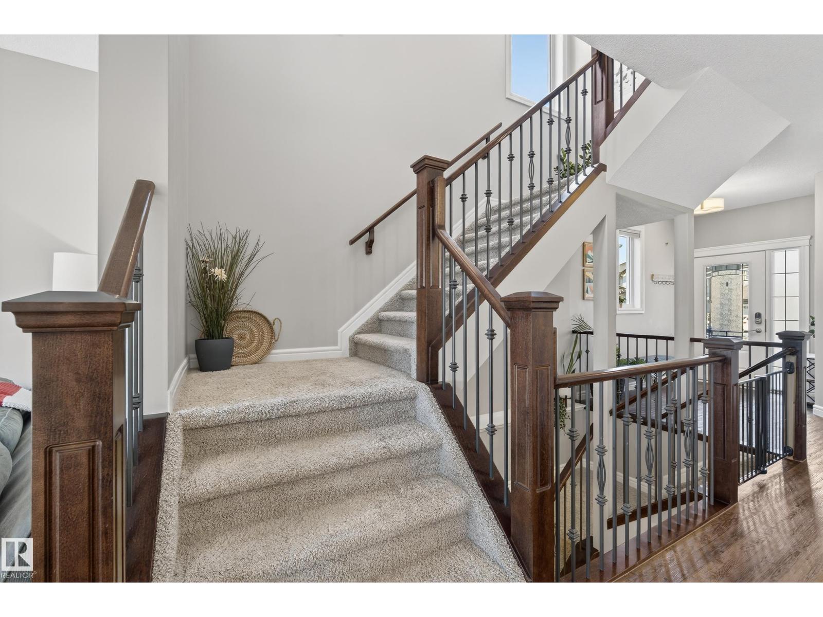 Enjoy stunning pond views and breathtaking west-facing sunsets from the spacious back deck of this beautifully designed home. Built by Pacesetter, it features a unique layout with two elegant double-sided fireplaces that add warmth and character to the main living areas. The bright open-concept design showcases oversized windows and luxury vinyl plank flooring. The chef-inspired kitchen is perfect for entertaining, complete with a large granite island, built-in wall oven, professional hood fan, full-height cabinetry, and classic white subway tile backsplash. Upstairs offers generous bedrooms with walk-in closets, a vaulted bonus room, convenient laundry, and a luxurious primary suite with spa-style ensuite, deep soaker tub, separate shower, heated towel rack, and its own two-way fireplace. The fully finished basement adds valuable living space with a bedroom, full bath, and spacious rec room. Oversized heated double attached garage. Close to pond trails, parks, amenities, and just steps to the K-9 school. (33822395)